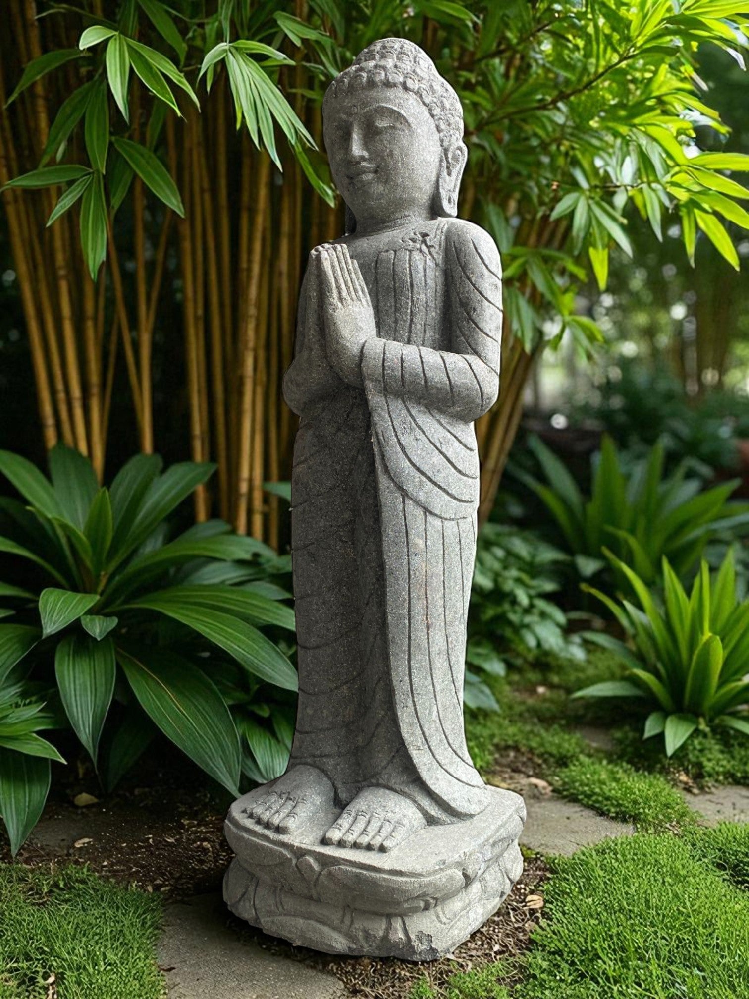 • Buddha Statue Praying Carved Stone 1000mm (3052)