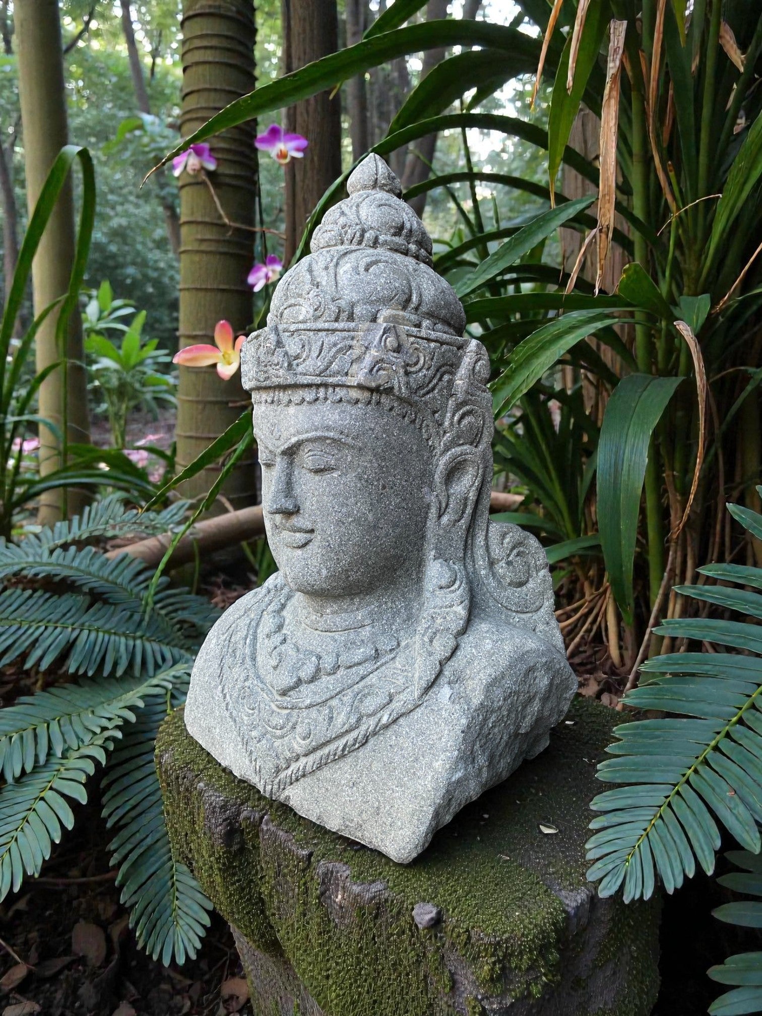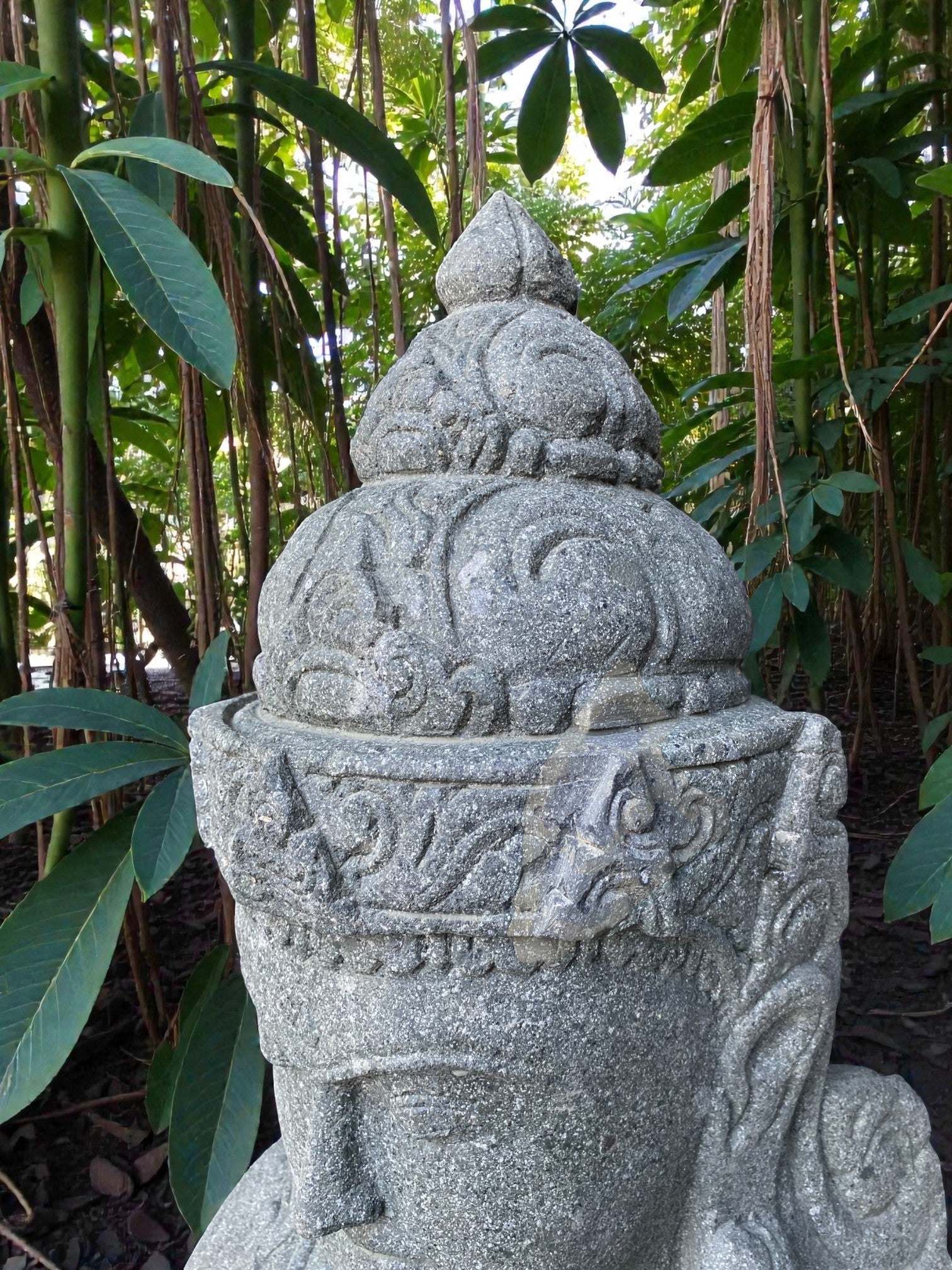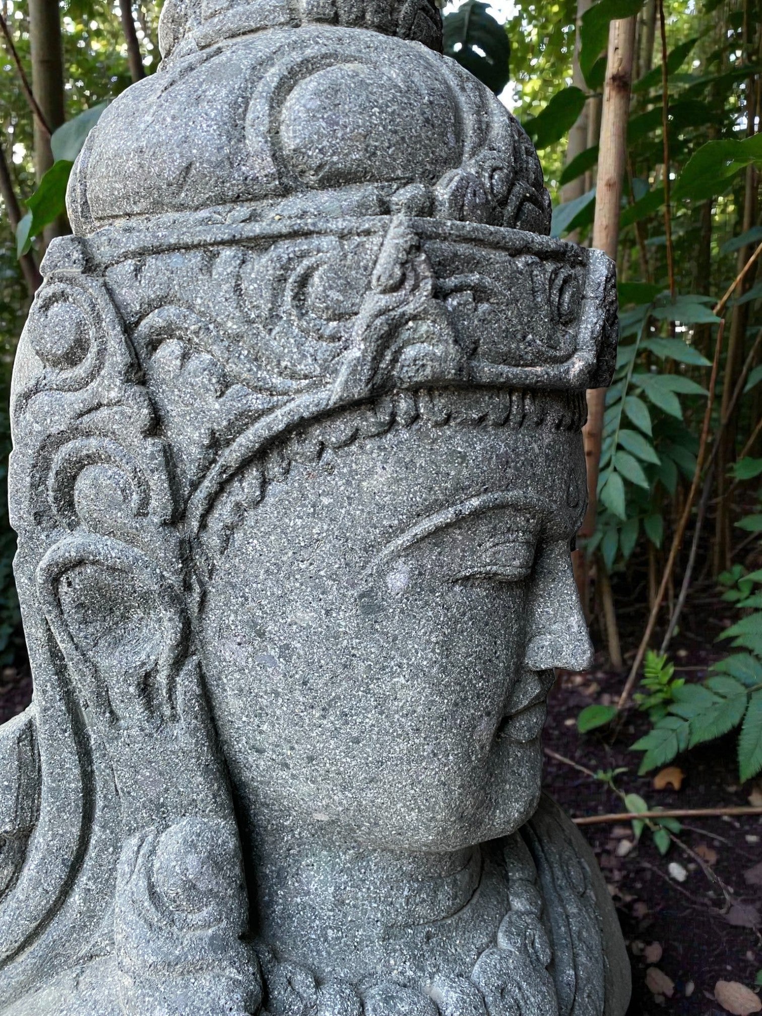 Hand carved Balinese Buddha statue. "Dewi Lakshmi" goddess of wealth, fortune & prosperity. Complement your garden landscaping and Outdoor Living with a fully carved from Indonesian Greenstone . Used by landscape architects for outdoor garden and landscaping projects. This is a hand carved Indonesian greenstone piece of art. These look great with a warm white night light mounted at the base of the statue facing upwards, creating shadows and ambience and compliments your outdoor furniture and garden landscaping. Upgrade your garden and landscaping and add value to your home and garden renovation.