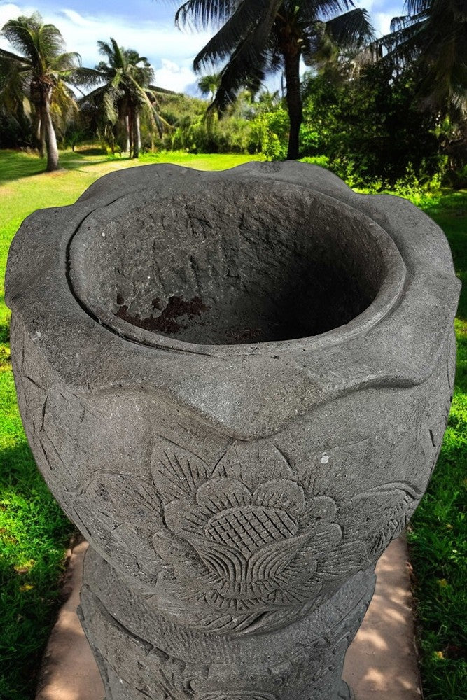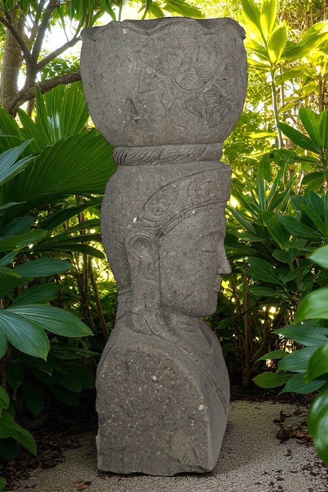 • Giant Bali Statue Pot Planter Hand Carved Stone 1520mm Height Stone Base (818)