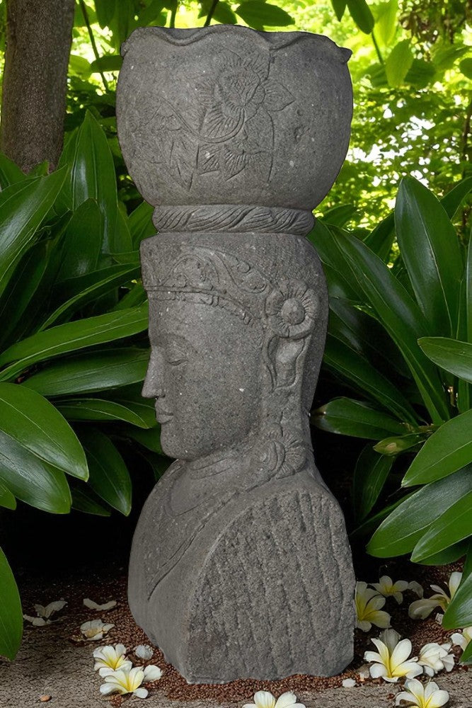 Home › BUDDHA STATUE › Giant Bali Statue Pot Planter Hand Carved Stone 1520mm Height Stone Base (818)