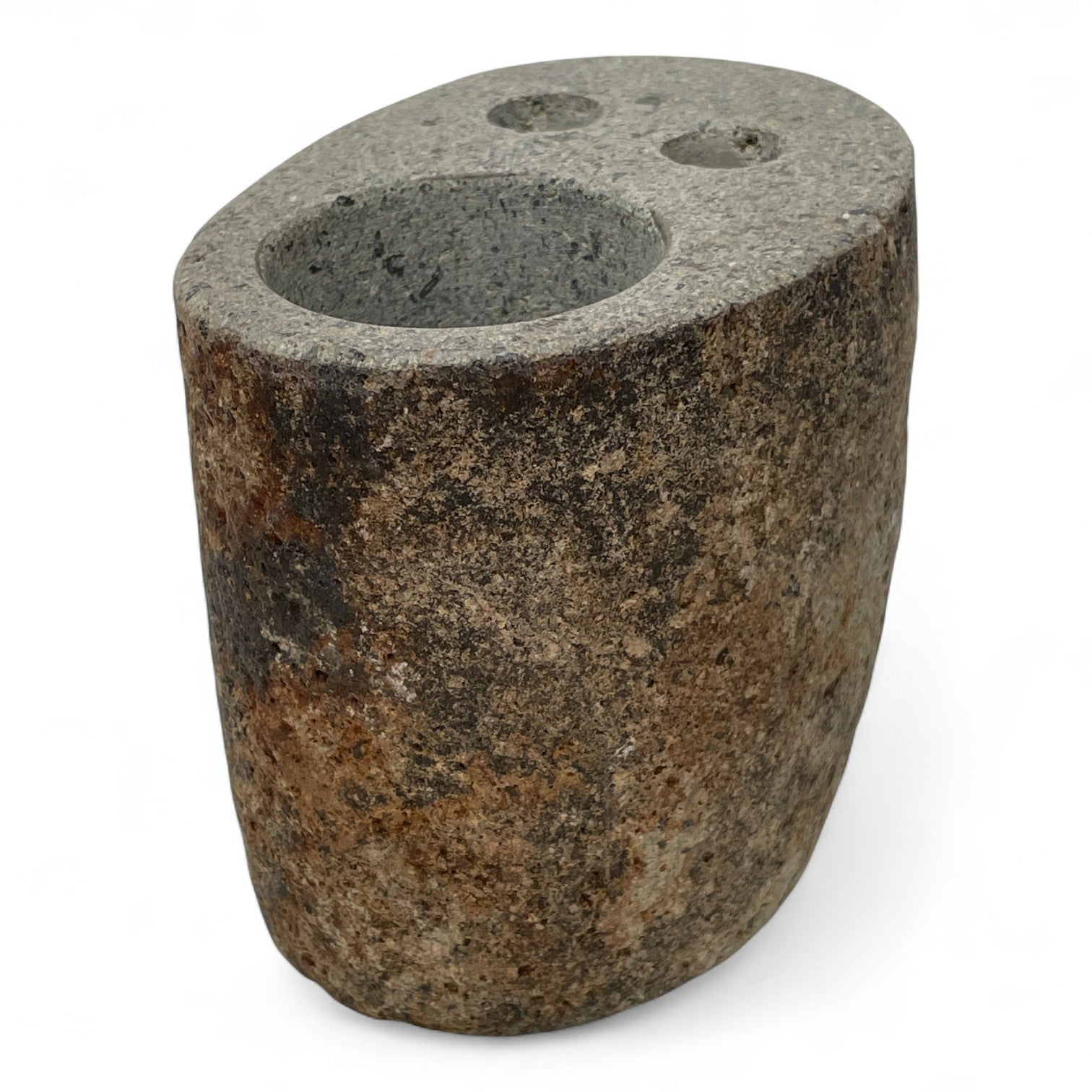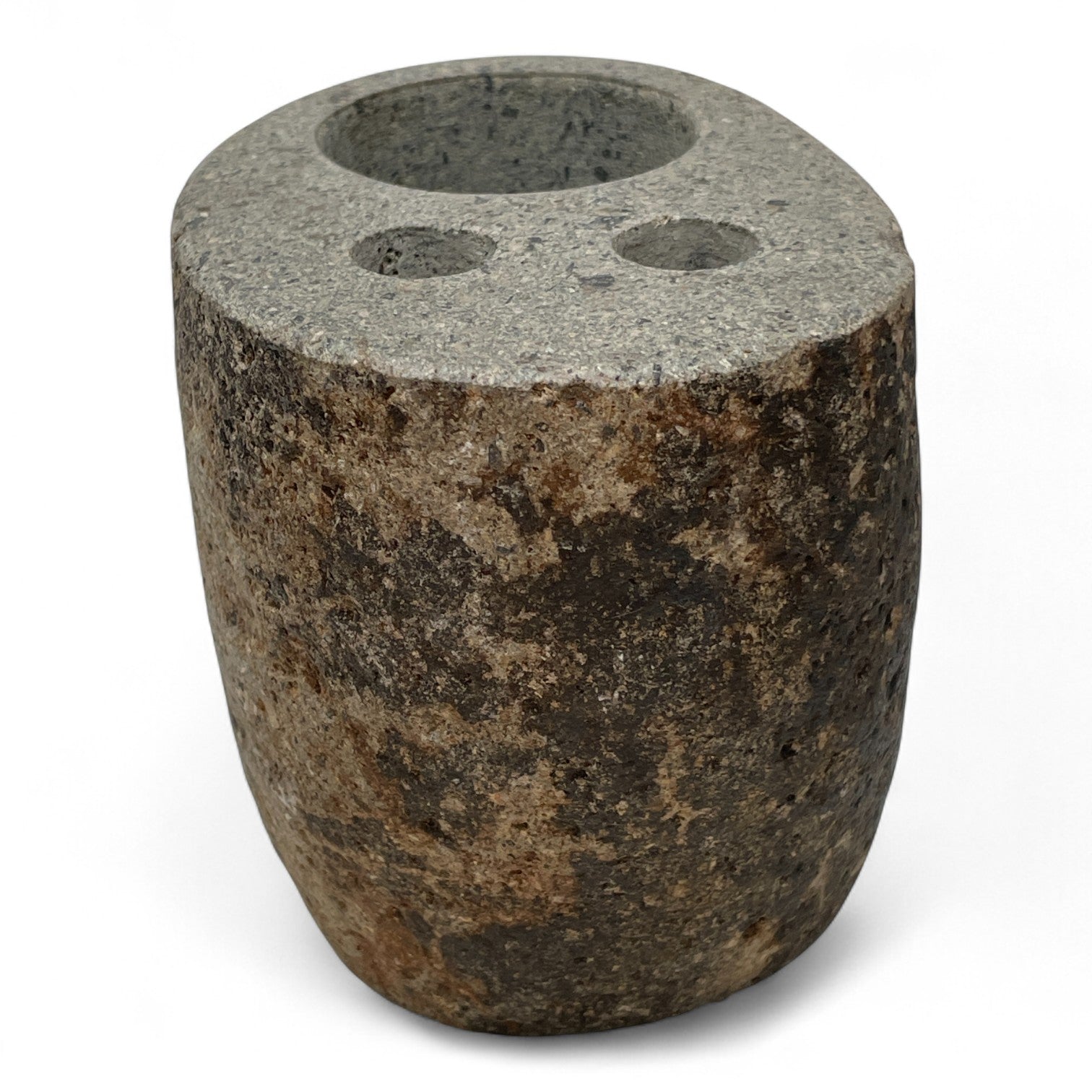 Natural stone luxury toothbrush & toothpaste holder. The 3 Hole series has 3 individual holes, 1 hole for each toothbrush & 1 for toothpaste. Complement this with one of our raw stone moisturiser | lotion dispensers or tea light candle holders. Available under our stone accessories section.