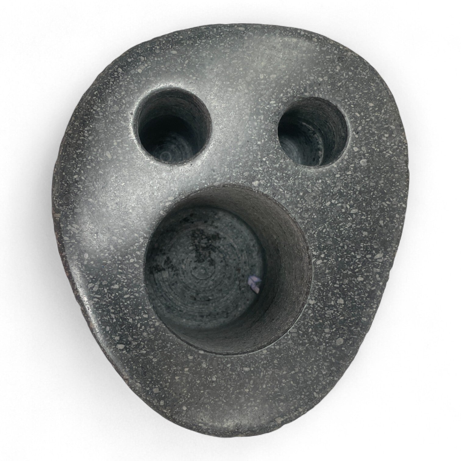Natural stone luxury toothbrush & toothpaste holder. The 3 Hole series has 3 individual holes, 1 hole for each toothbrush & 1 for toothpaste. Complement this with one of our raw stone moisturiser | lotion dispensers or tea light candle holders. Available under our stone accessories section.