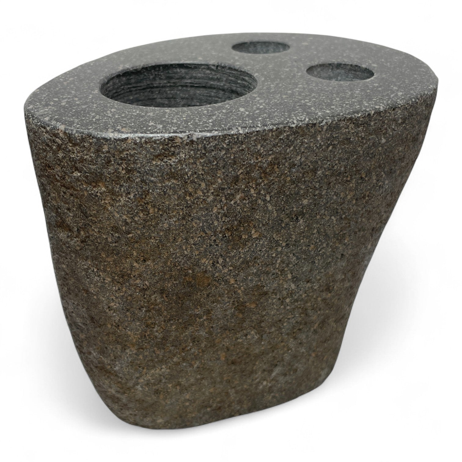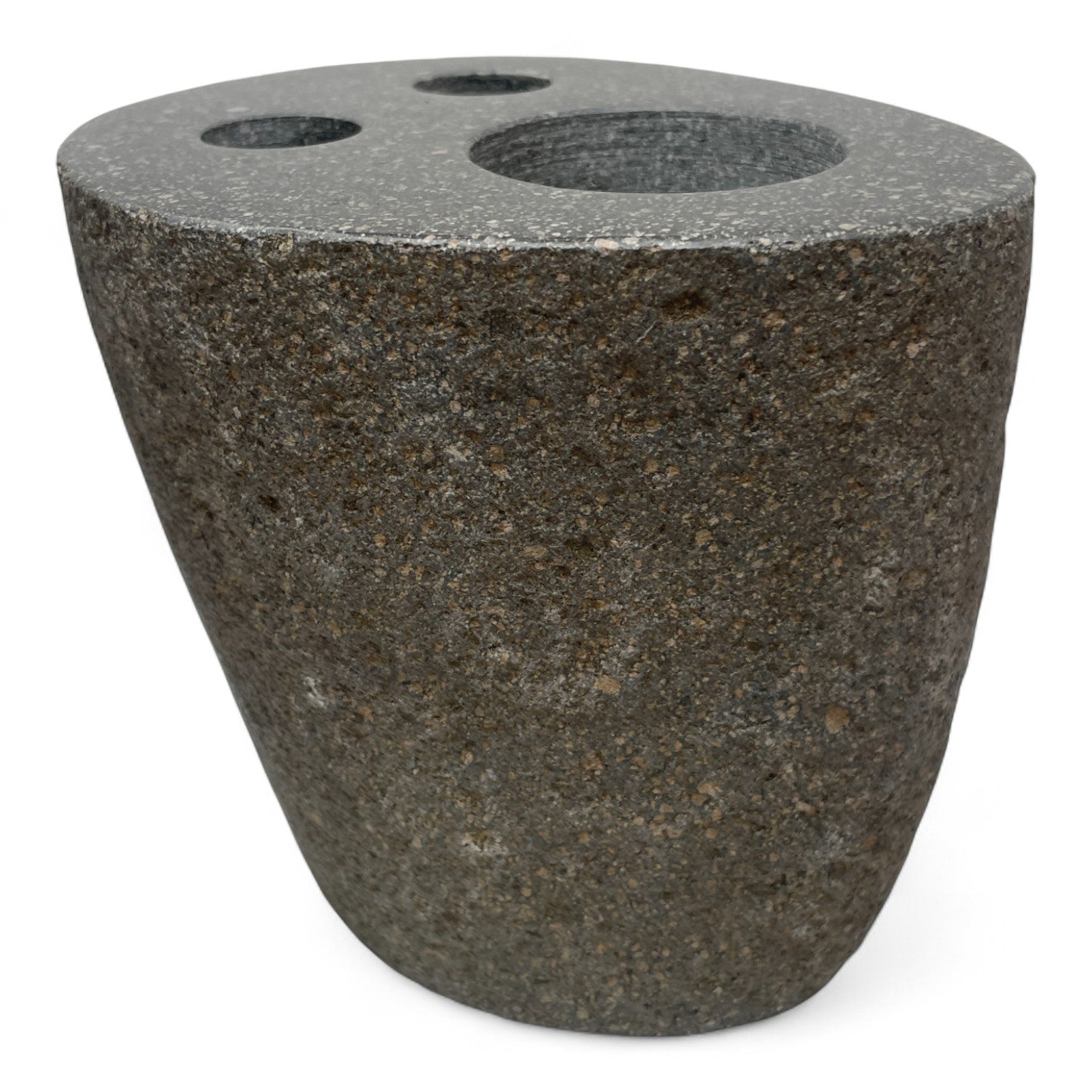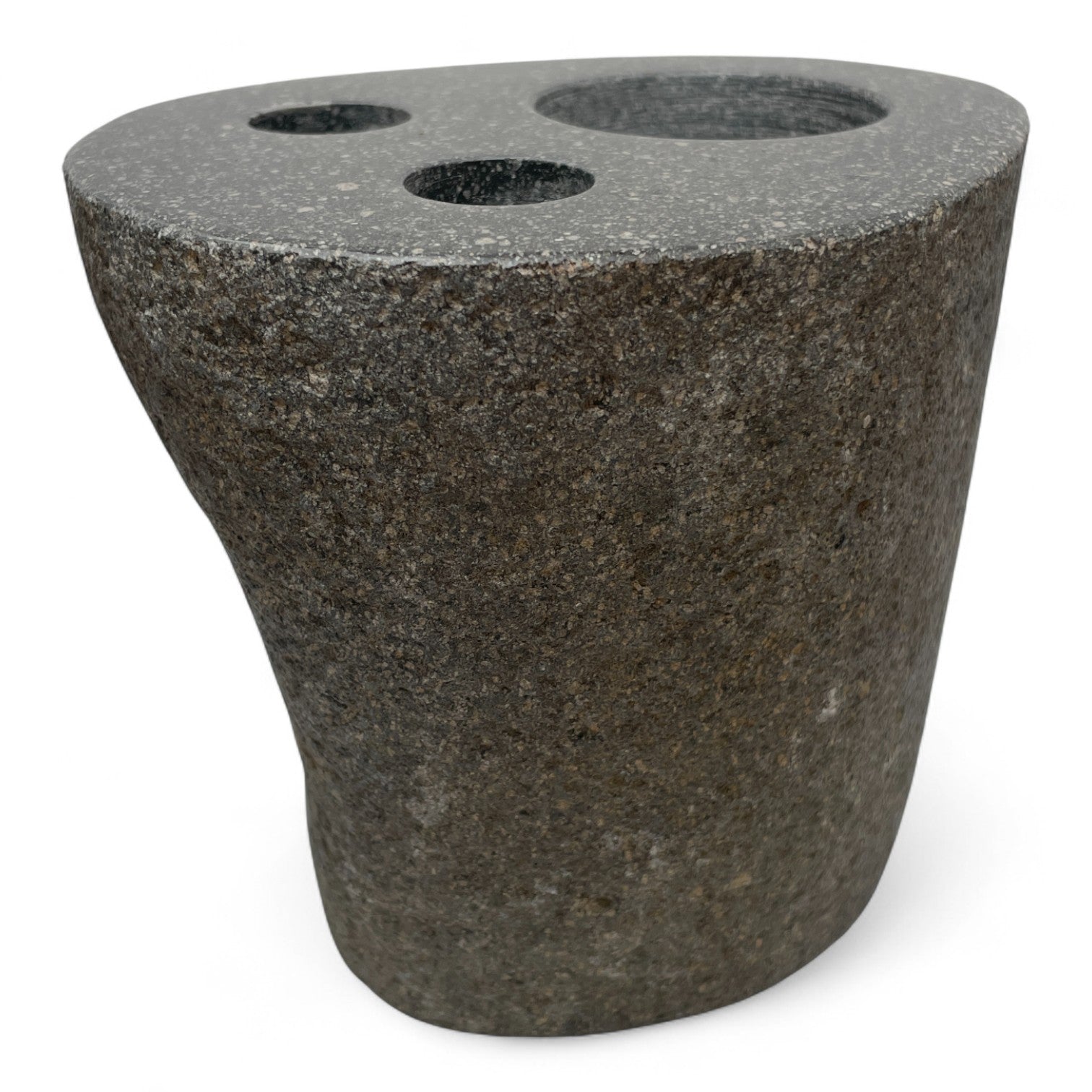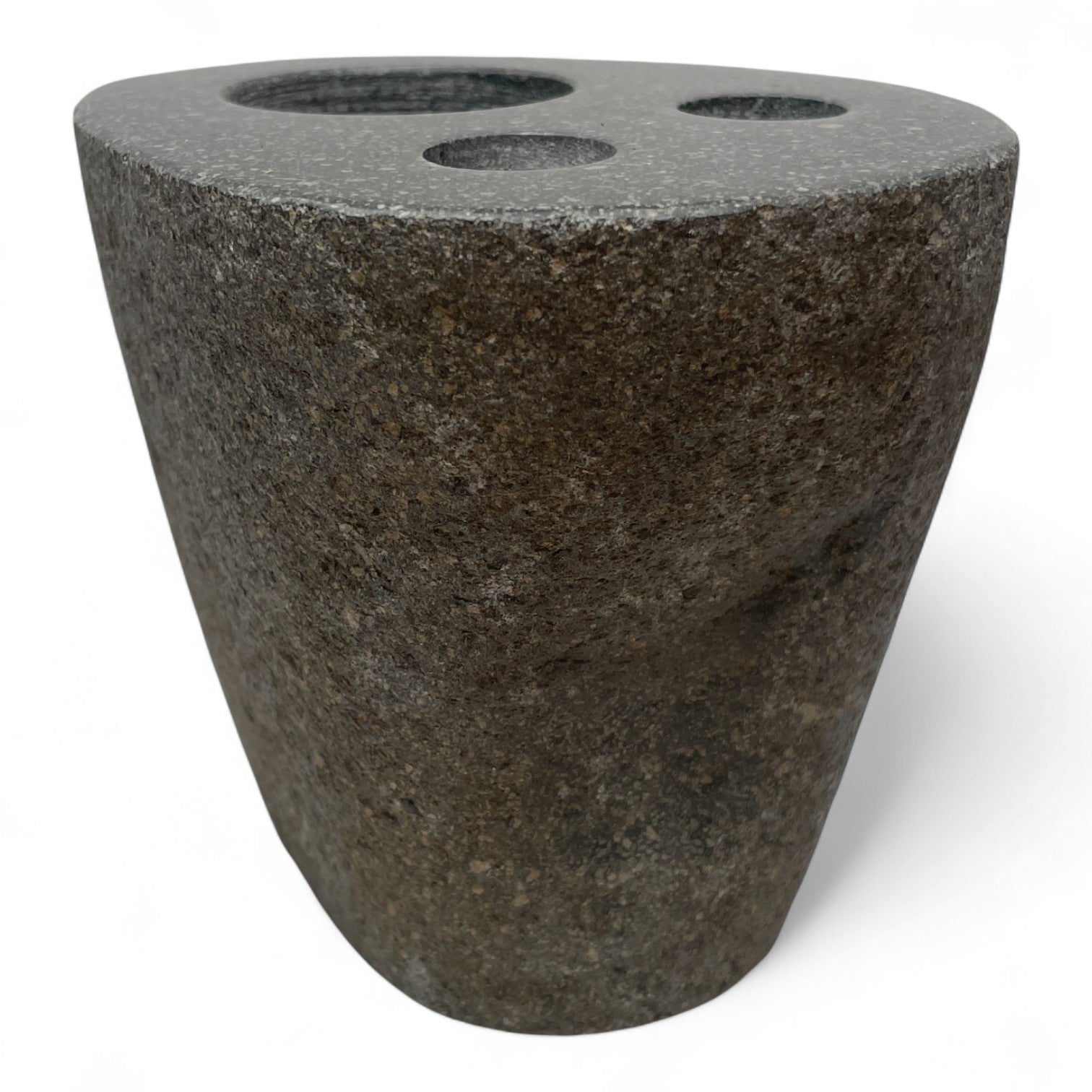 Natural stone luxury toothbrush & toothpaste holder. The 3 Hole series has 3 individual holes, 1 hole for each toothbrush & 1 for toothpaste. Complement this with one of our raw stone moisturiser | lotion dispensers or tea light candle holders. Available under our stone accessories section.