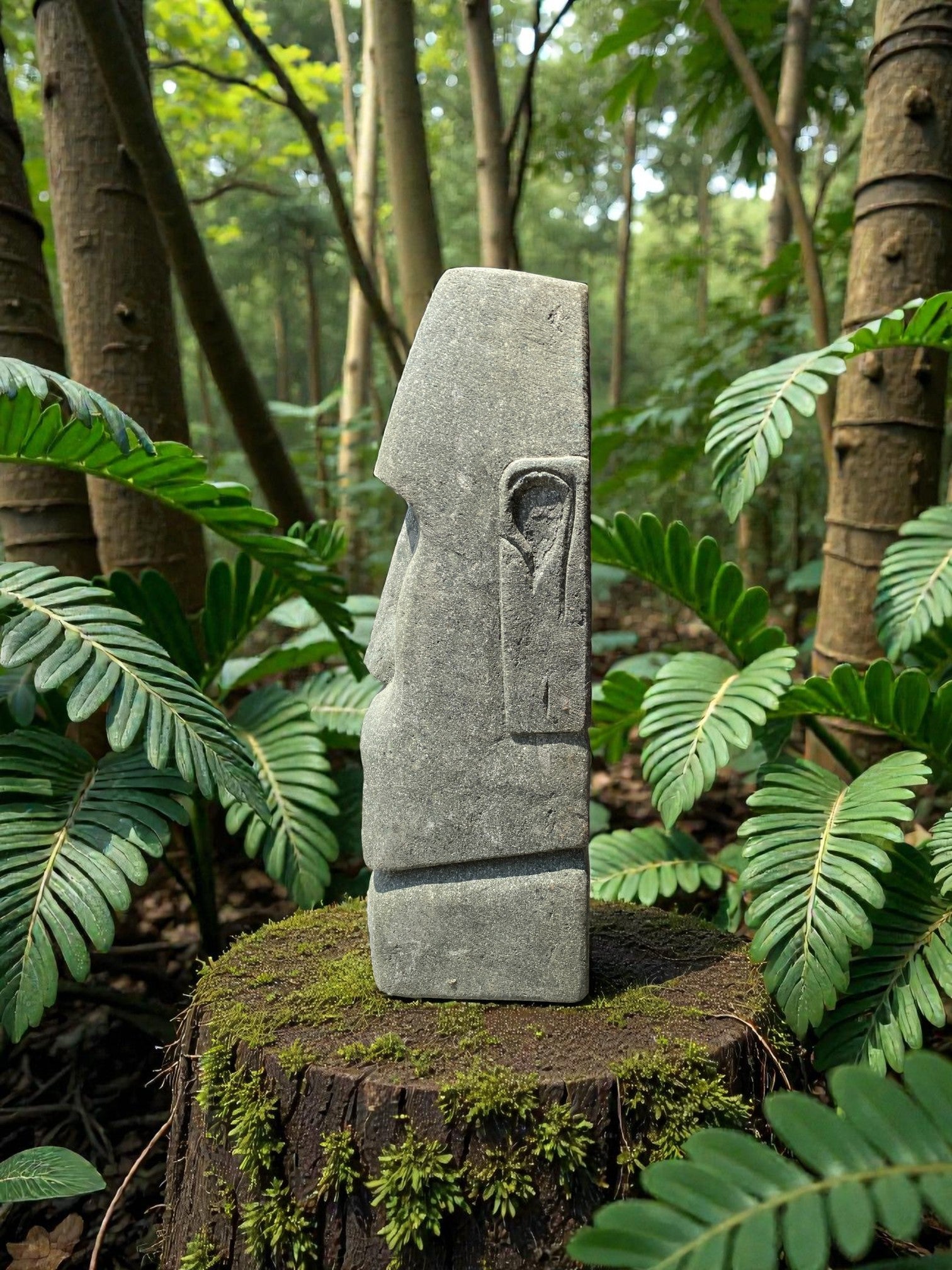 Easter Island Statue Hand Carved Green Stone 830mm (3215)