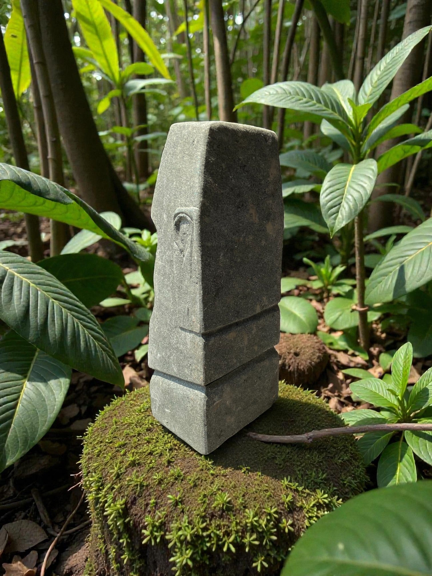 • Easter Island Statue Hand Carved Green Stone 630mm StoneBase (3206)