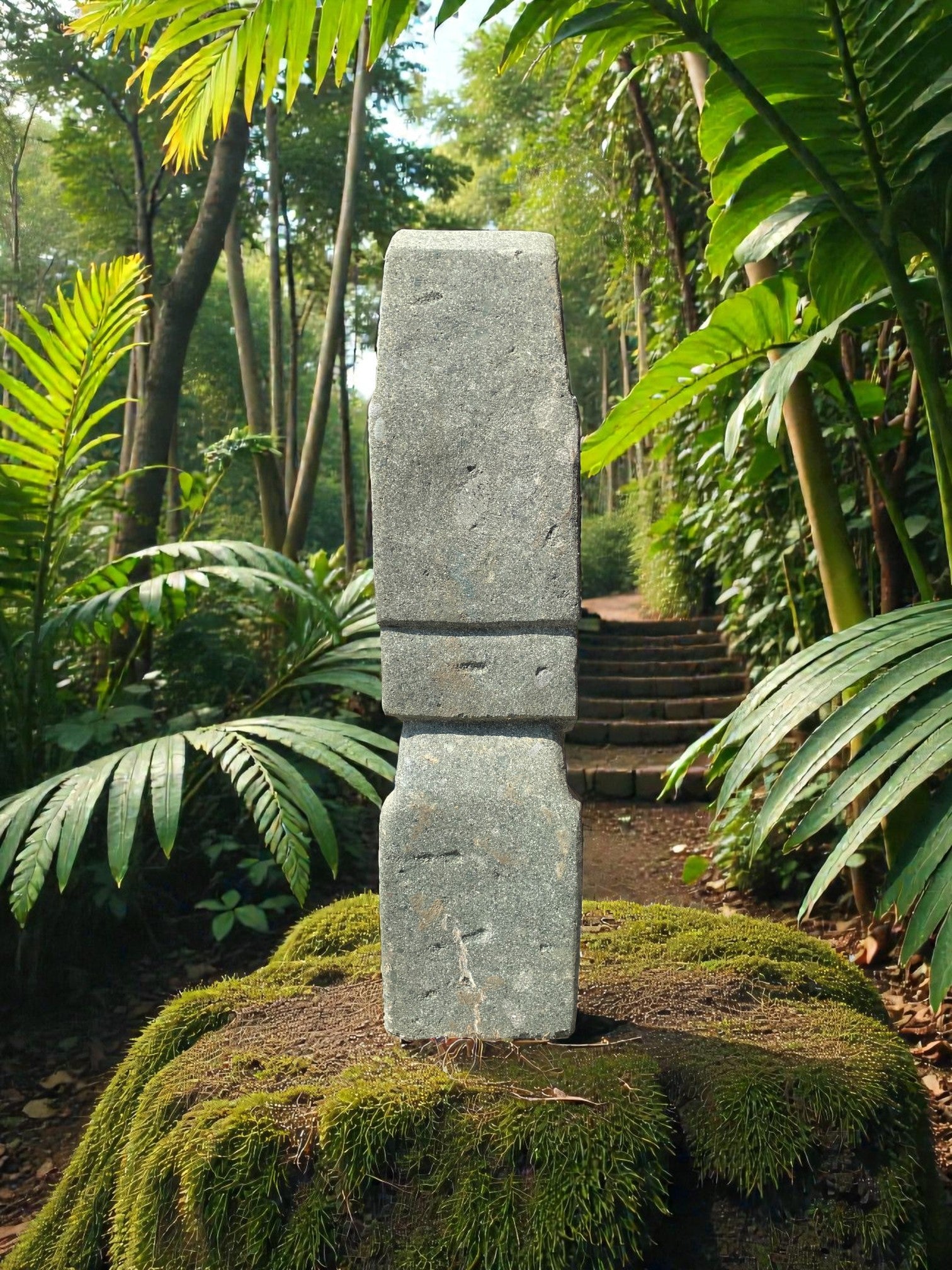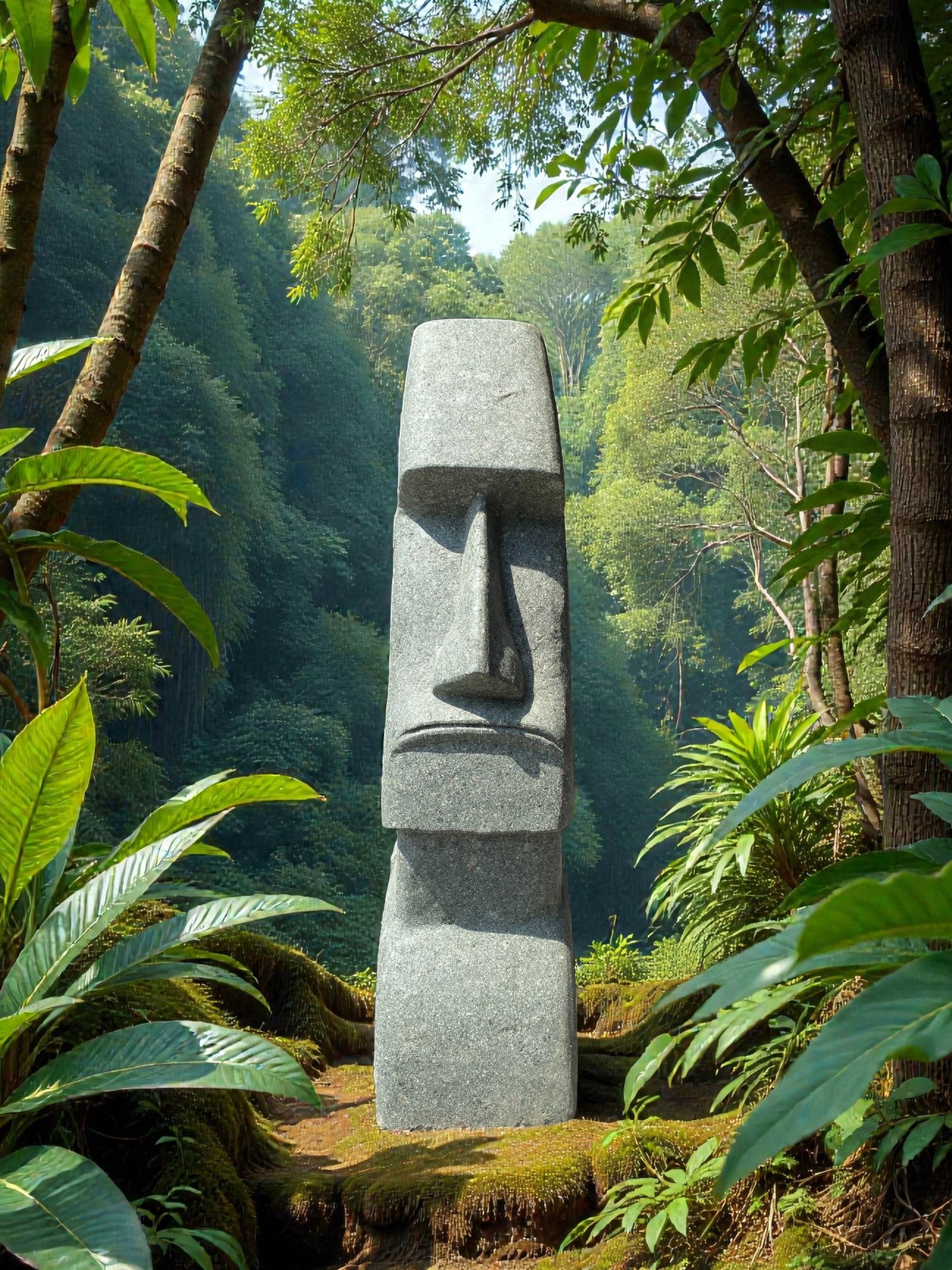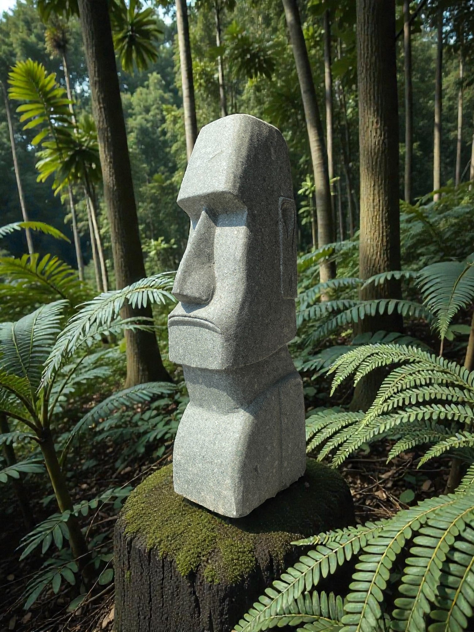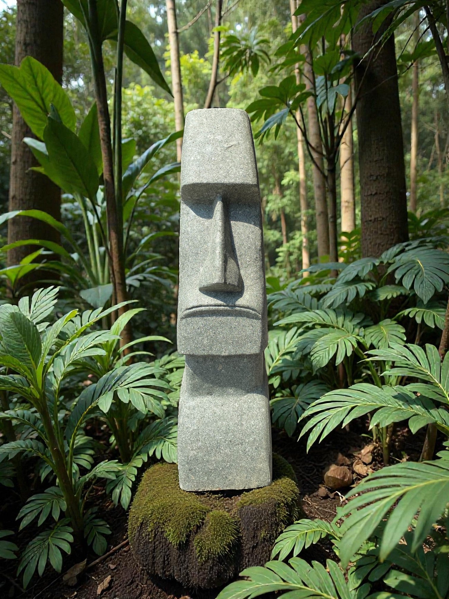 • Easter Island Statue Hand Carved Green Stone 820mm StoneBase (3249)