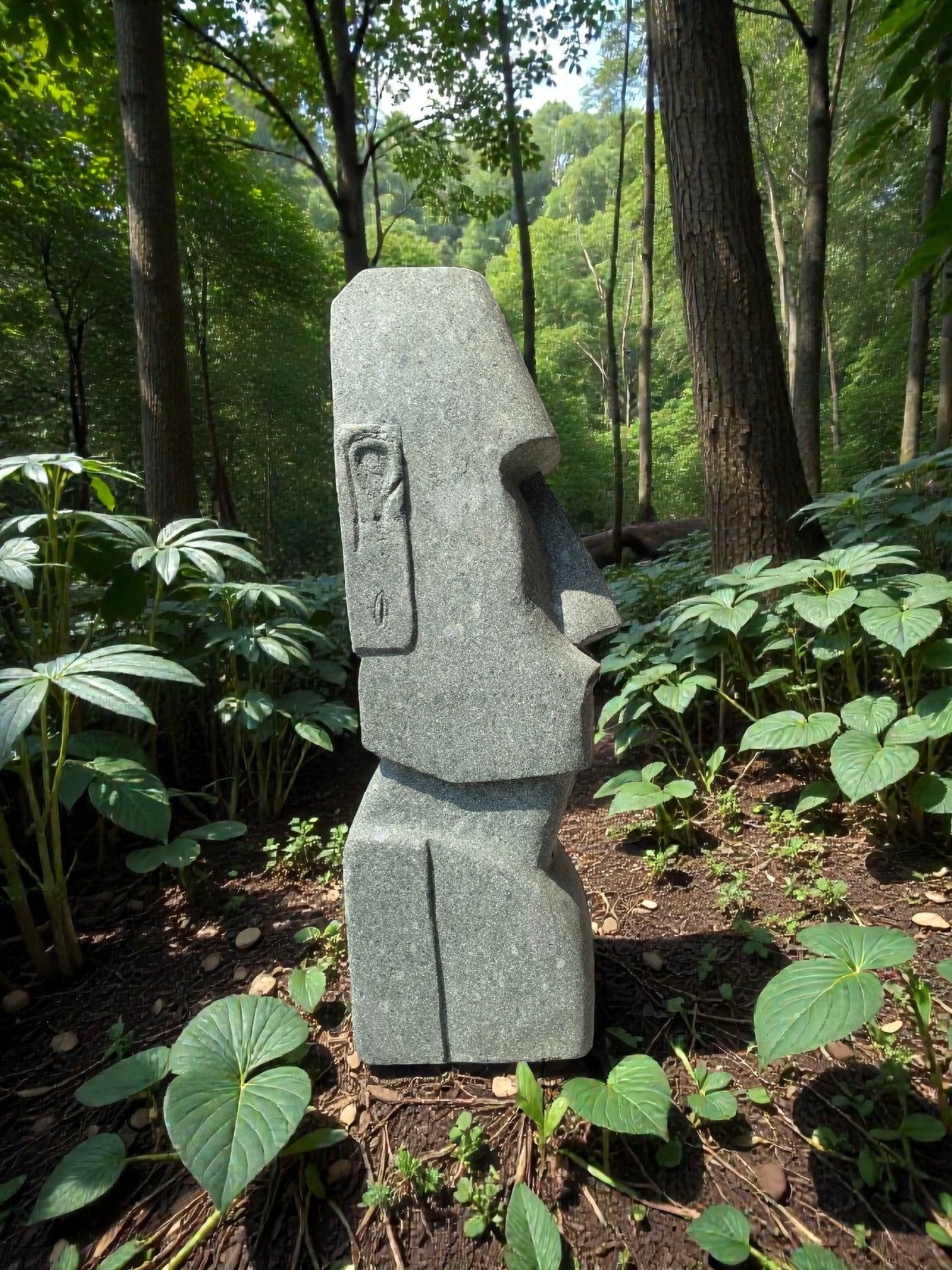 Easter Island Statue Hand Carved Green Stone 830mm (3215)