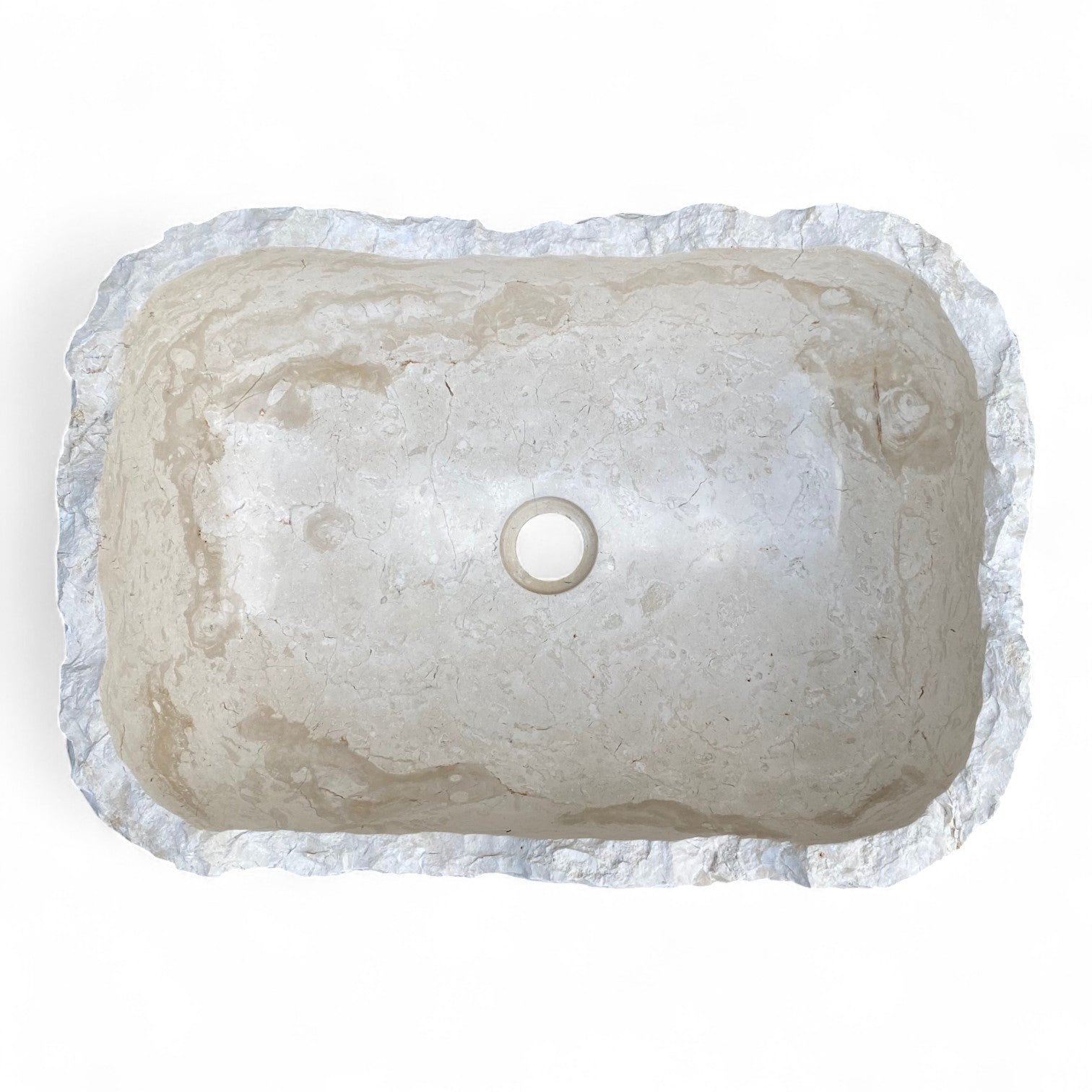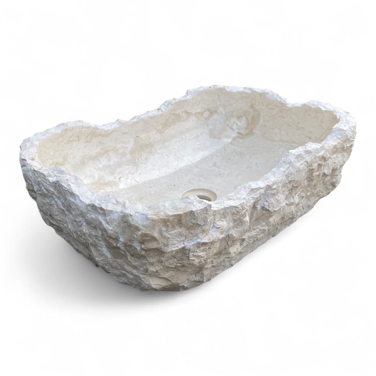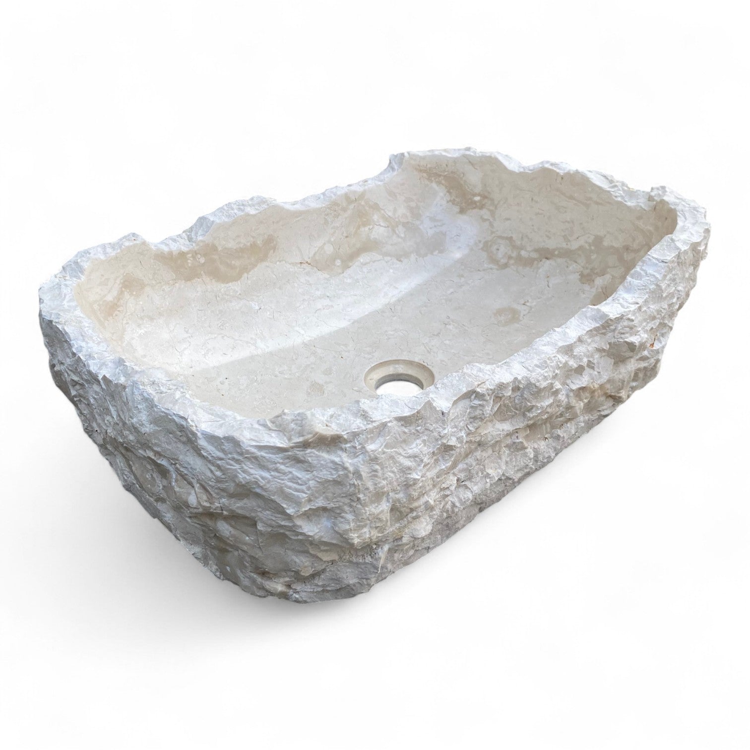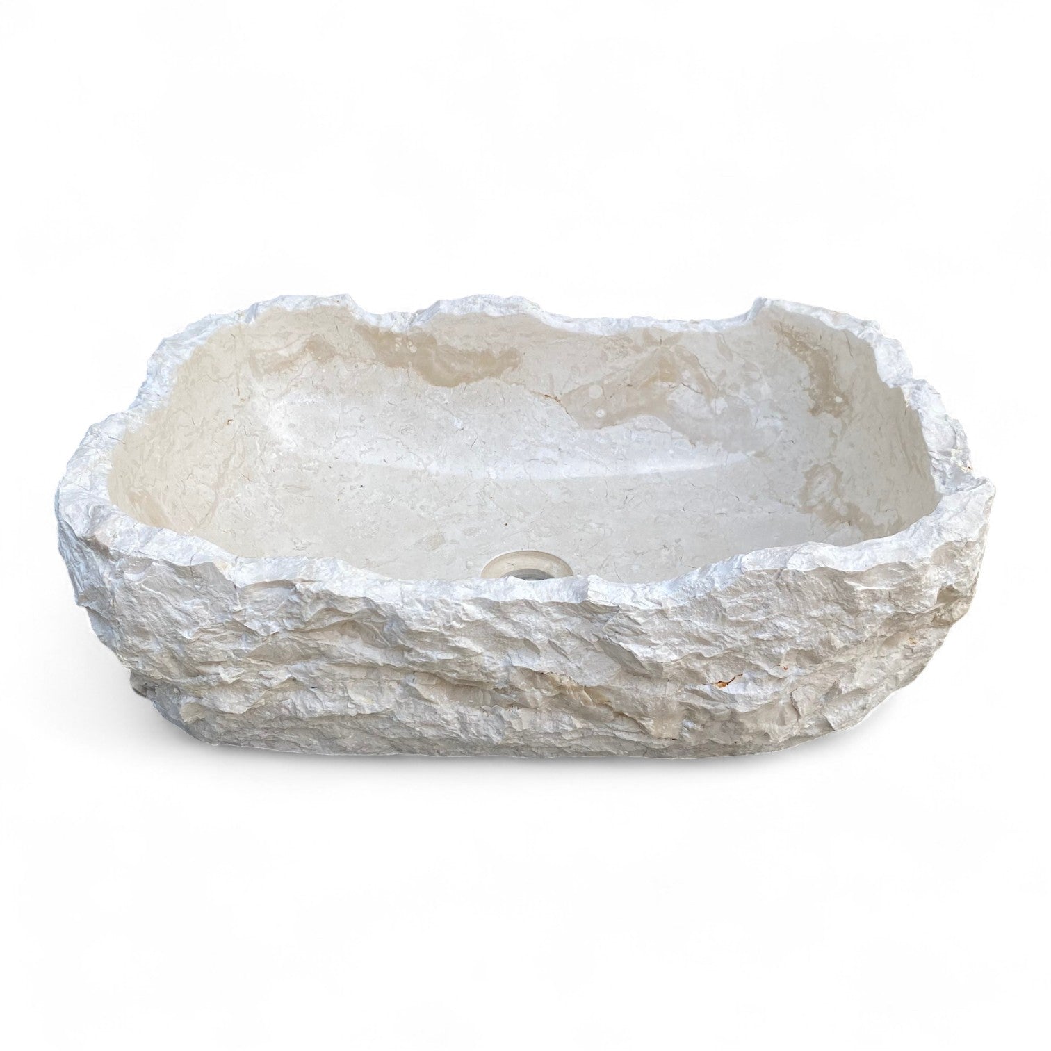 • Raw White Marble Natural Stone Basin 520mm x 360mm x 155/130mm (3279)