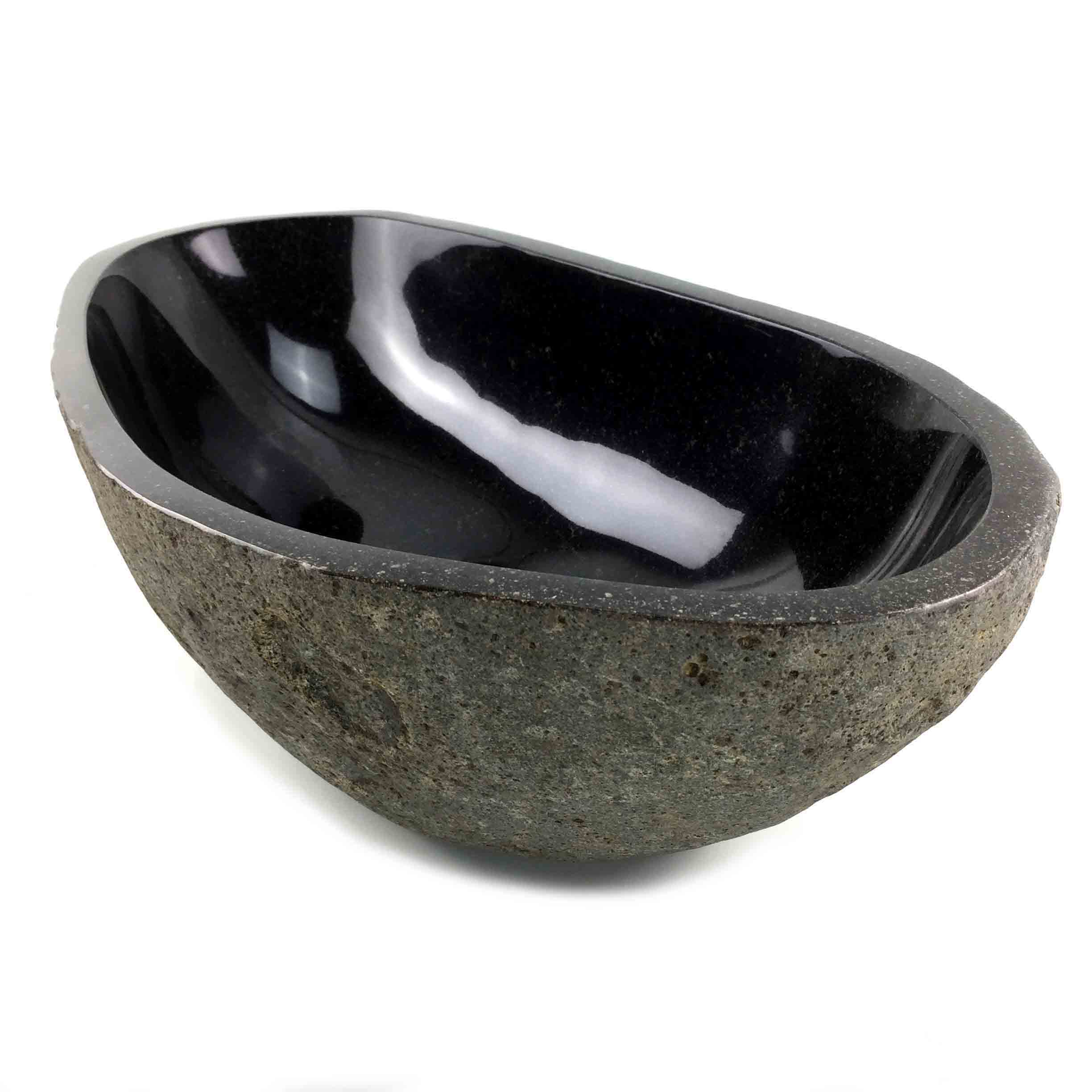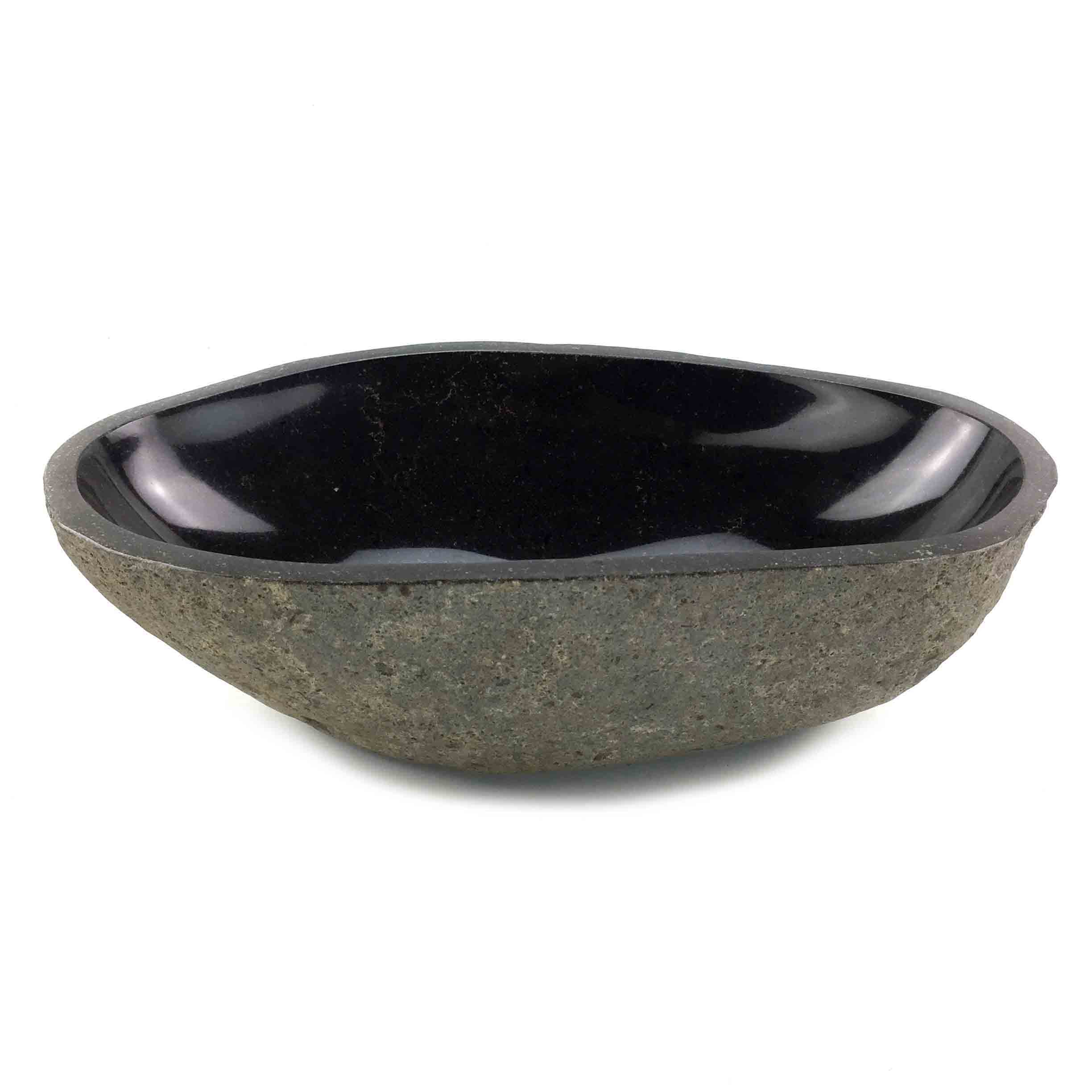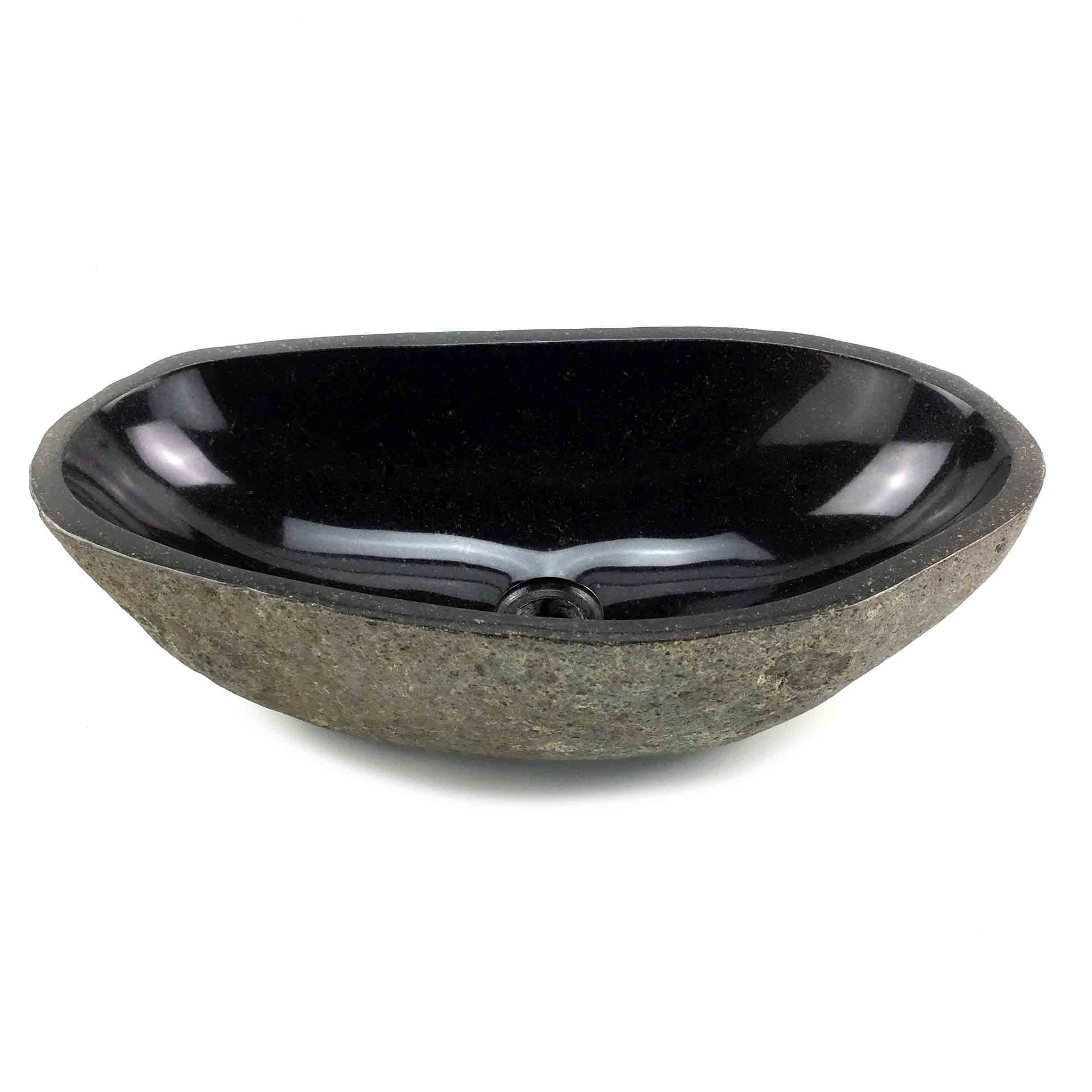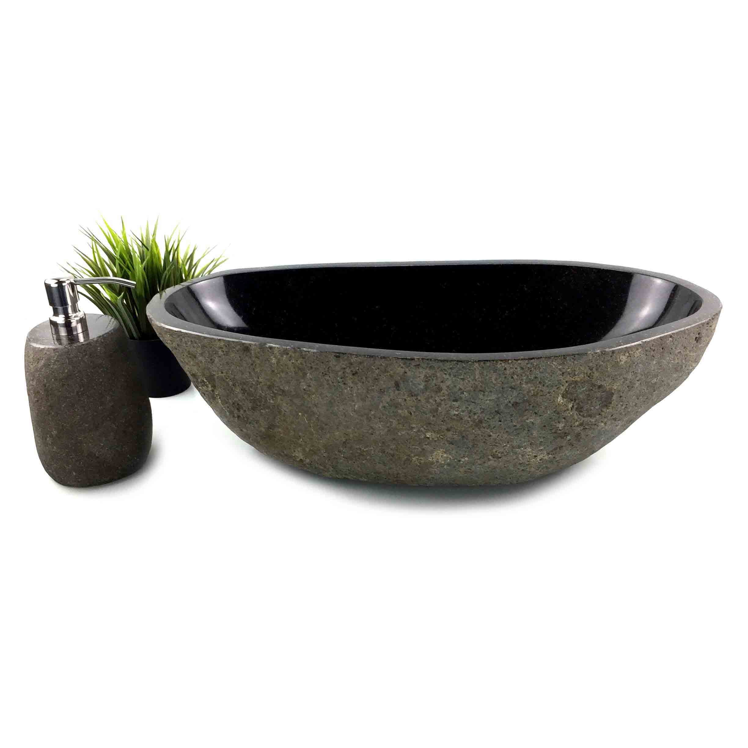 Oval Rock Vanity basin with natural exterior, smooth polished interior. Large Size. All of our Stone Bathroom sinks require a 32mm Pop up waste without overflow. Complement the StoneBase Bathroom Sink with one of our stone bathroom accessories like the Soap, Lotion or Moisturiser dispenser, with Chrome, Copper or Brass look pump, soap dishes, stone candle holder, Towel Trays and toothbrush holders to match.