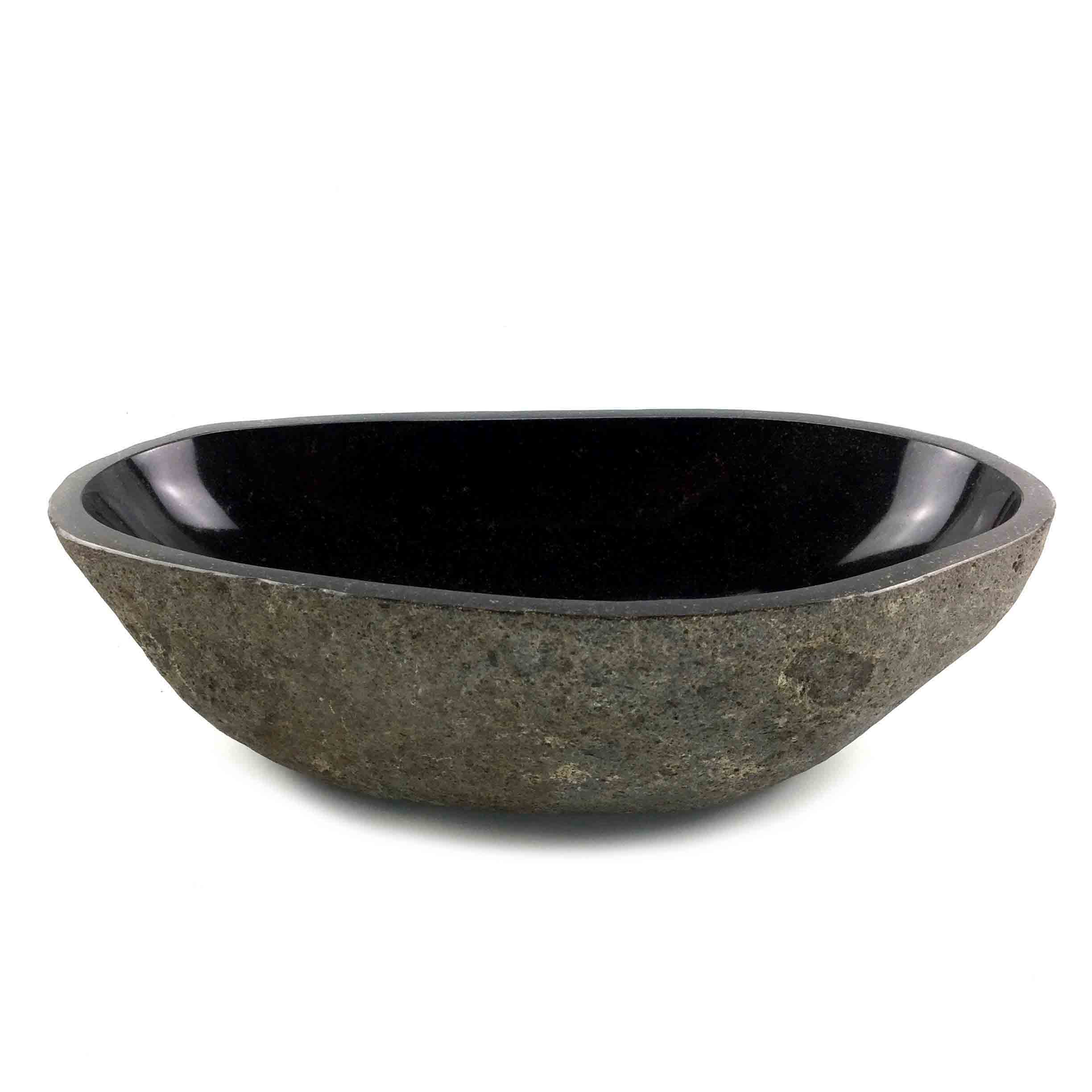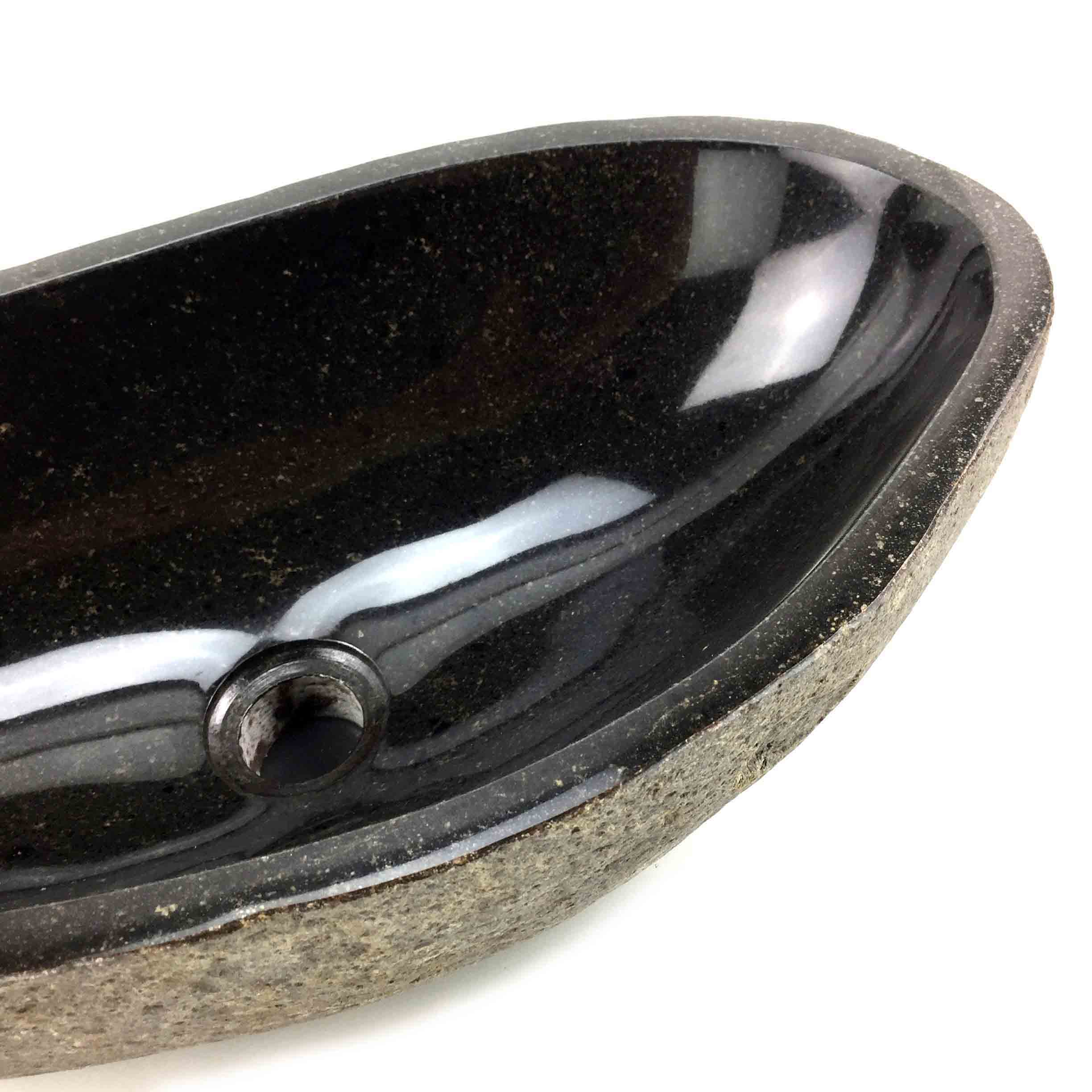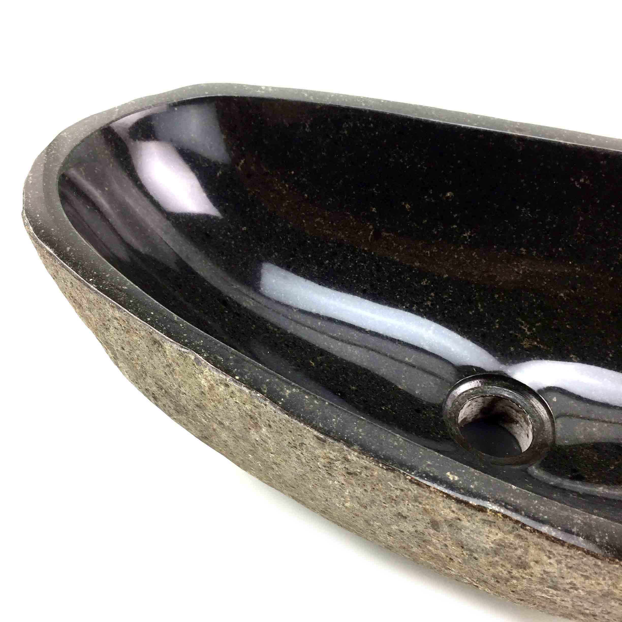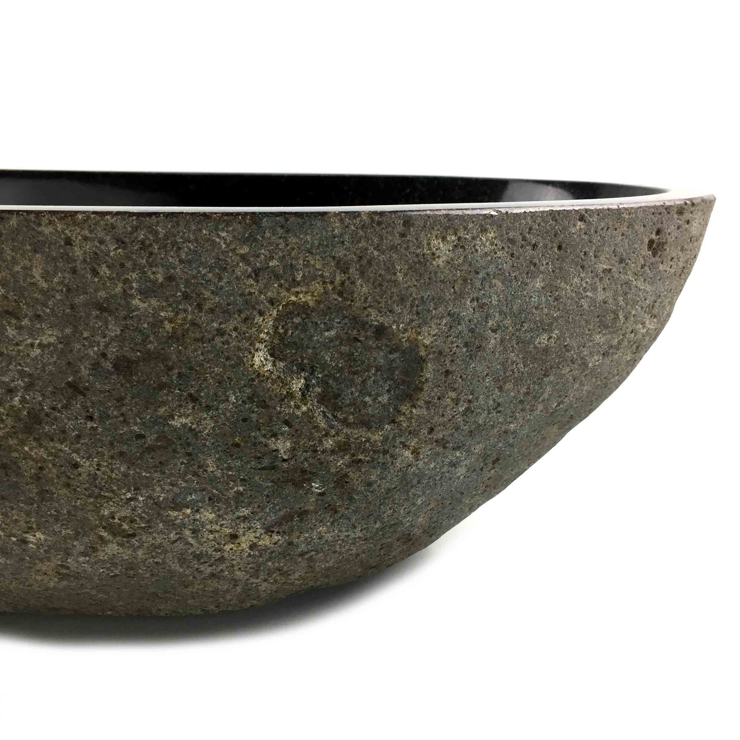 Oval Rock Vanity basin with natural exterior, smooth polished interior. Large Size. All of our Stone Bathroom sinks require a 32mm Pop up waste without overflow. Complement the StoneBase Bathroom Sink with one of our stone bathroom accessories like the Soap, Lotion or Moisturiser dispenser, with Chrome, Copper or Brass look pump, soap dishes, stone candle holder, Towel Trays and toothbrush holders to match.