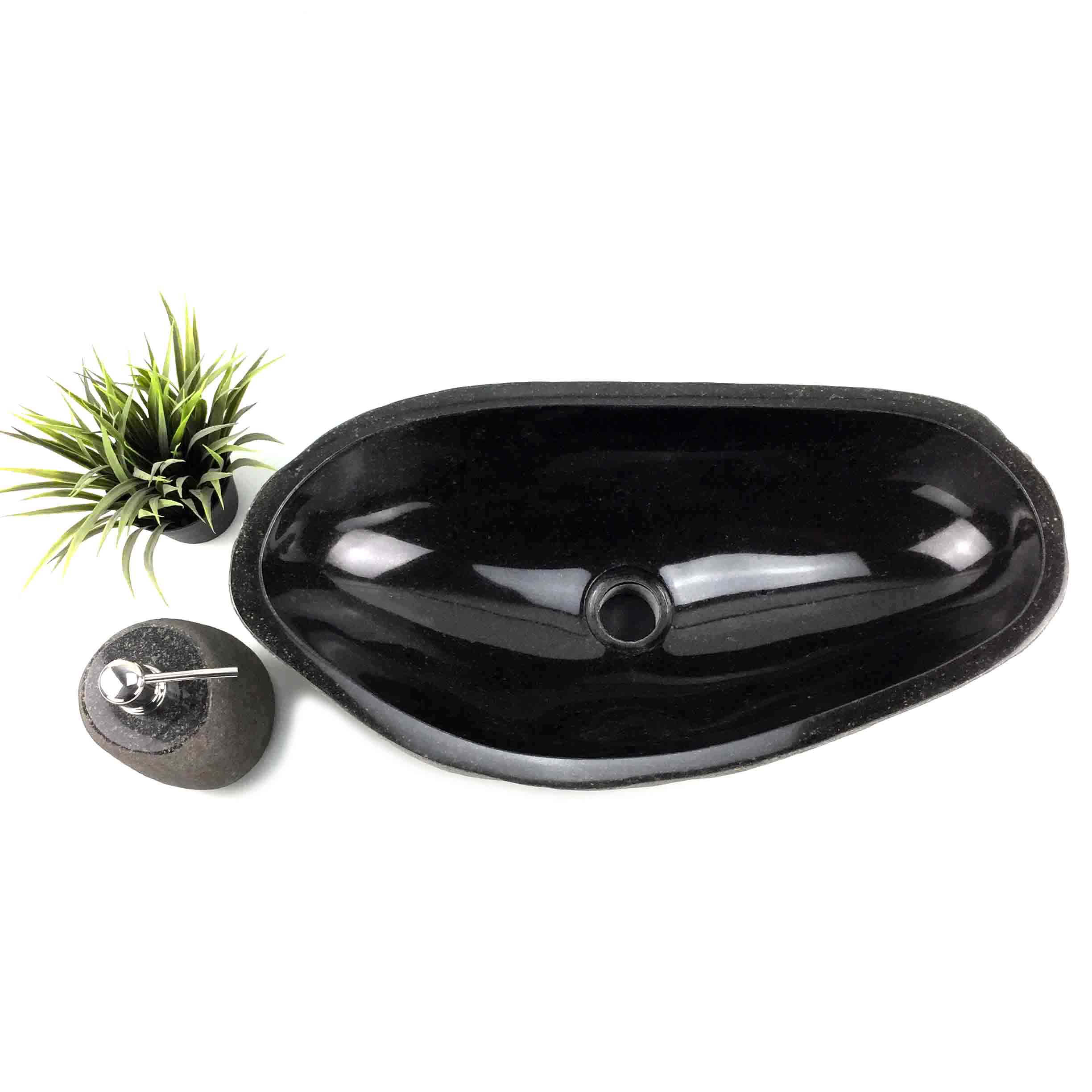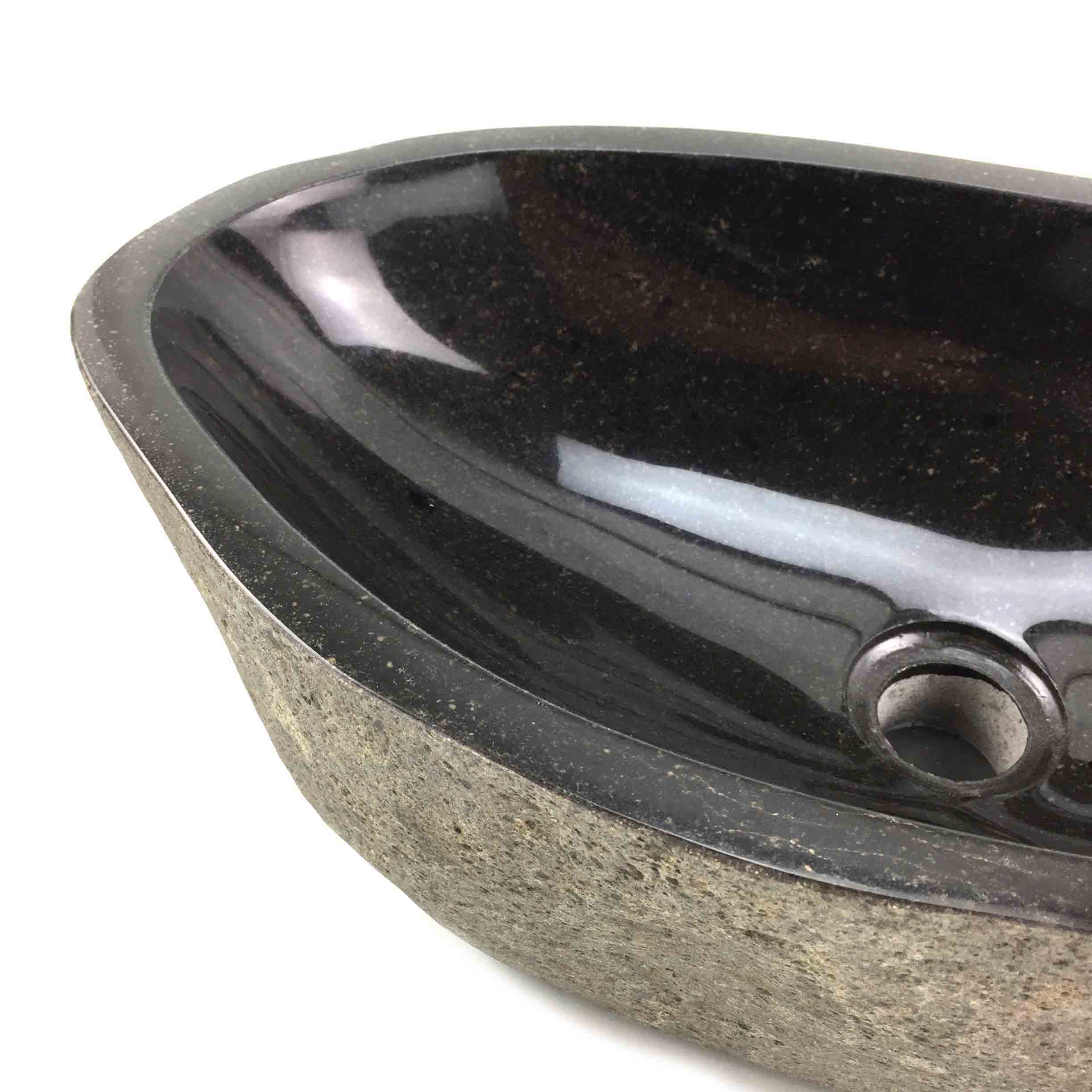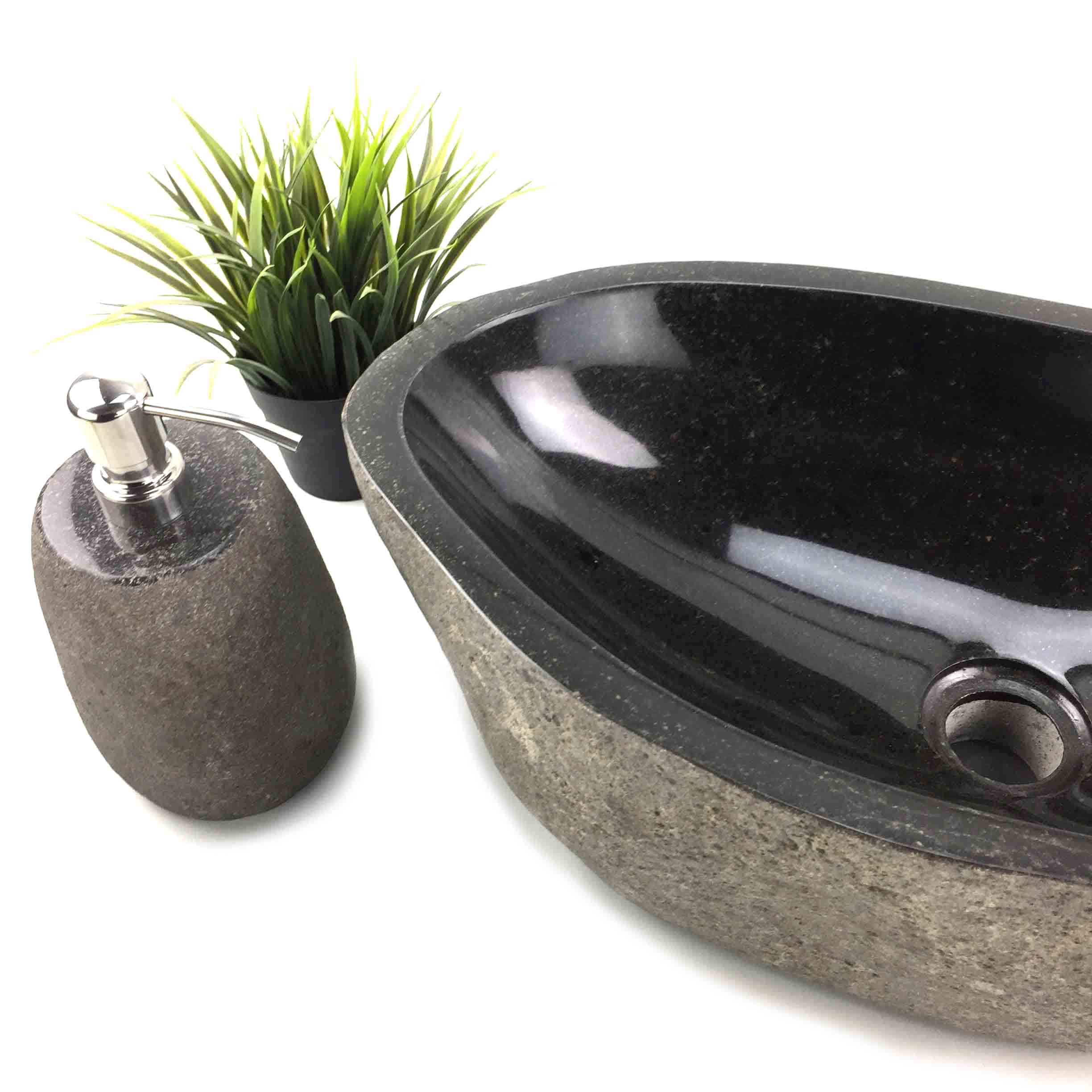 Vanity basin with natural exterior and smooth polished interior. Large Size. All of our Stone Bathroom sinks require a 32mm Pop up waste without overflow. Complement the StoneBase Bathroom Sink with one of our stone bathroom accessories like the Soap, Lotion or Moisturiser dispenser, with Chrome, Copper or Brass look pump, soap dishes, stone candle holder, Towel Trays and toothbrush holders to match.