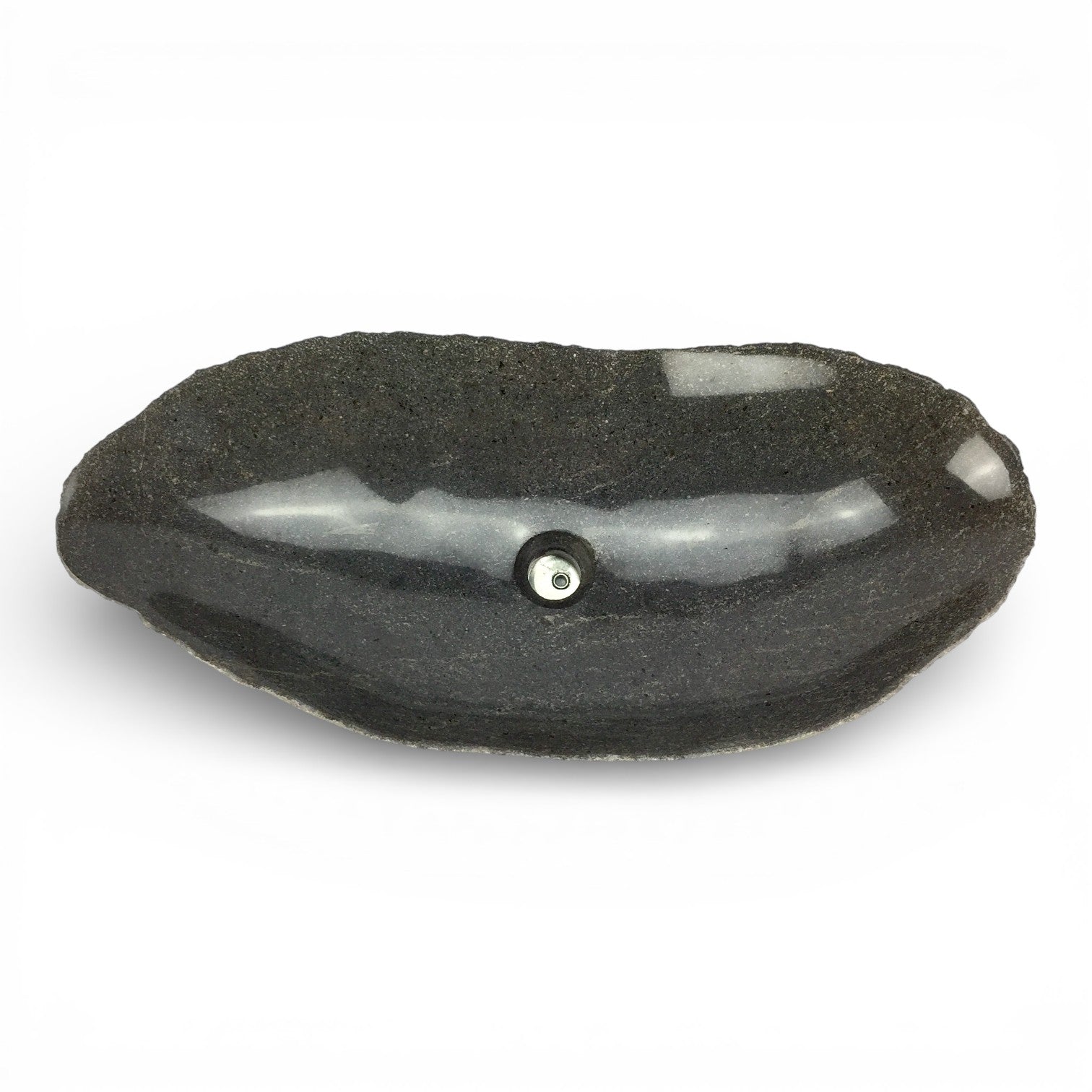 Vanity basin with natural lip, natural exterior and smooth polished interior. Large size. All of our Stone Bathroom sinks require a 32mm Pop up waste without overflow. Complement the StoneBase Bathroom Sink with one of our stone bathroom accessories like the Soap, Lotion or Moisturiser dispenser, with Chrome, Copper or Brass look pump, soap dishes, stone candle holder, Towel Trays and toothbrush holders to match.