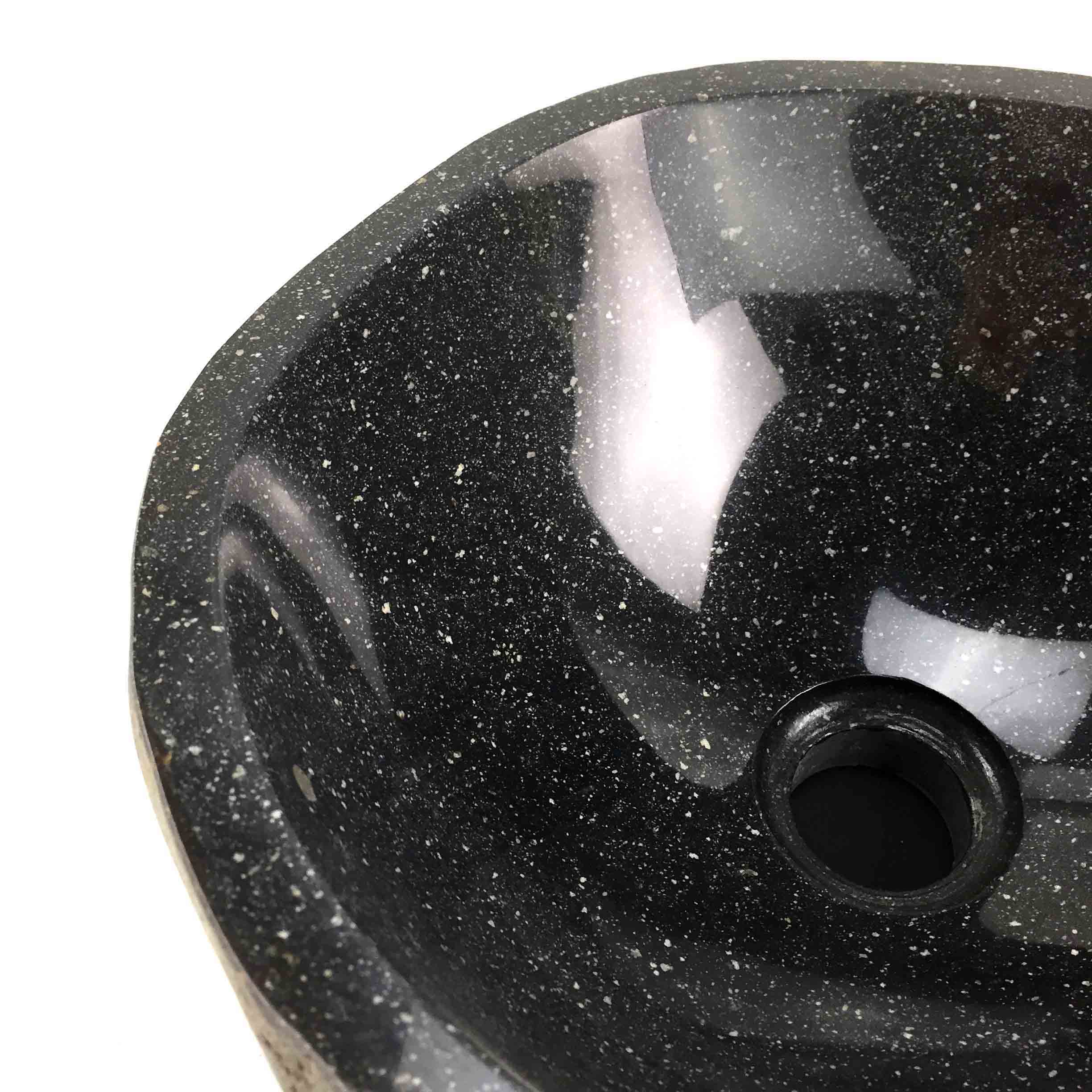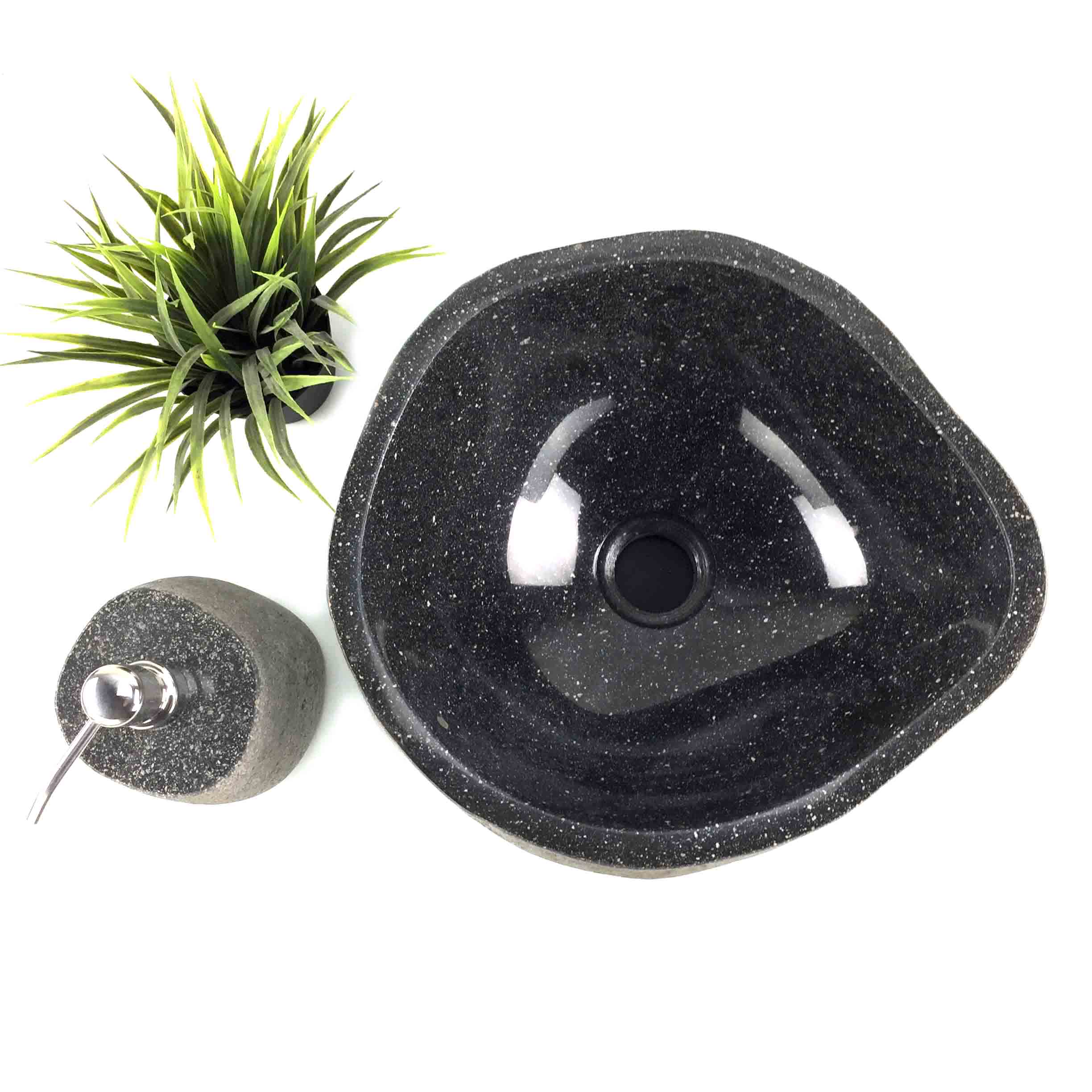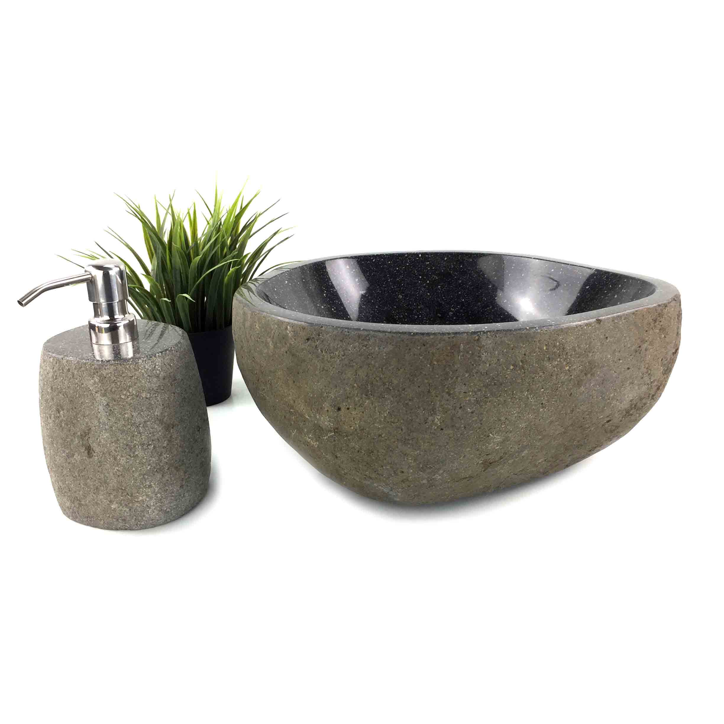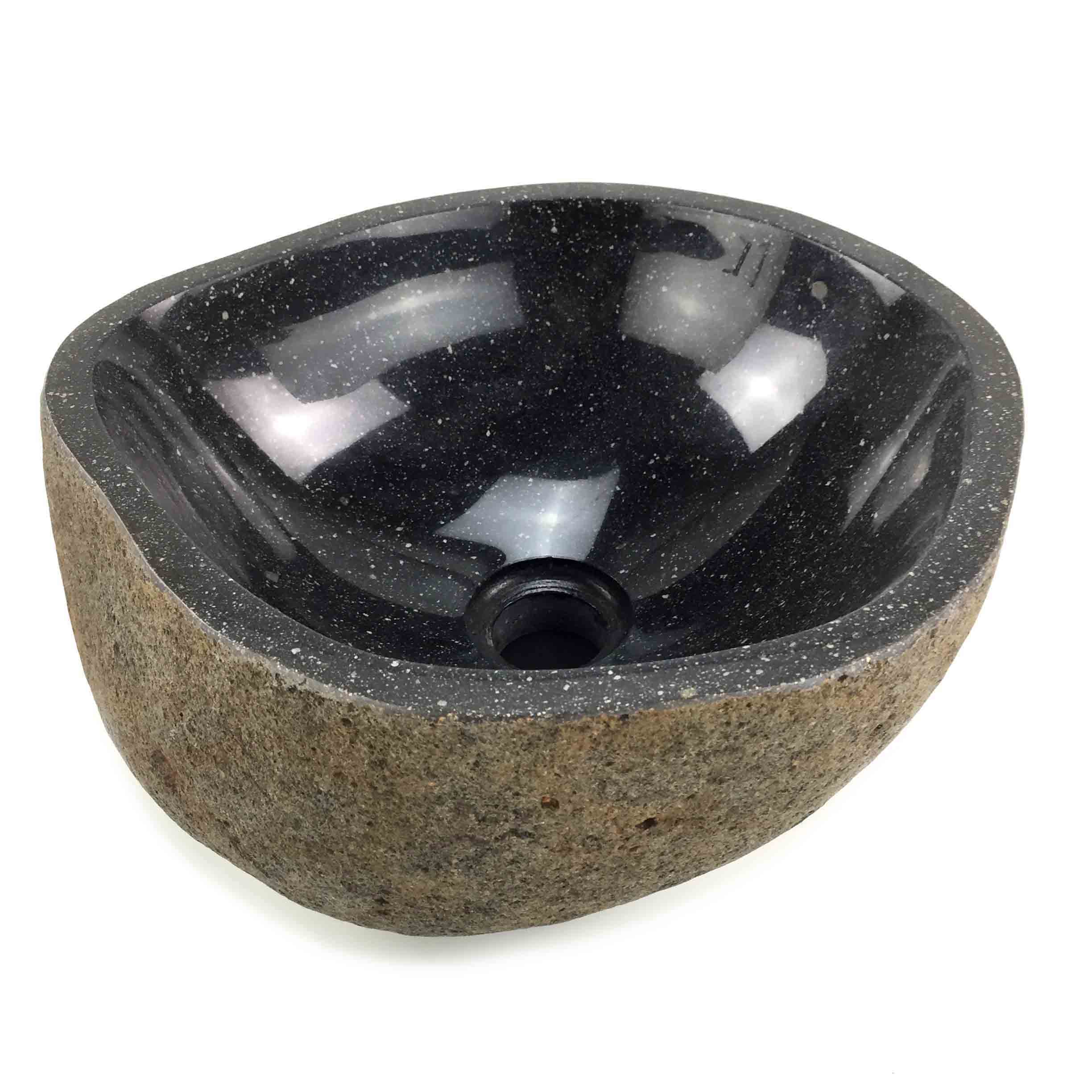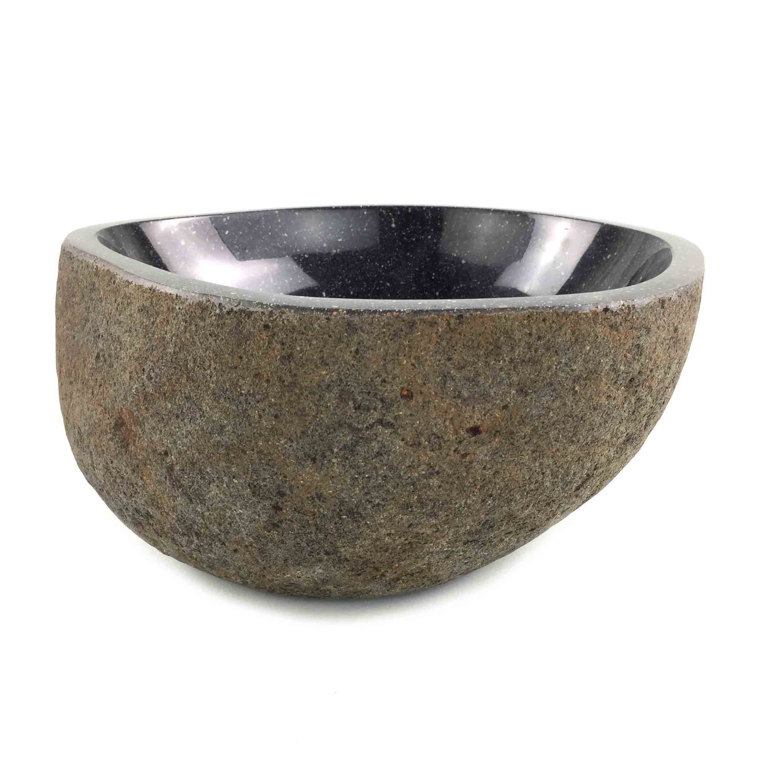 Stonebase Raw & Earthy vanity basin with natural exterior, glossy interior. Tiny size for Tiny Homes or small tight spaces. All of our Stone bathroom basins require a 32mm Pop up waste without overflow. Complement the StoneBase bathroom sink with one of our stone bathroom accessories like the Soap & Lotion or Moisturiser dispenser with Chrome, Copper, Black or Brass look pump, soap dish or toothbrush / toothpaste holder to finish. Compact vessel basins are perfect for small and tight bathroom or toilet or powder room spaces, offering both practicality and aesthetic appeal.