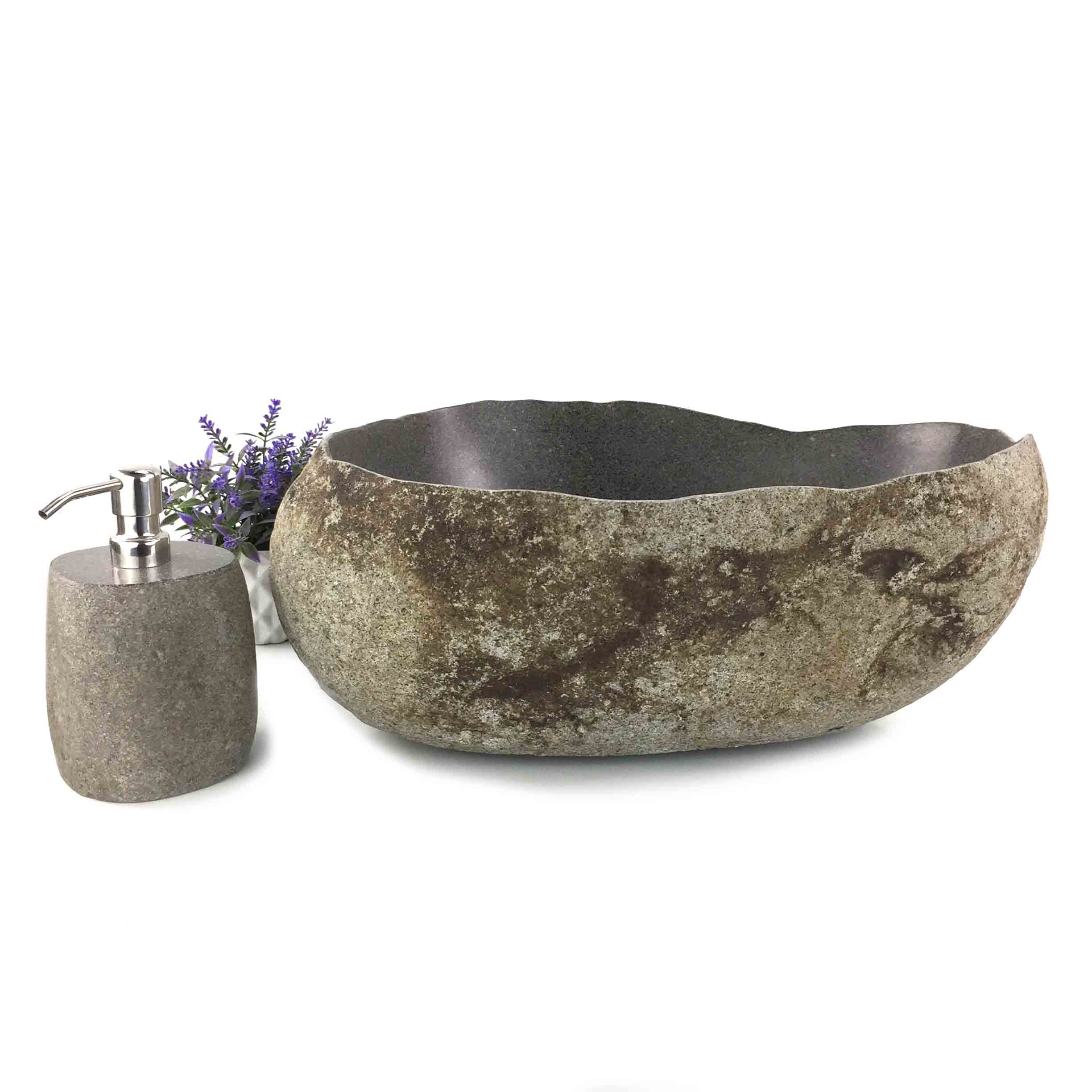 Rare colour and texture combination with refined natural lip, raw exterior and Matte finish interior. All of our Stone basins require a 32mm Pop up waste without overflow. Complement the StoneBase bathroom sink with one of our stone bathroom accessories like the Stone Soap & Lotion dispenser or Stone Moisturiser dispenser with Chrome, Copper, Black or Brass look pump, Stone soap dish or toothbrush / toothpaste holder to finish. StoneBase rock vessel basins are perfect for standard size bathroom or toilet or powder room spaces, offering both practicality and aesthetic appeal. It's always best practice to check our measurements to see if these work with your space requirements