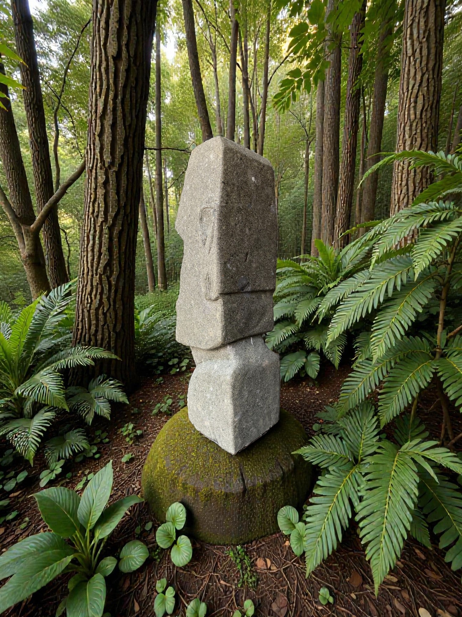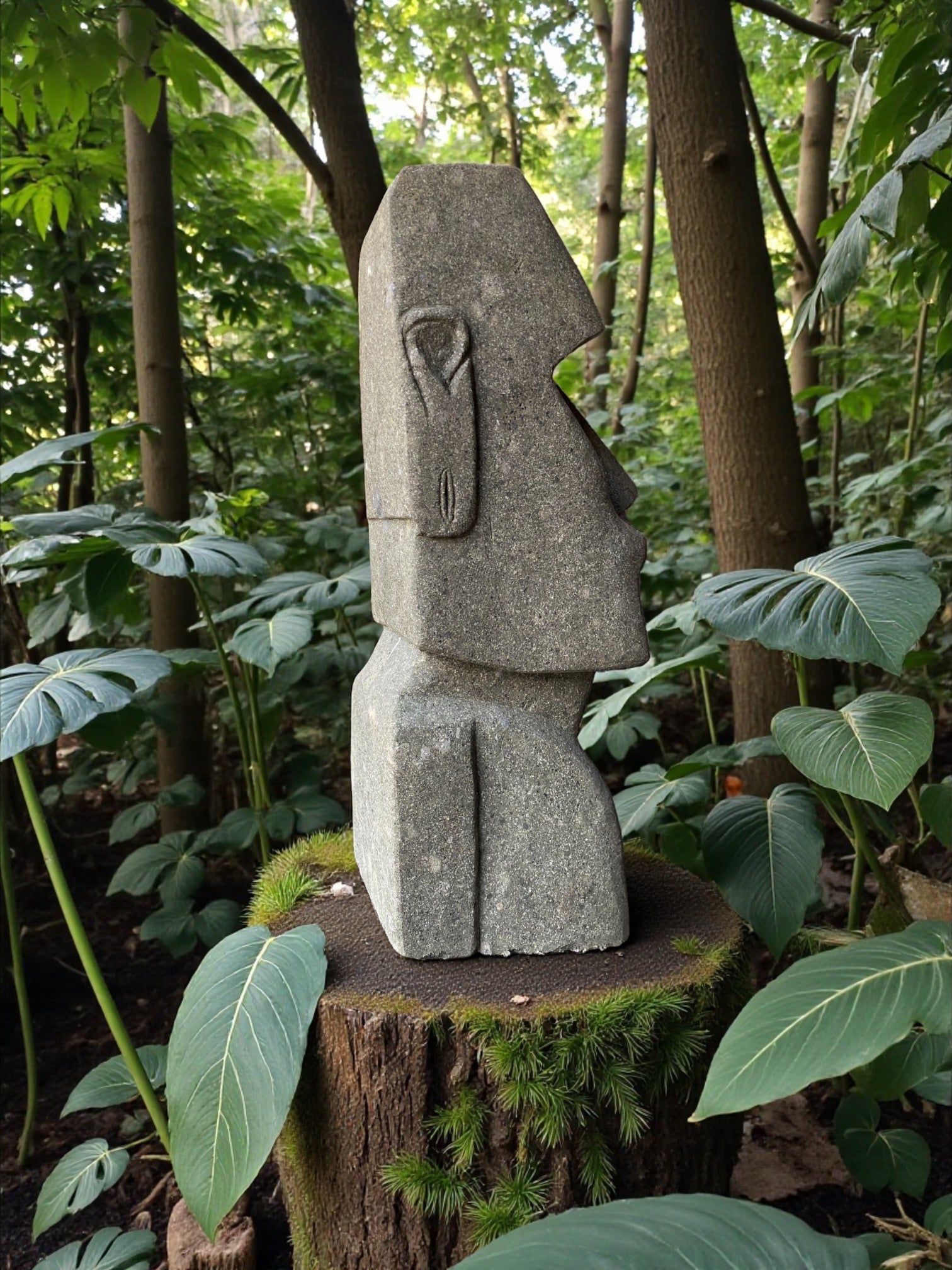 Hand carved Stone Easter Island Rapanui statue. Complement your garden with a hand carved Indonesian garden sculpture hand crafted from Indonesian greenstone. Easter Island is famous for its 887 extant monumental statues, called moai, created by the early Rapa Nui people. These look great with a night light mounted at the base of the statue facing upwards, creating shadows and ambience and compliments your outdoor furniture and garden landscaping.