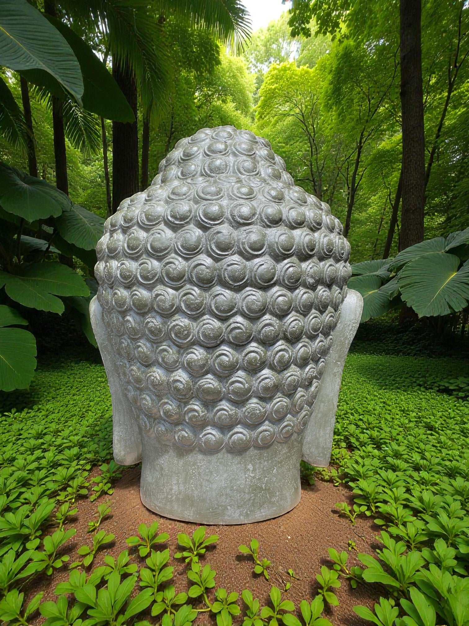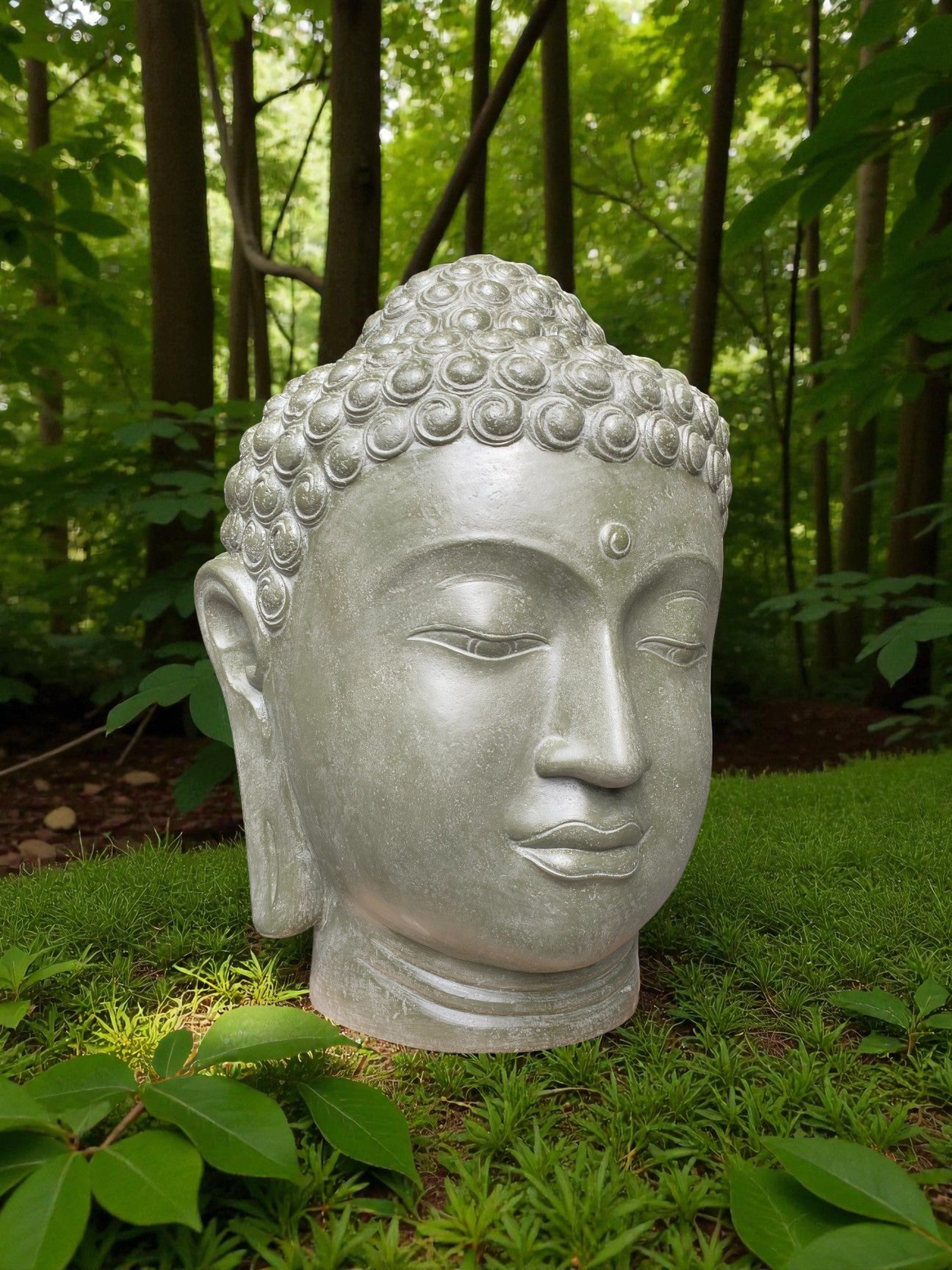 Buddha Head Statue. Make a statement & Complement your garden landscaping,  outdoor living, pool side or Garden Landscape Architecture with a beautiful buddha head. Add Solar Powered uplighting from the base to enhance your garden at night