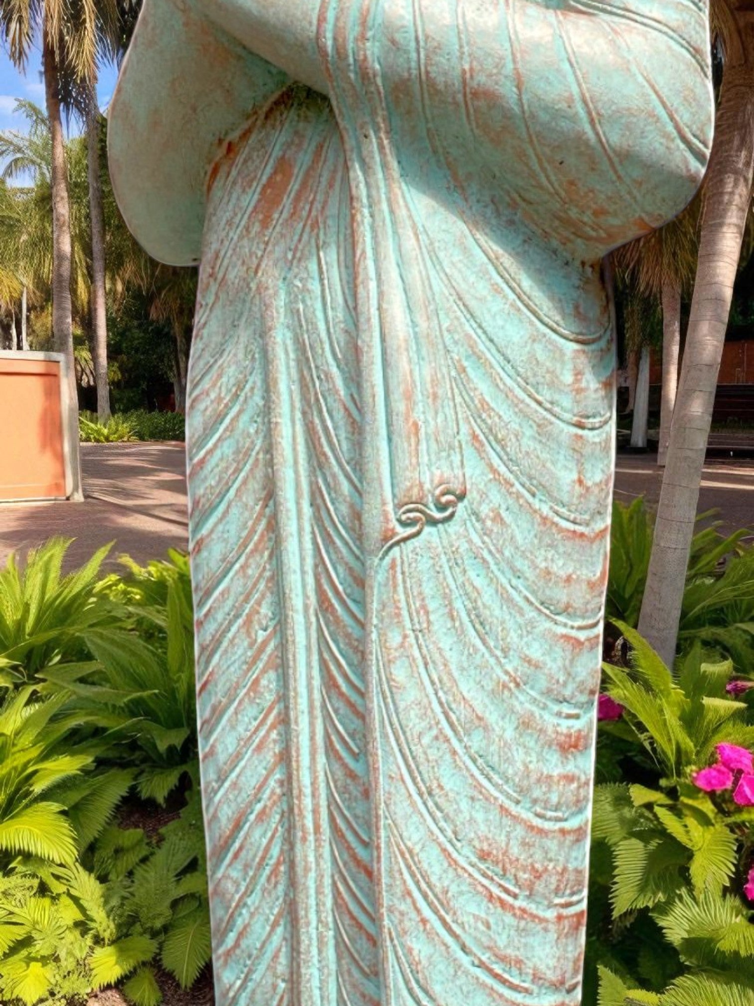 Each piece is meticulously finished by local artisans. This timeless statue brings a sense of peace and harmony to your outdoor setting. For added ambience, place a soft light at the base to highlight its contours and create a warm, tranquil glow at night.