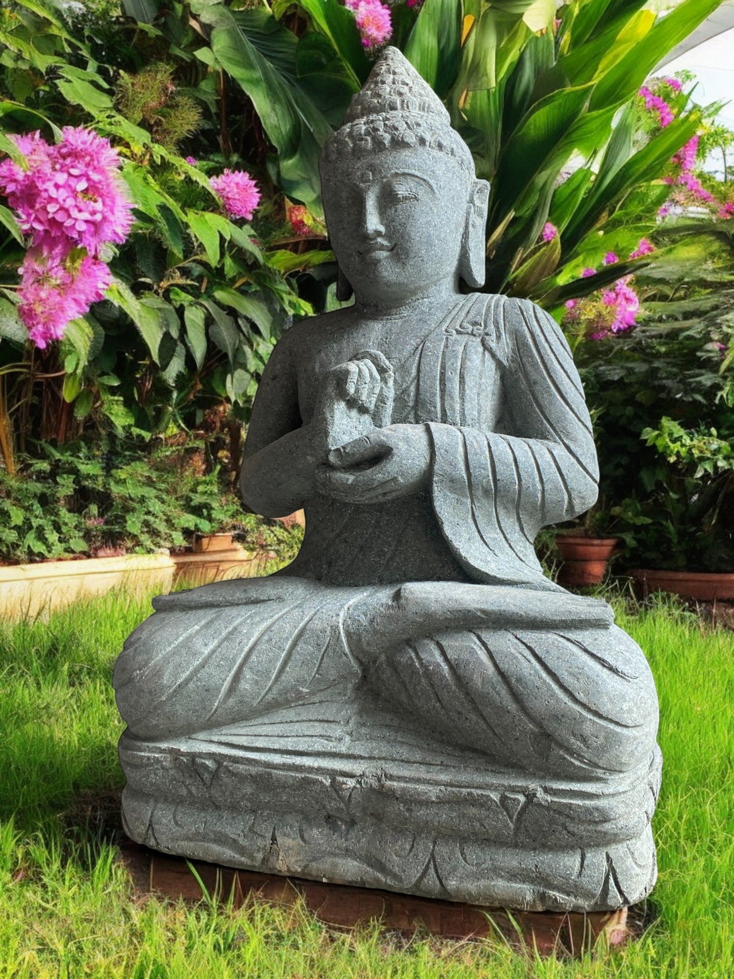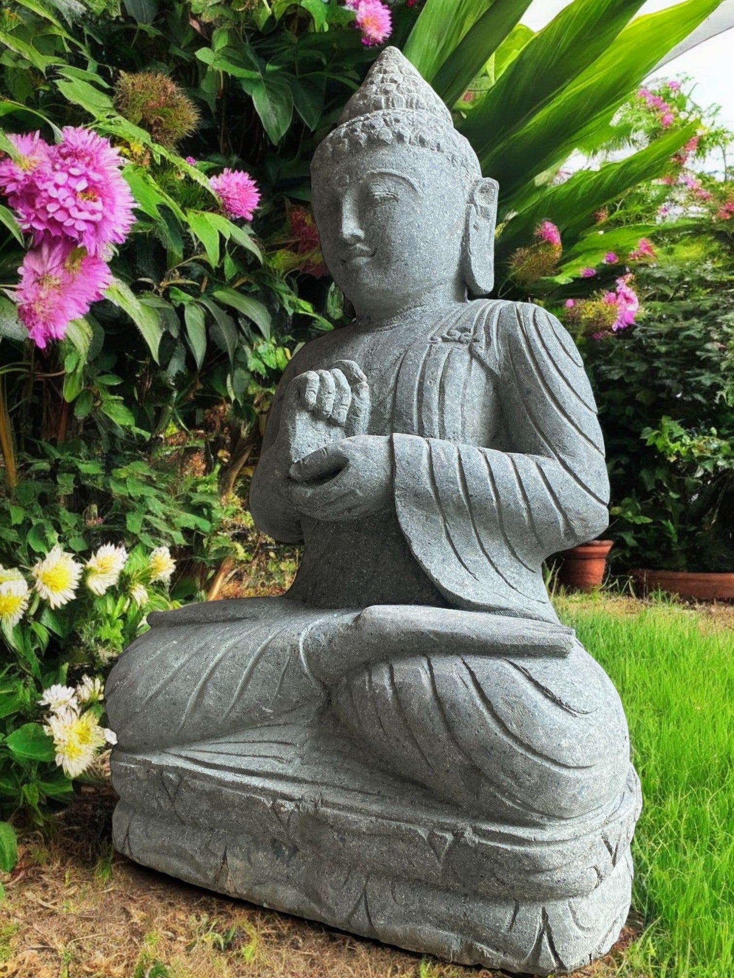 We have 1 Buddha Statue Teaching Carved Stone 800mm Stone Base (3056) in stock.