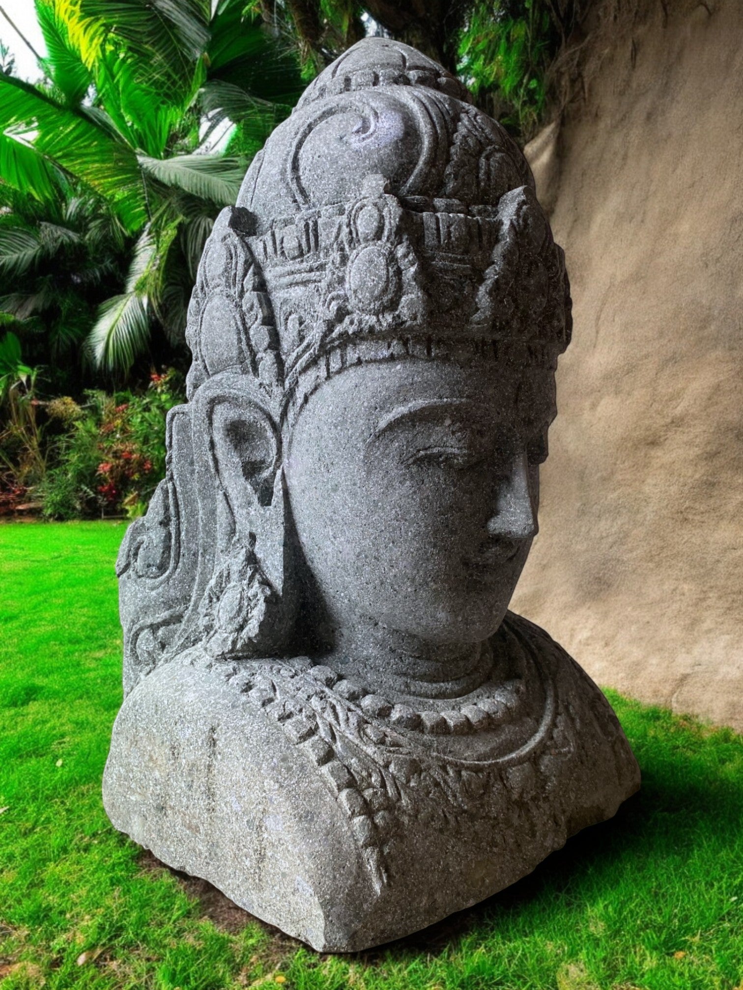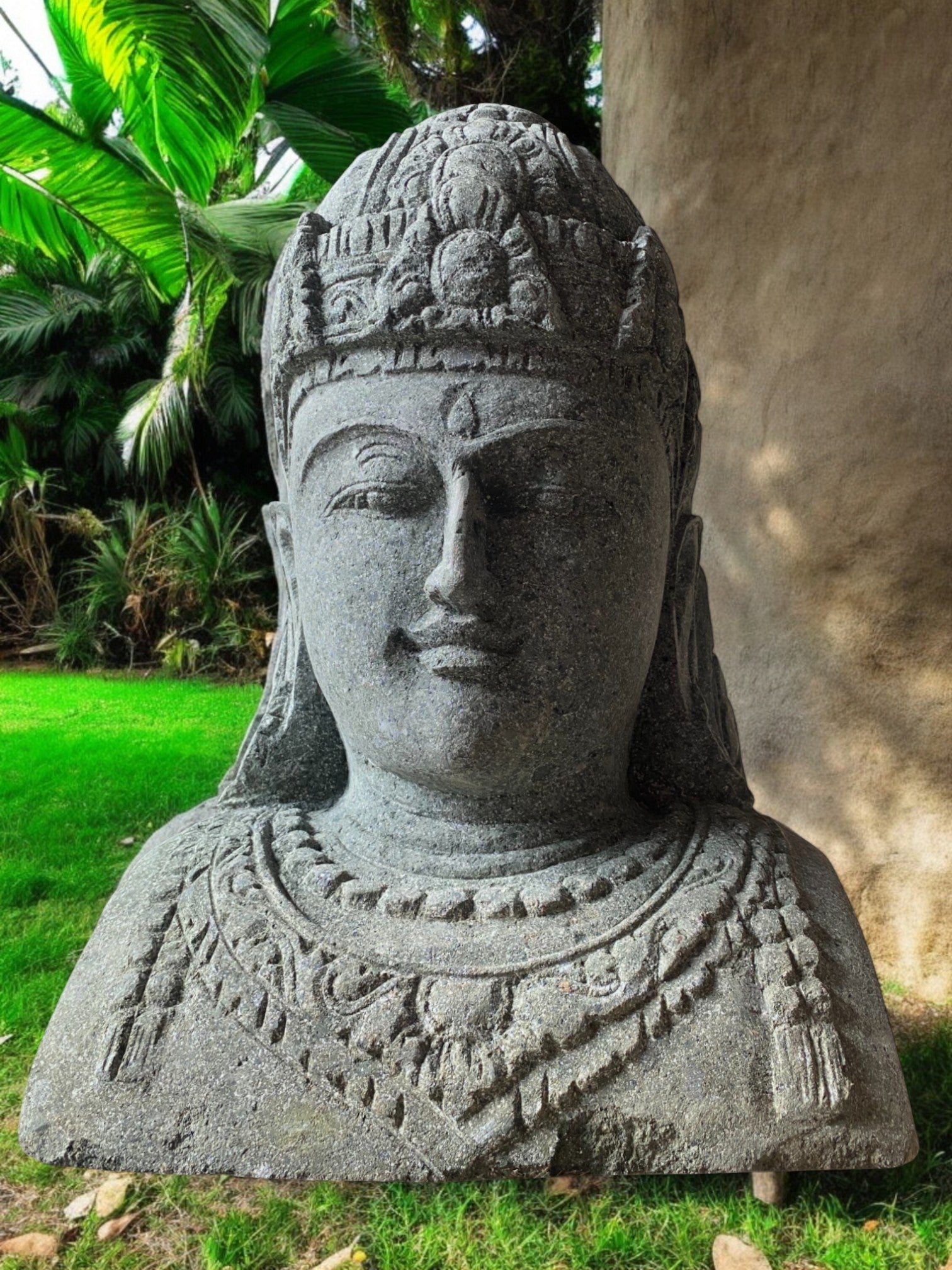 Hand carved Balinese Praying Buddha statue. Complement your garden landscaping and Outdoor Living with a fully carved from Indonesian Greenstone . Used by landscape architects for outdoor garden and landscaping projects. This is a hand carved Indonesian greenstone piece of art. These look great with a warm white night light mounted at the base of the statue facing upwards, creating shadows and ambience and compliments your outdoor furniture and garden landscaping. Upgrade your garden and landscaping and add value to your home and garden renovation.