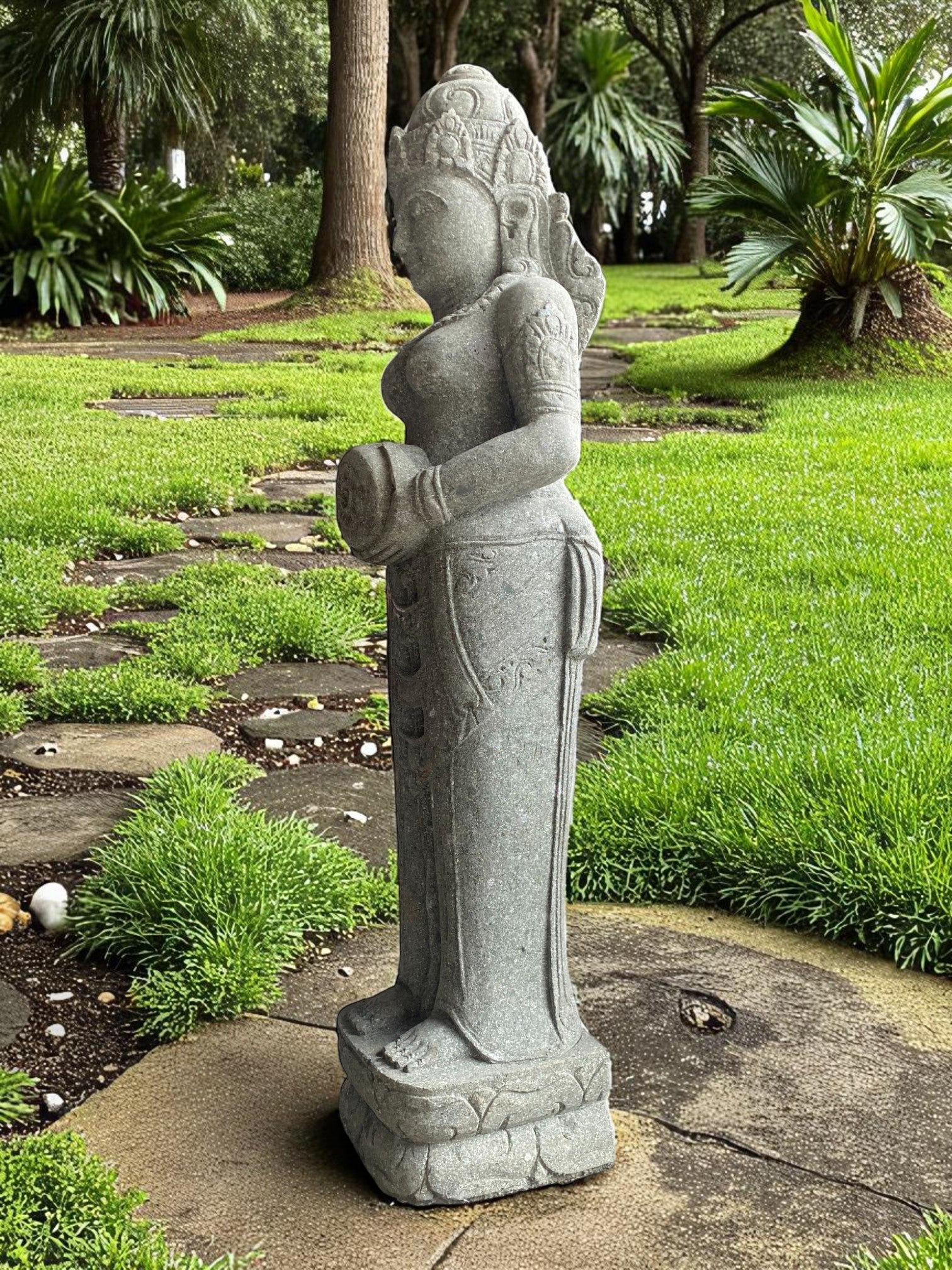 Hand carved Balinese Buddha statue Water feature.  Complement your garden landscaping and Outdoor Living with a fully carved from Indonesian Greenstone . Used by landscape architects for outdoor garden and landscaping projects such as fish ponds, entrance ways, swimming pools or as a stand alone feature statue. This is a hand carved Indonesian greenstone piece of art. These look great with a warm white night light mounted at the base of the statue facing upwards, creating shadows and ambience and compliments your outdoor furniture and garden landscaping. Upgrade your garden and landscaping and add value to your home and garden renovation.
