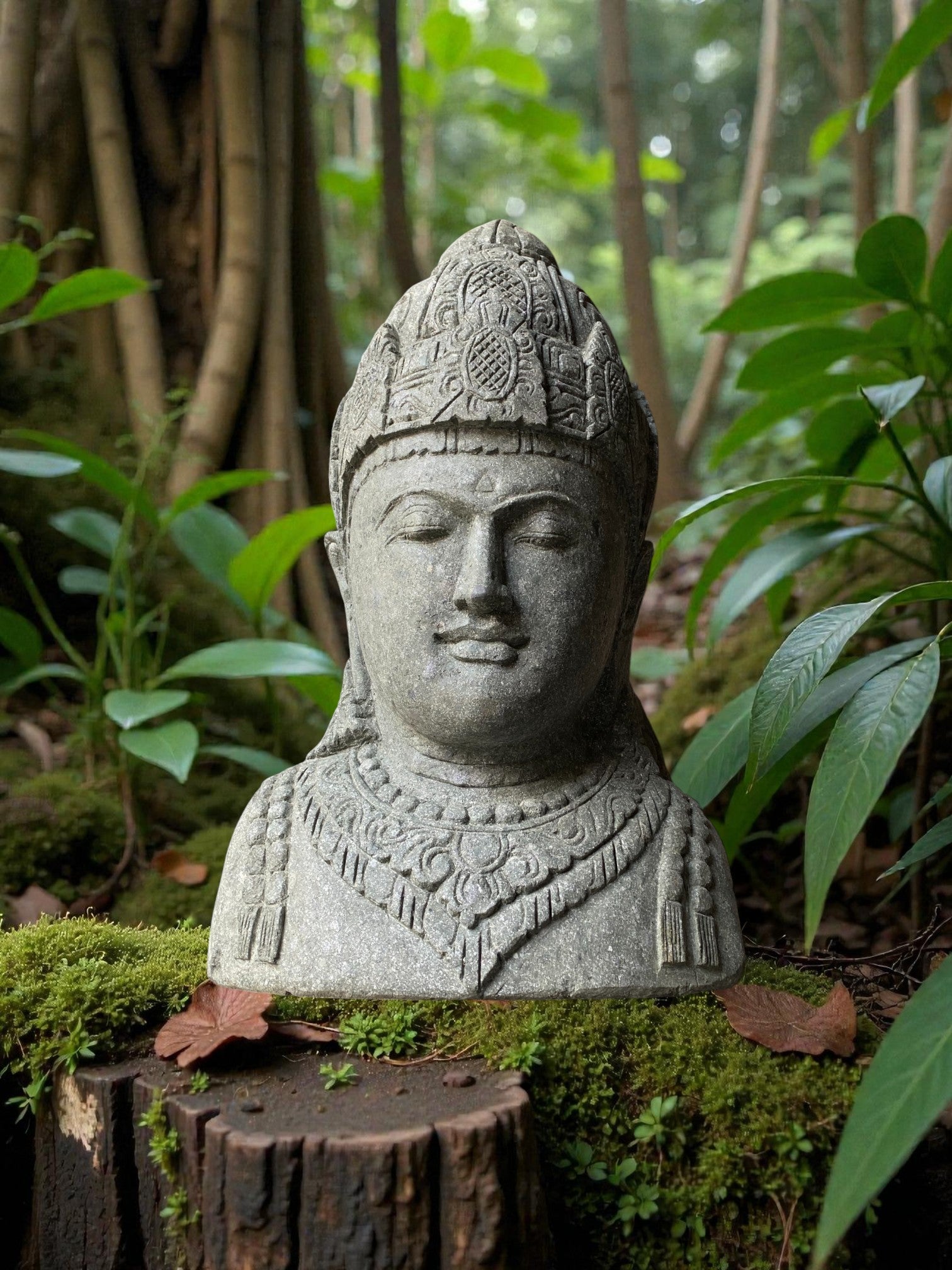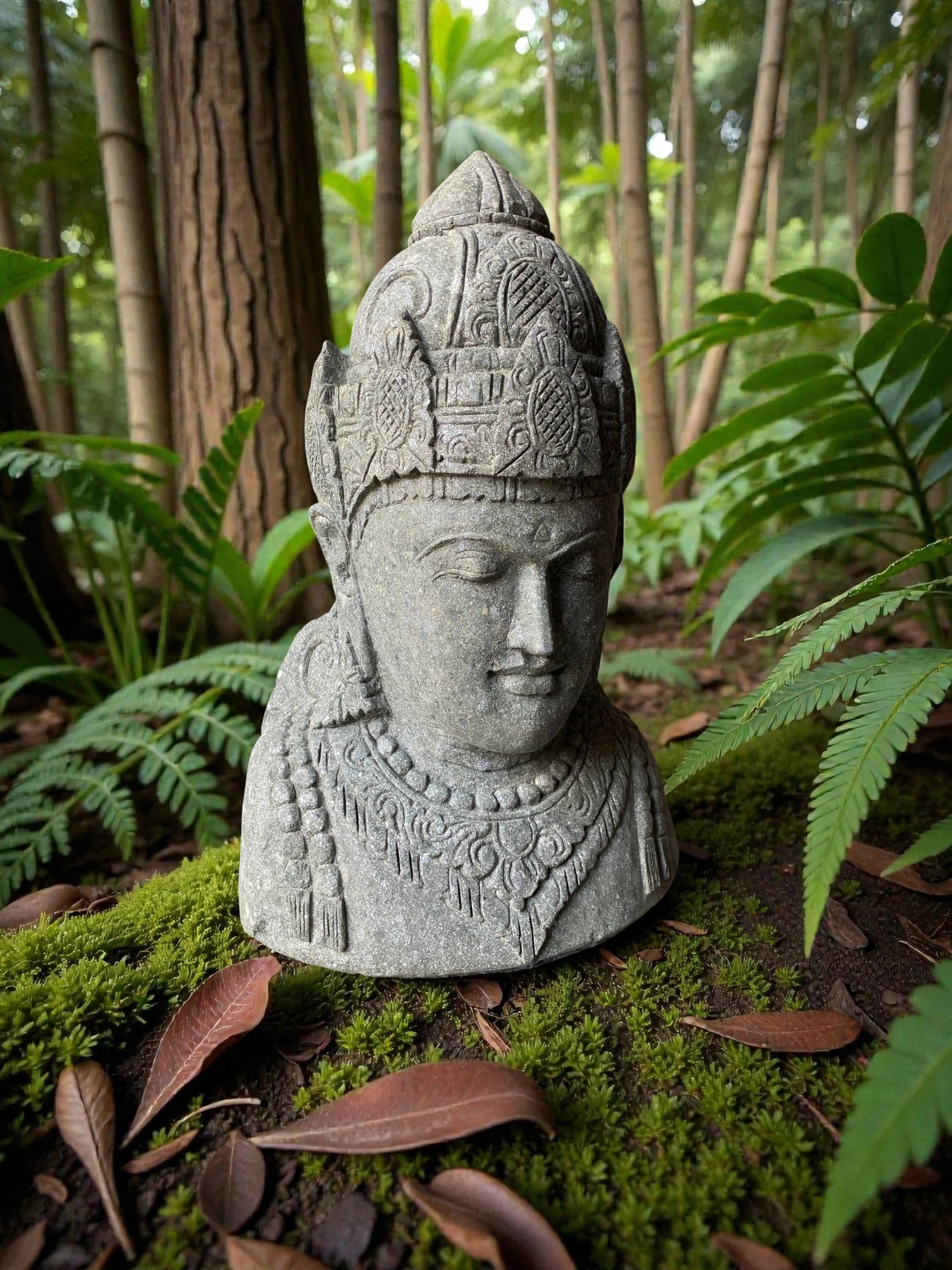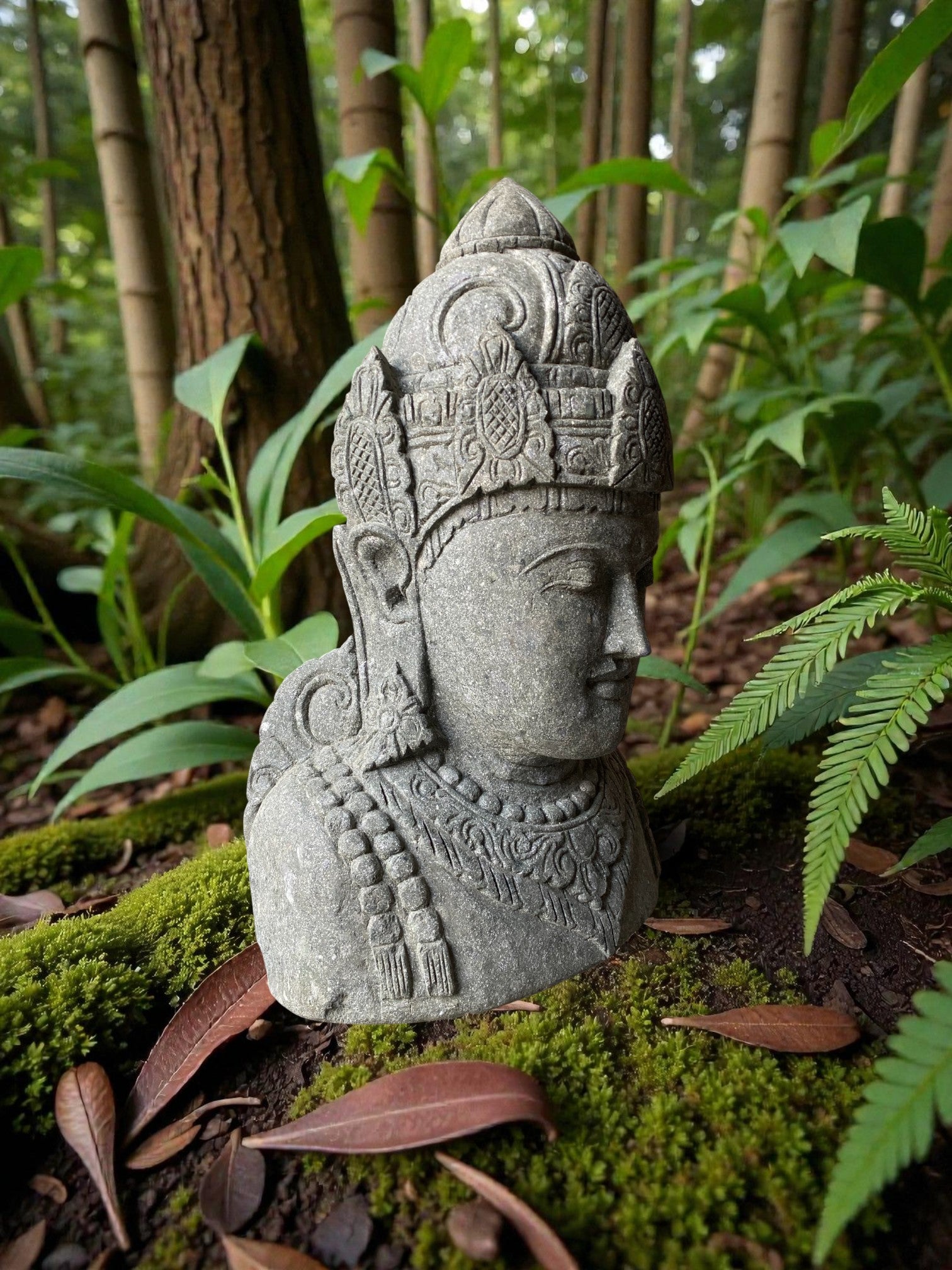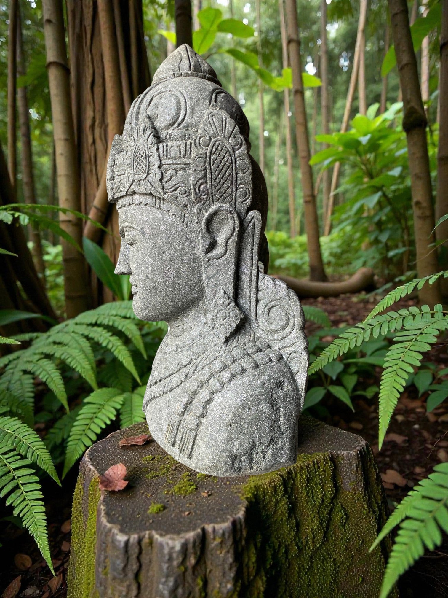 Hand carved Balinese Buddha statue. "Dewi Lakshmi" goddess of wealth, fortune & prosperity. Complement your garden landscaping and Outdoor Living with a fully carved from Indonesian Greenstone . Used by landscape architects for outdoor garden and landscaping projects. This is a hand carved Indonesian greenstone piece of art. These look great with a warm white night light mounted at the base of the statue facing upwards, creating shadows and ambience and compliments your outdoor furniture and garden landscaping. Upgrade your garden and landscaping and add value to your home and garden renovation.