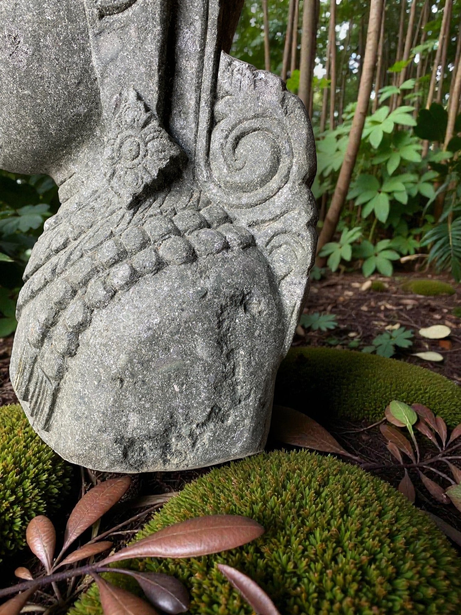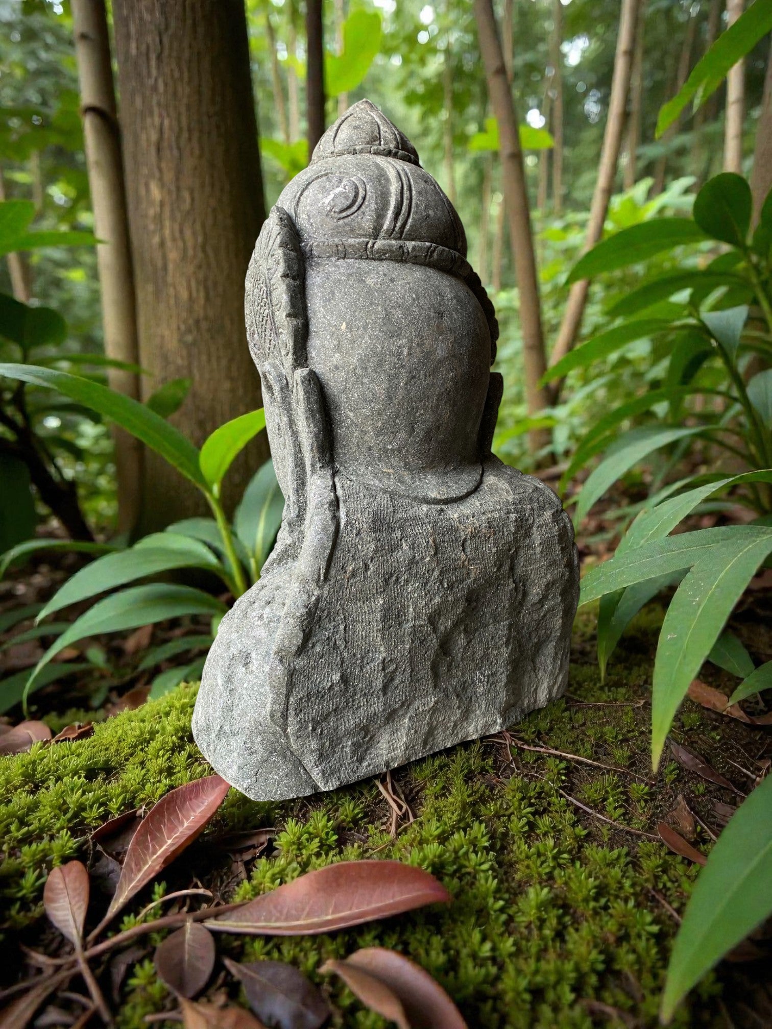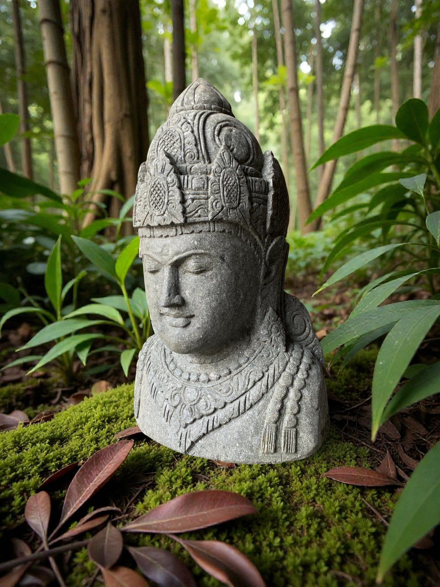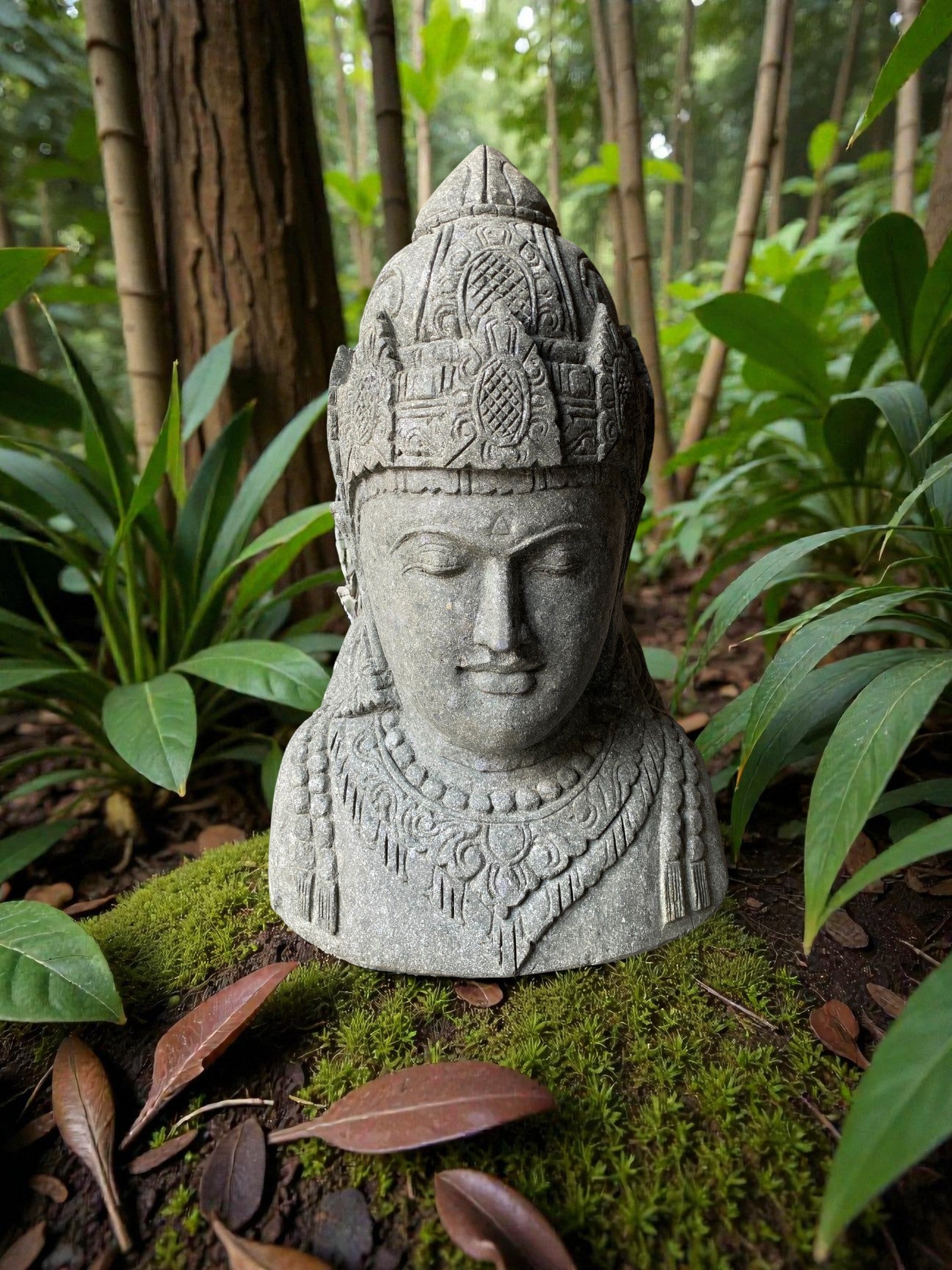 Hand carved Balinese Buddha statue. "Dewi Lakshmi" goddess of wealth, fortune & prosperity. Complement your garden landscaping and Outdoor Living with a fully carved from Indonesian Greenstone . Used by landscape architects for outdoor garden and landscaping projects. This is a hand carved Indonesian greenstone piece of art. These look great with a warm white night light mounted at the base of the statue facing upwards, creating shadows and ambience and compliments your outdoor furniture and garden landscaping. Upgrade your garden and landscaping and add value to your home and garden renovation.