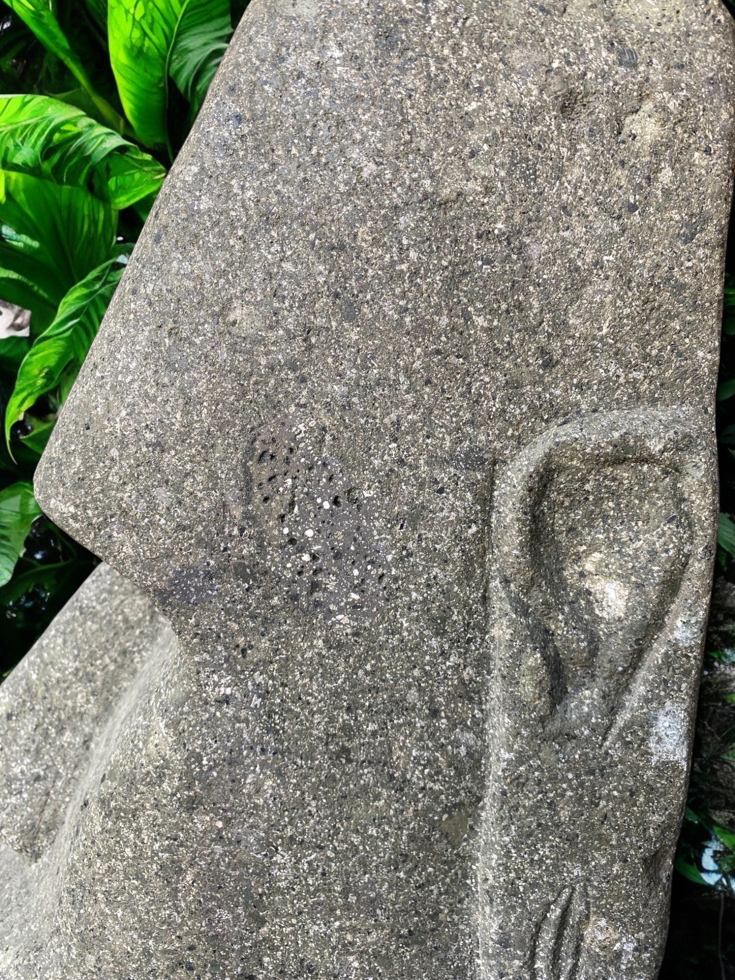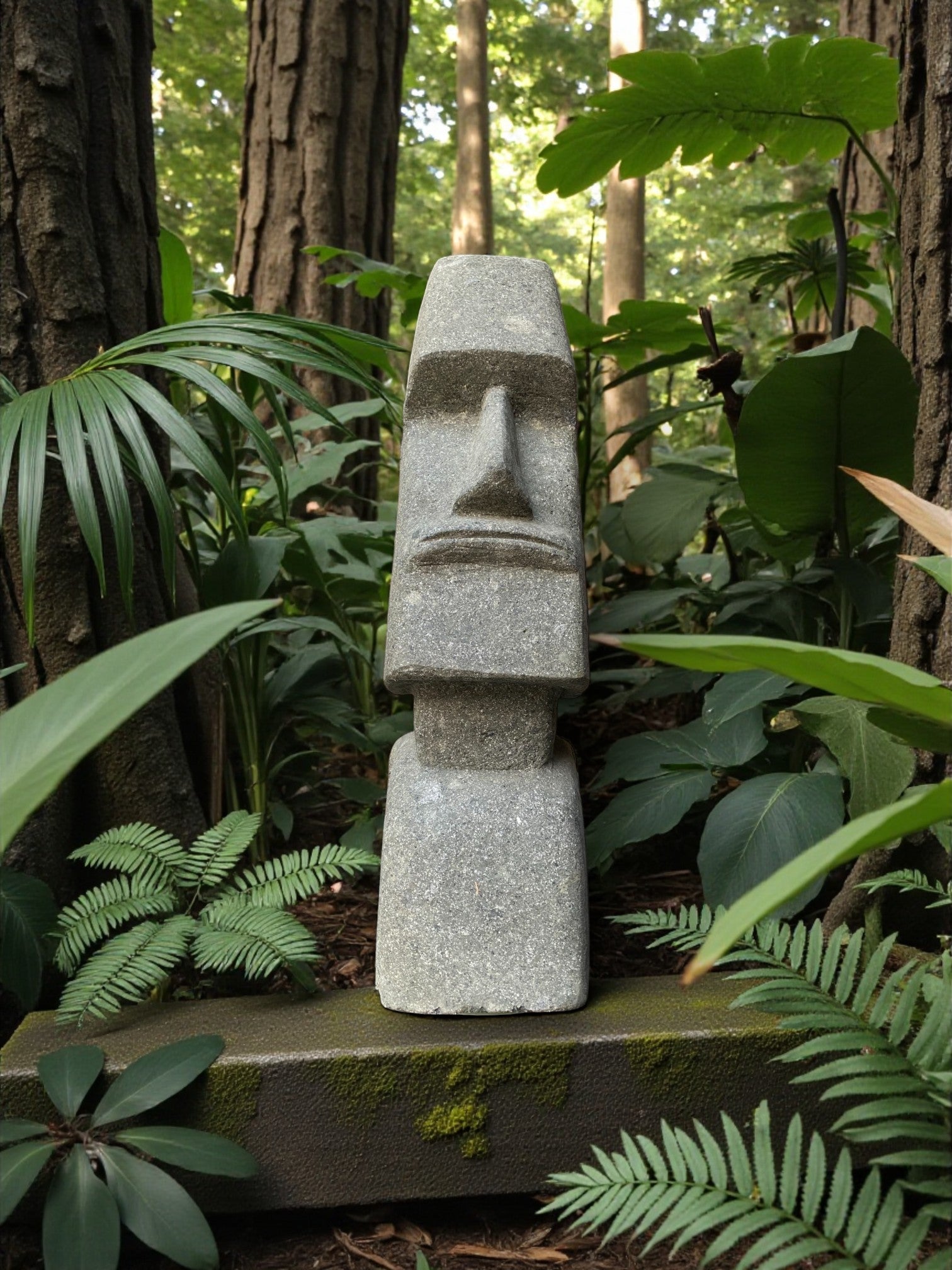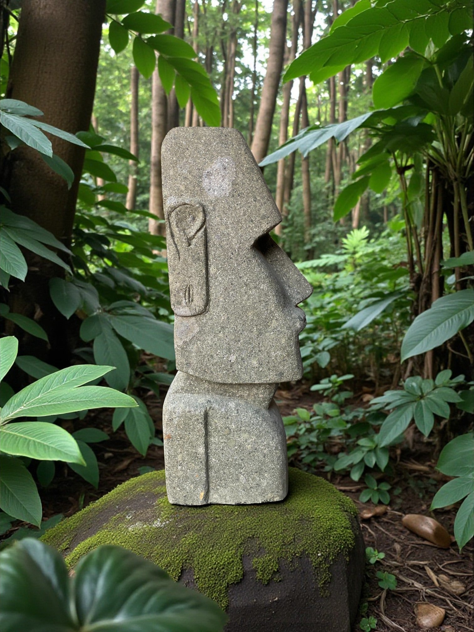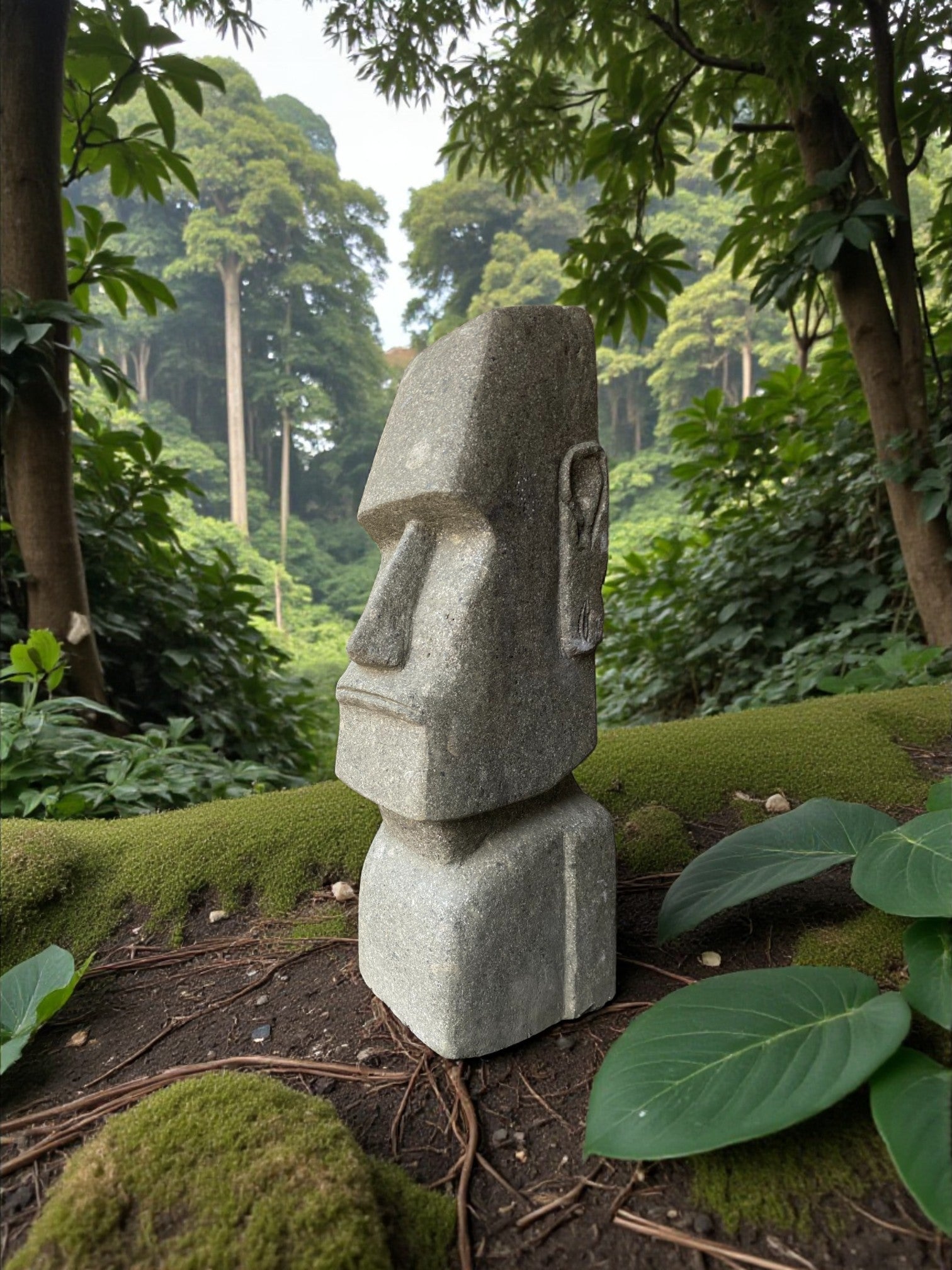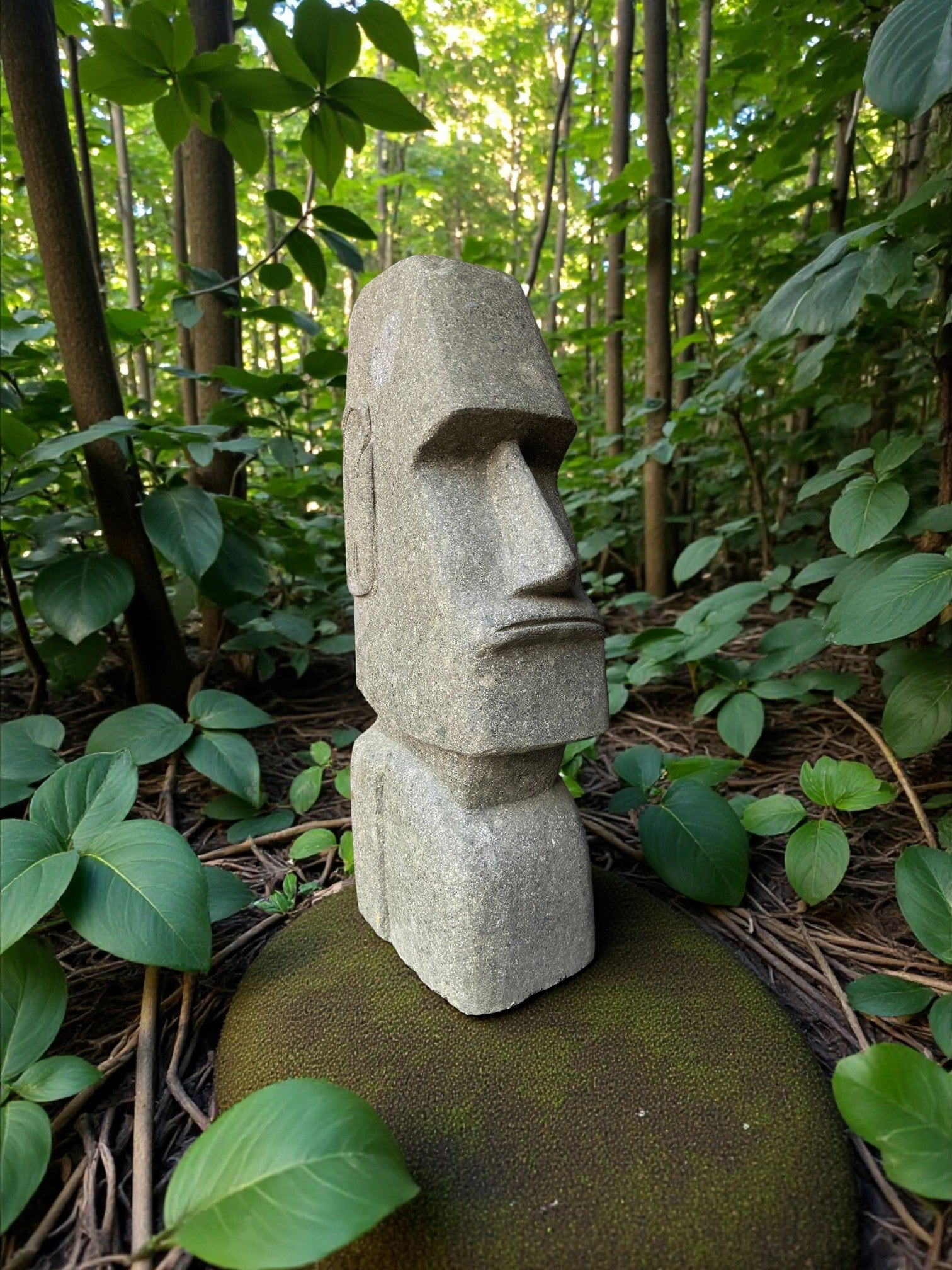 Hand carved Stone Easter Island Rapanui statue. Complement your garden with a hand carved Indonesian garden sculpture hand crafted from Indonesian greenstone. Easter Island is famous for its 887 extant monumental statues, called moai, created by the early Rapa Nui people. These look great with a night light mounted at the base of the statue facing upwards, creating shadows and ambience and compliments your outdoor furniture and garden landscaping.