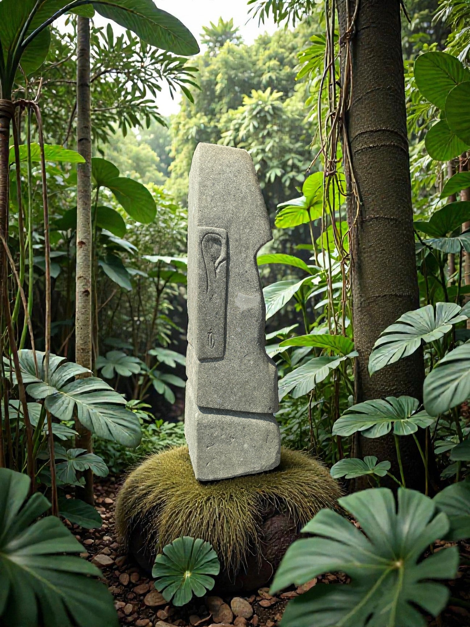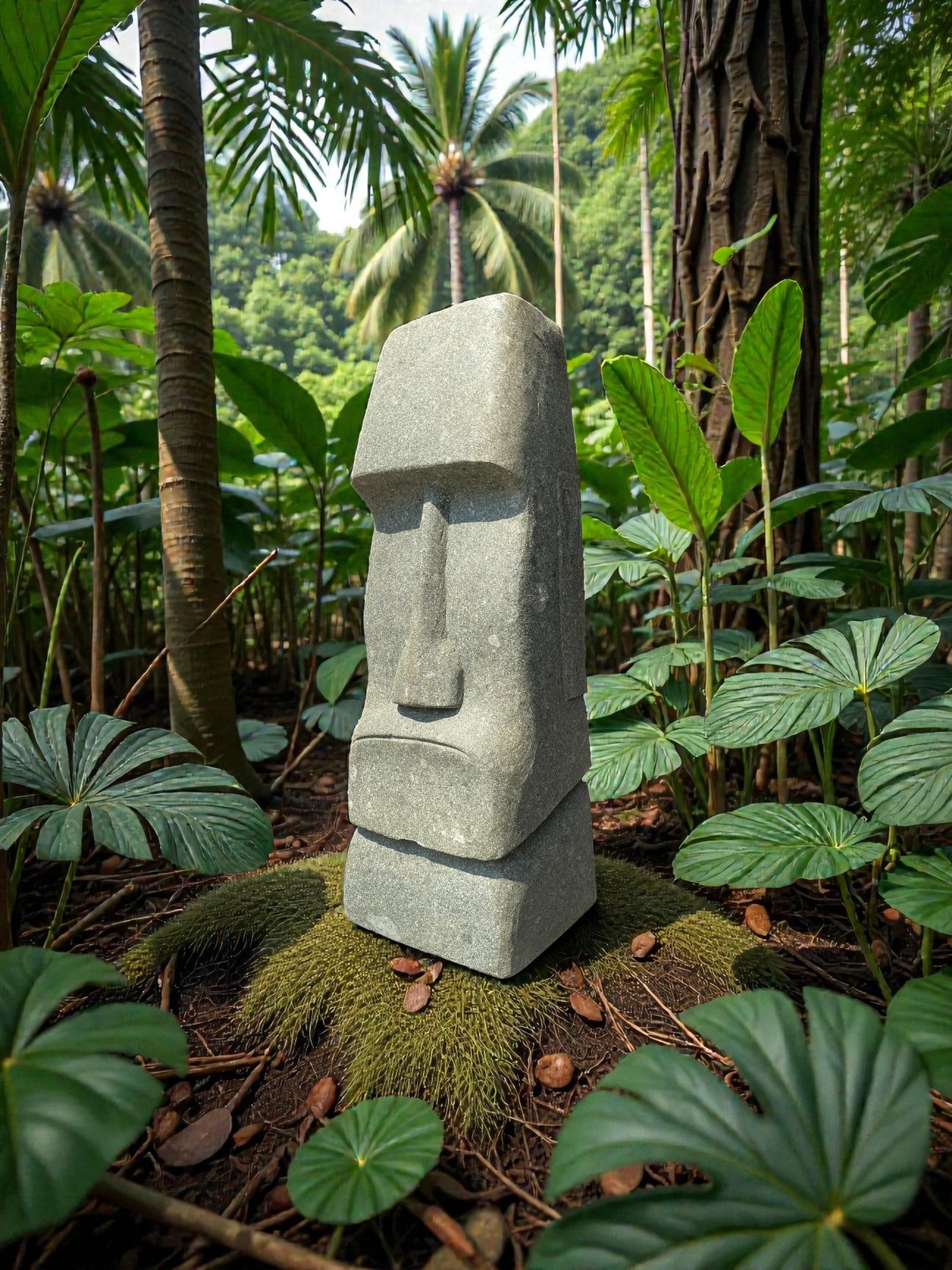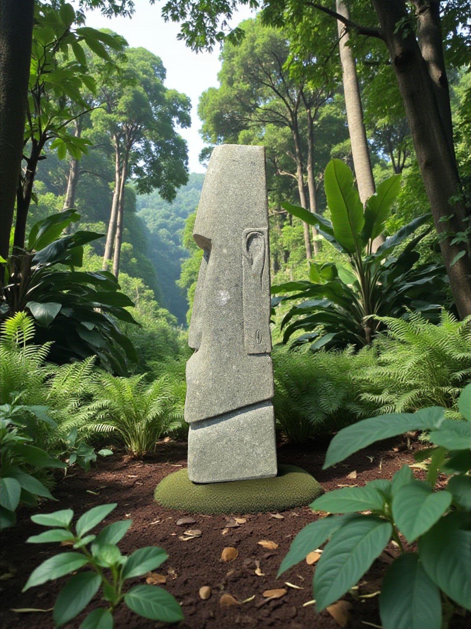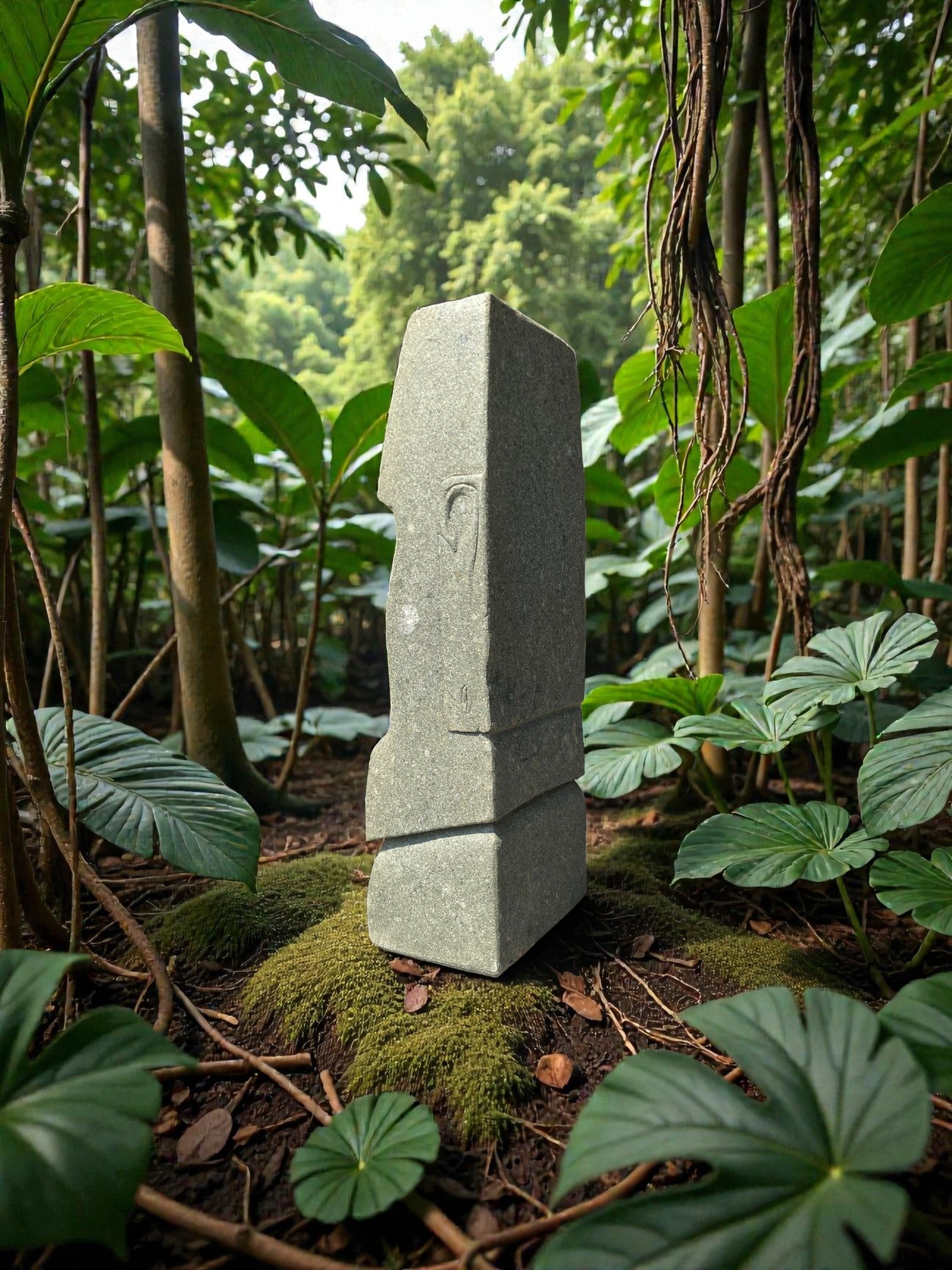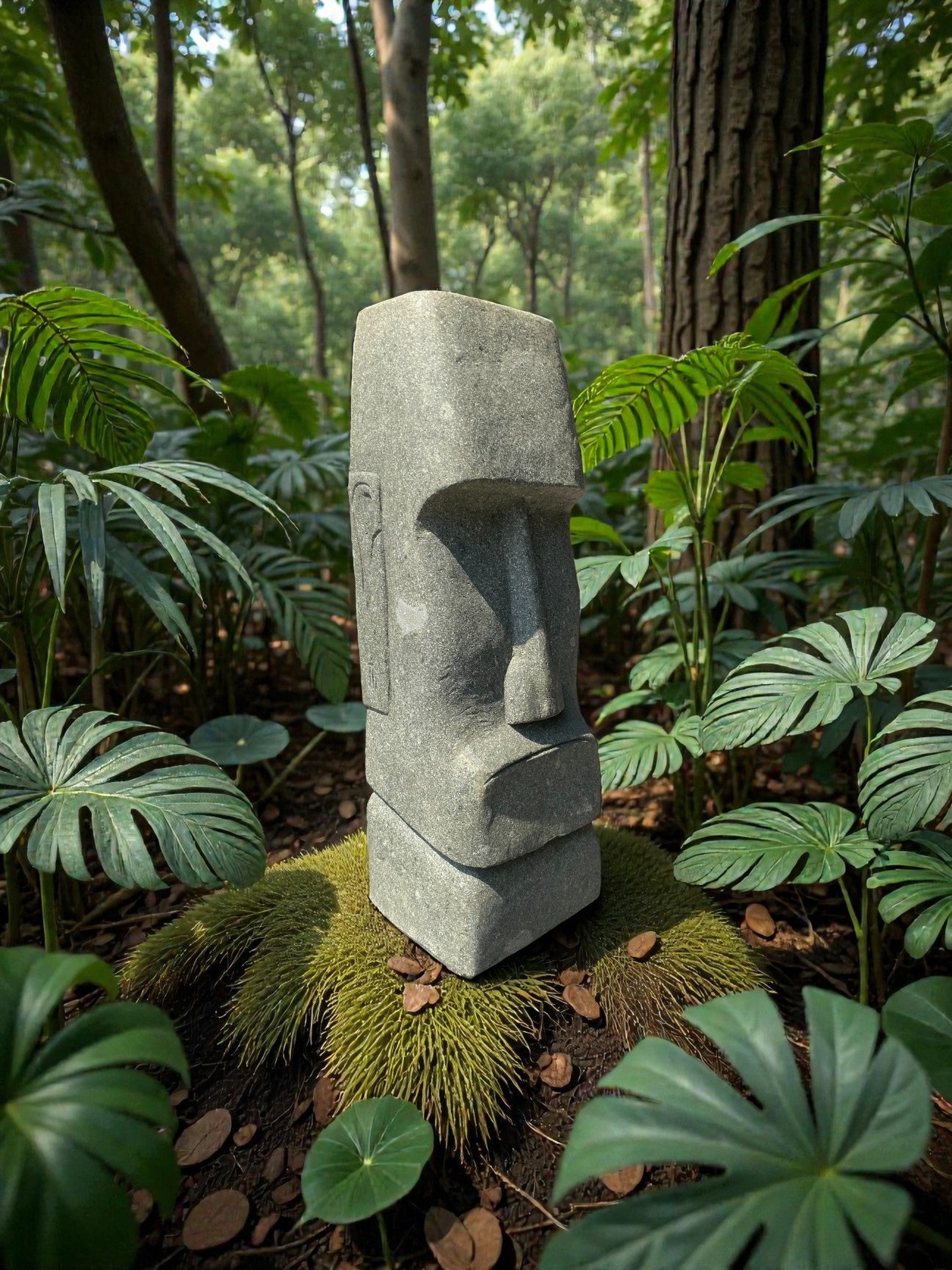 Hand carved Stone Easter Island Rapanui statue. Complement your garden with a hand carved Indonesian garden sculpture hand crafted from Indonesian greenstone. Easter Island is famous for its 887 extant monumental statues, called moai, created by the early Rapa Nui people. These look great with a night light mounted at the base of the statue facing upwards, creating shadows and ambience and compliments your outdoor furniture and garden landscaping.