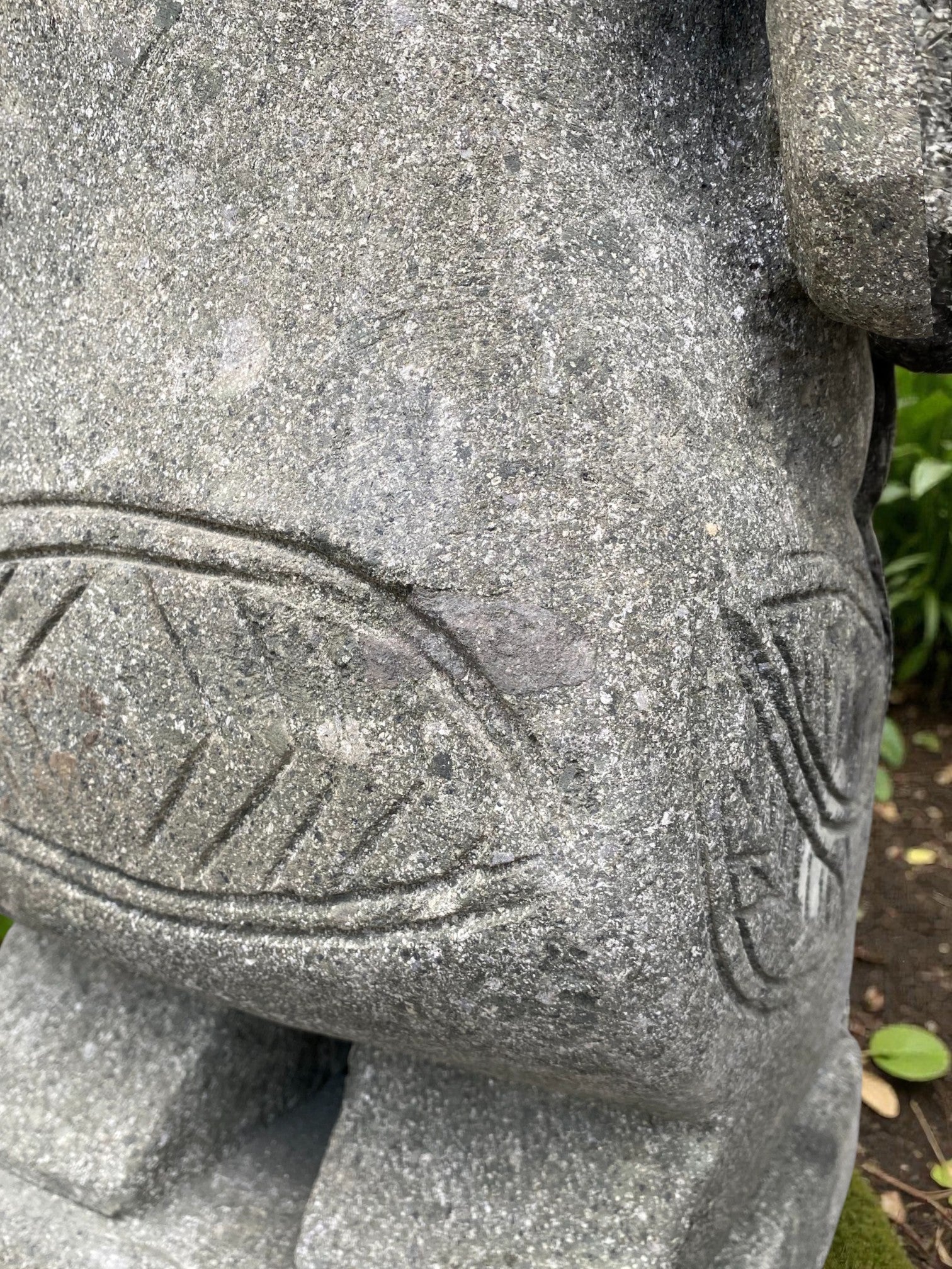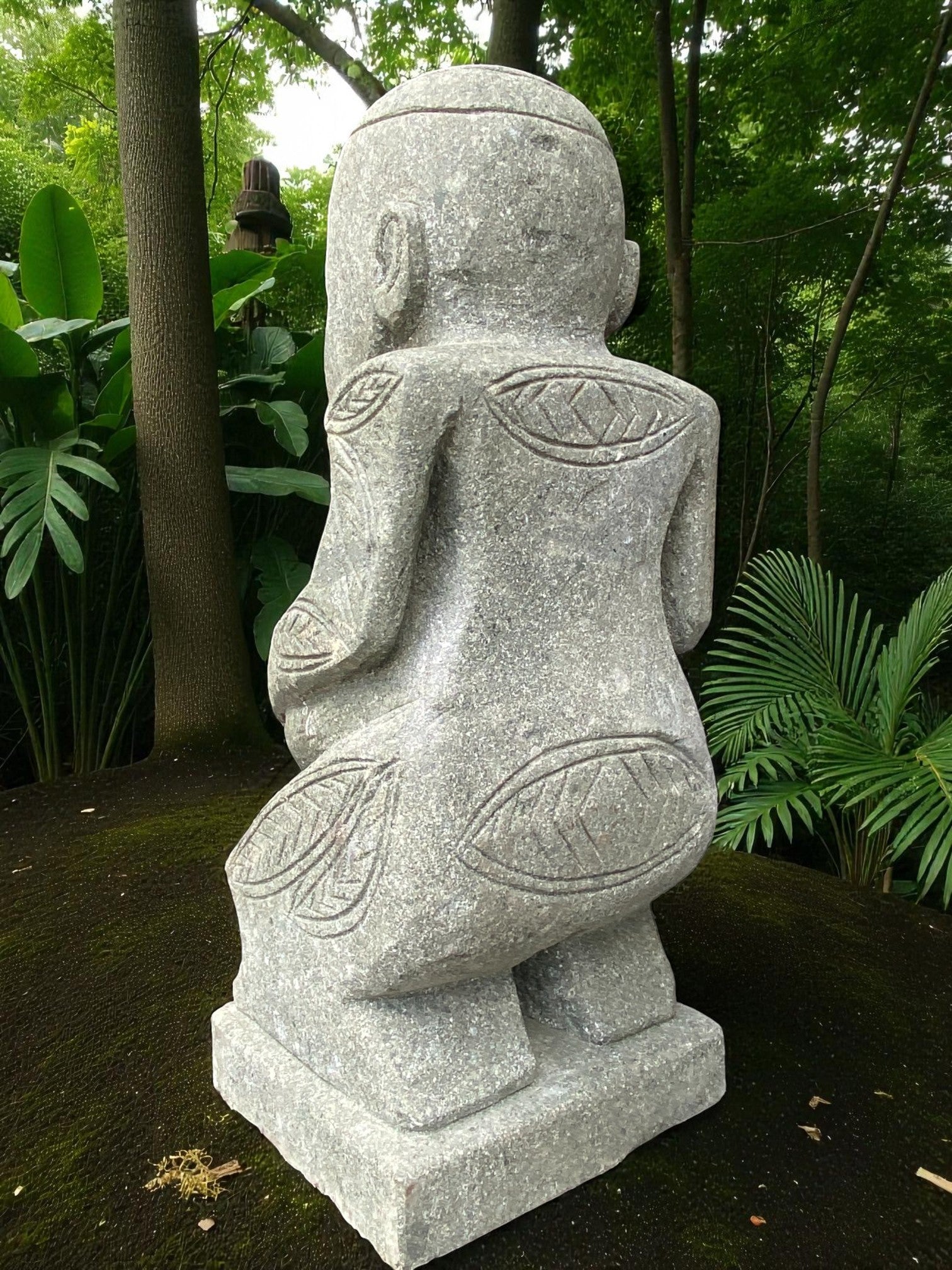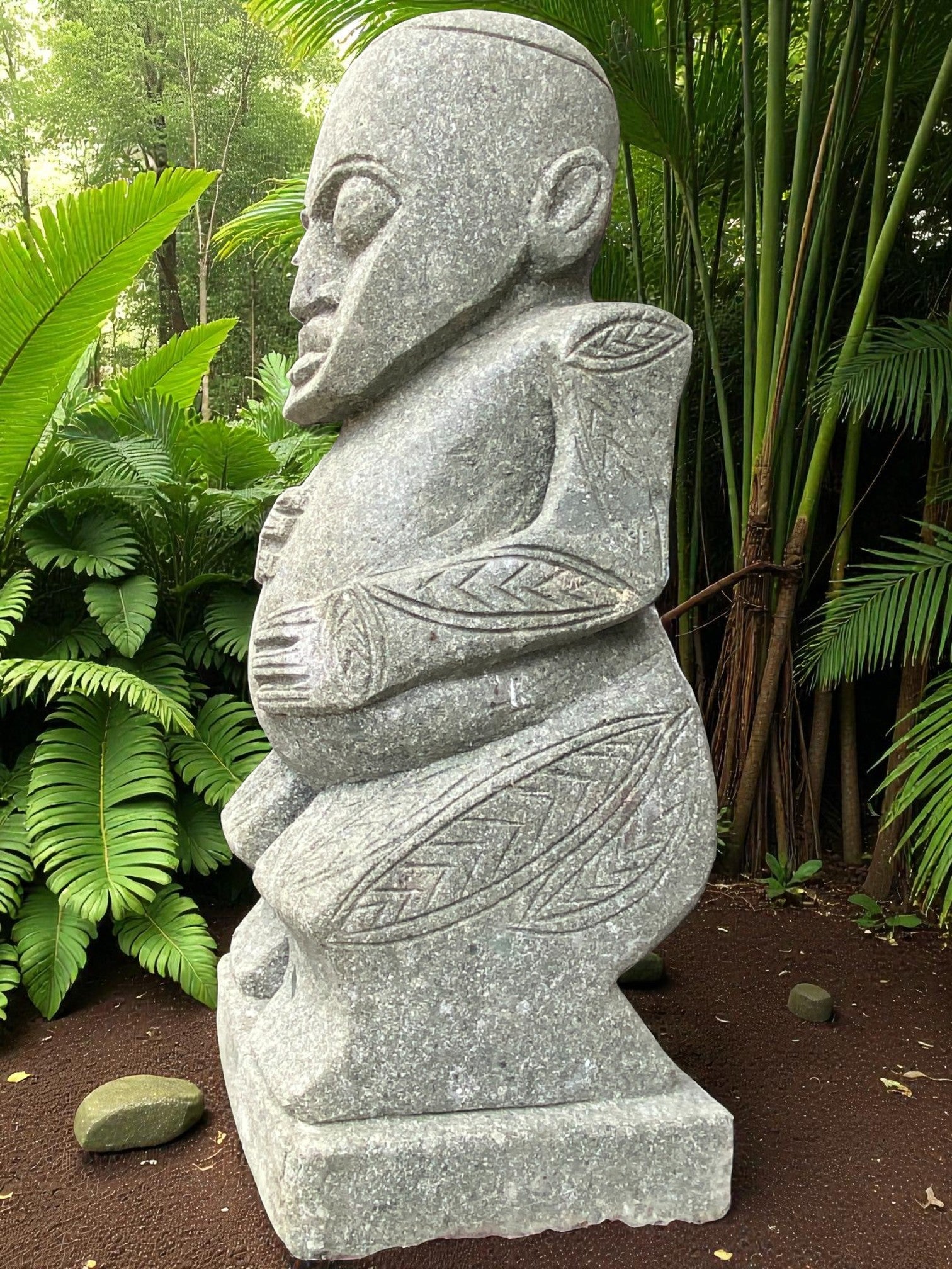 Our Outdoor Pacifica Primitive Sumba statue, Papua Statue,  Flores Statues and Sumba garden sculptures are hand carved from 100% natural Indonesian greenstone. Compliment your outdoor garden furniture, garden or swimming pool pond  or water feature with this 1 of a kind piece of garden landscaping art. Unlike other mass produced products made from harmful synthetics or reconstituted and engineered stone. One of our garden sculpture nz would suit to an entrance way, gate, garden landscaping, enhance to your Airbnb, Hotel or holiday home. Just add solar or powered up-lighting at the base to give an ambient feel in the evening. If you like NZ garden statues nz, then chances are you'll love this too, and will compliment other garden ornaments and metal garden art and will only age better with time.