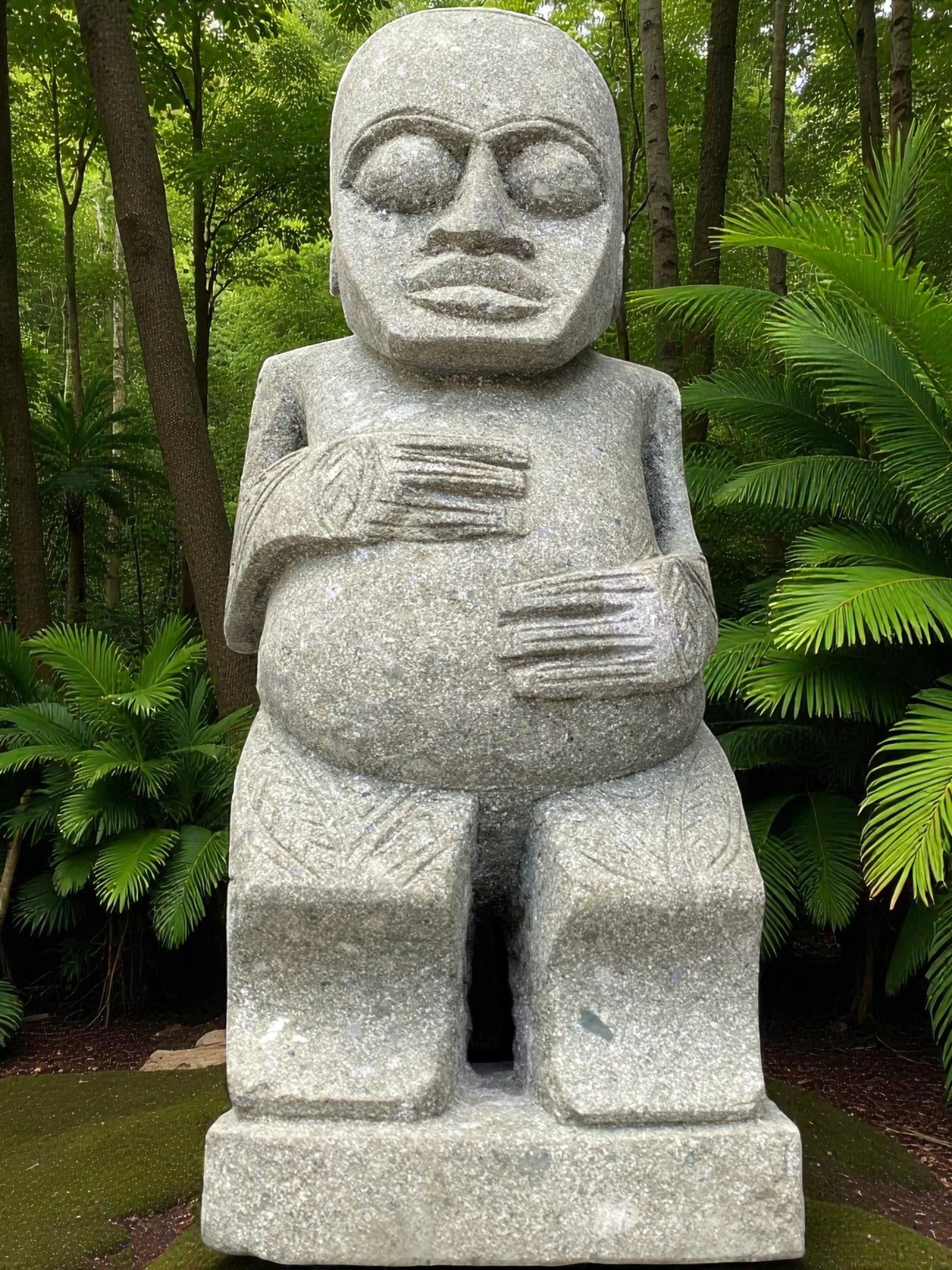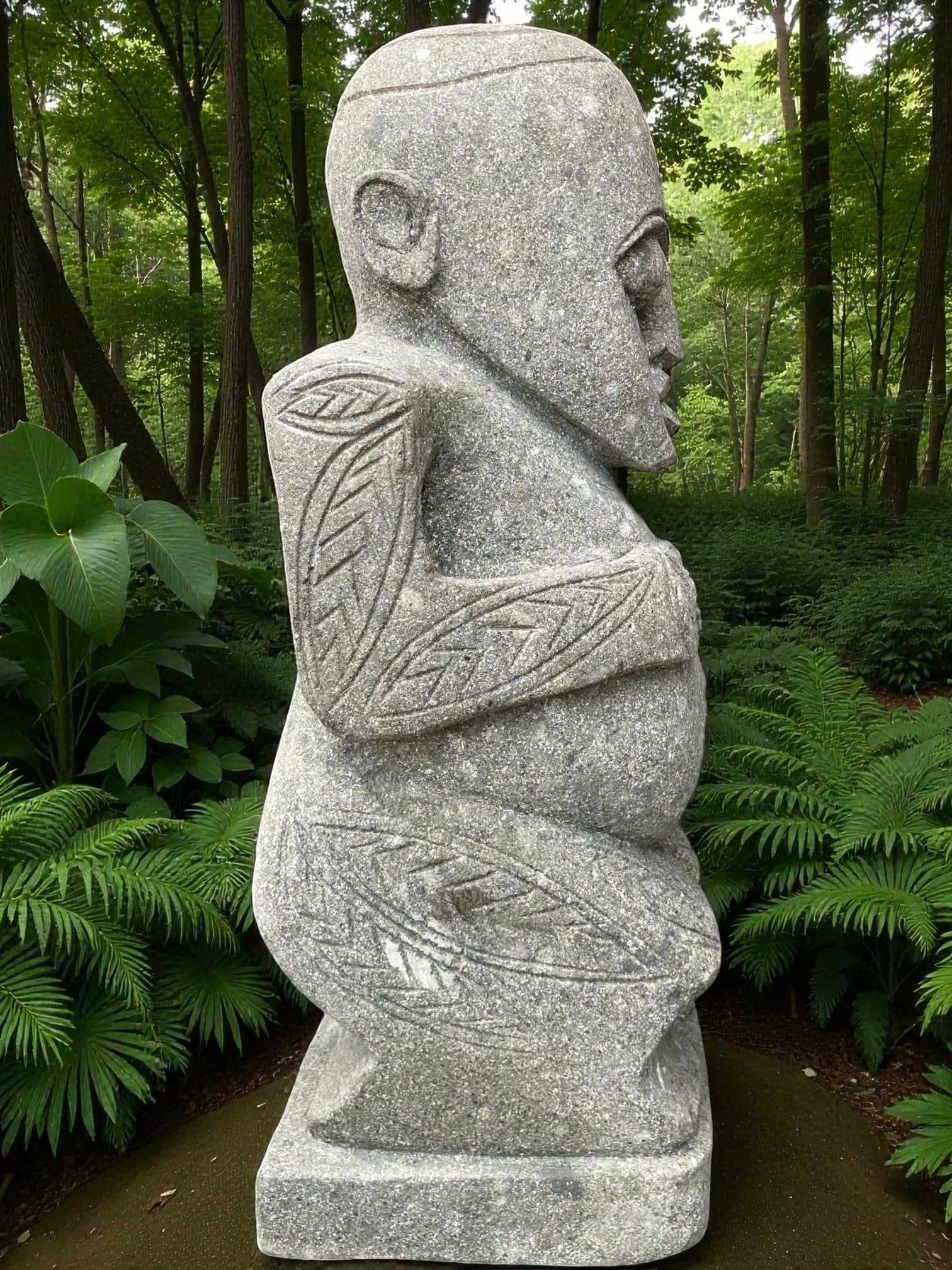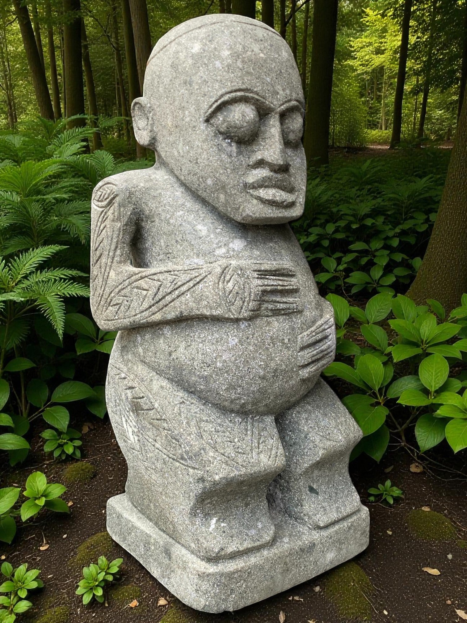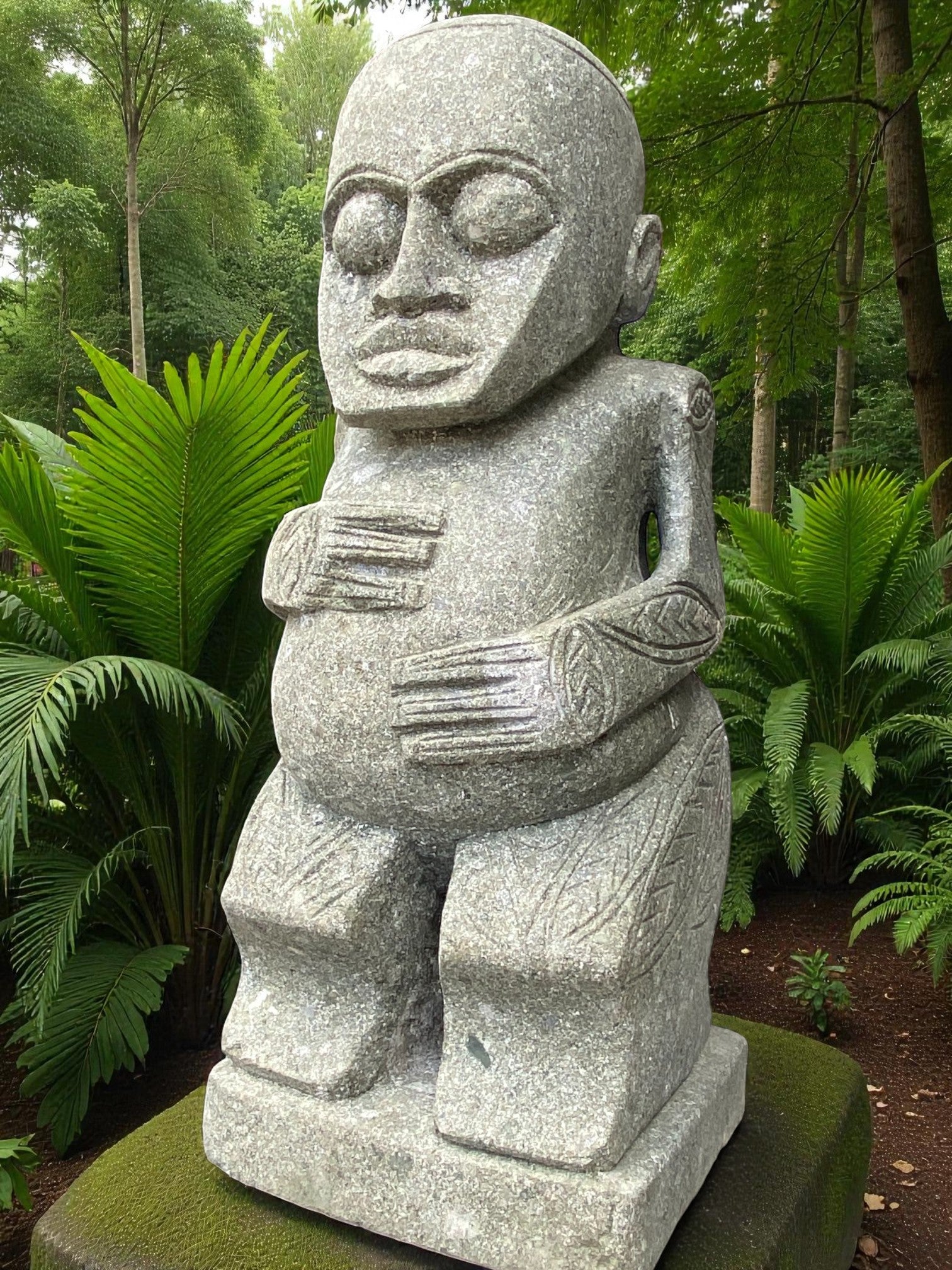 Our Outdoor Pacifica Primitive Sumba statue, Papua Statue,  Flores Statues and Sumba garden sculptures are hand carved from 100% natural Indonesian greenstone. Compliment your outdoor garden furniture, garden or swimming pool pond  or water feature with this 1 of a kind piece of garden landscaping art. Unlike other mass produced products made from harmful synthetics or reconstituted and engineered stone. One of our garden sculpture nz would suit to an entrance way, gate, garden landscaping, enhance to your Airbnb, Hotel or holiday home. Just add solar or powered up-lighting at the base to give an ambient feel in the evening. If you like NZ garden statues nz, then chances are you'll love this too, and will compliment other garden ornaments and metal garden art and will only age better with time.