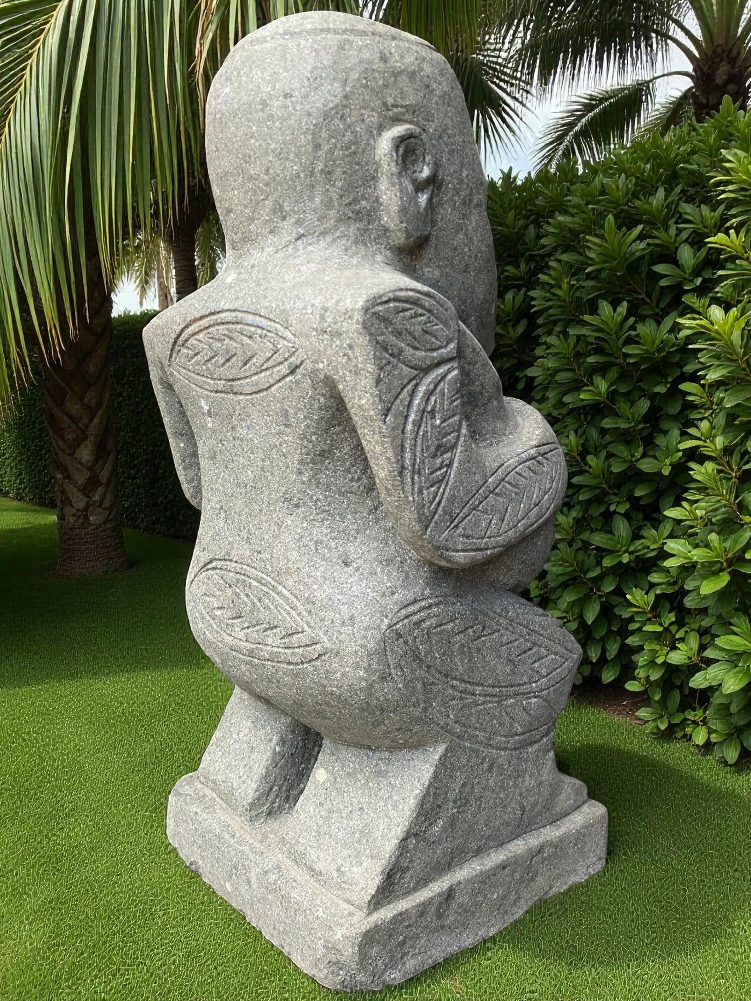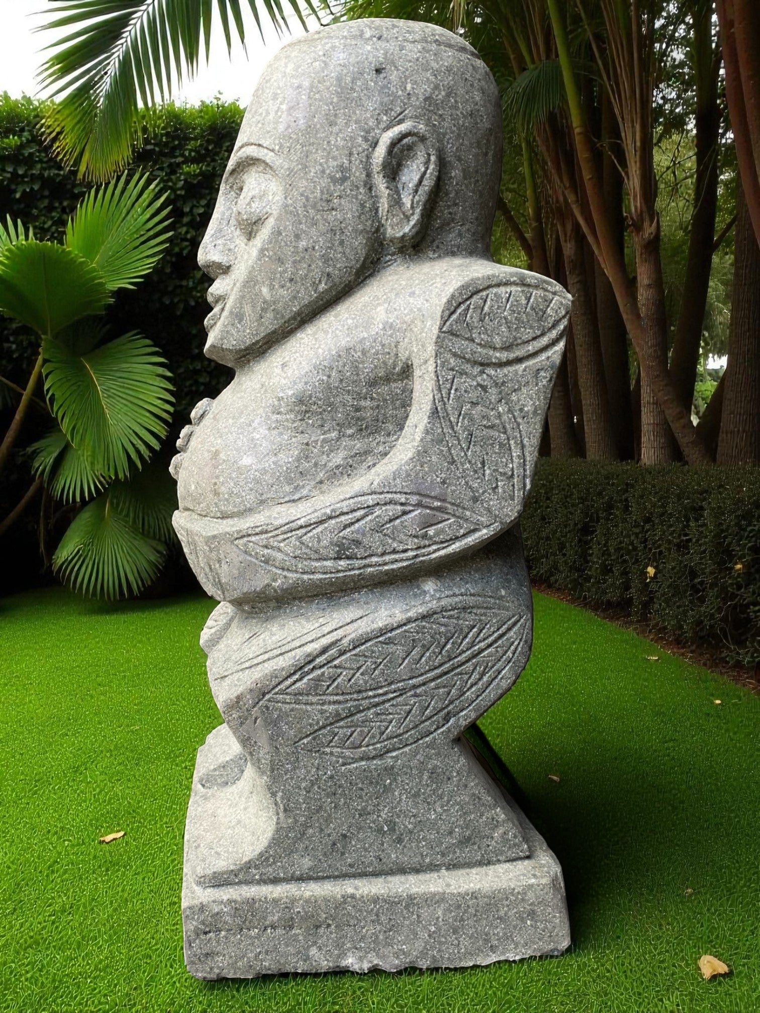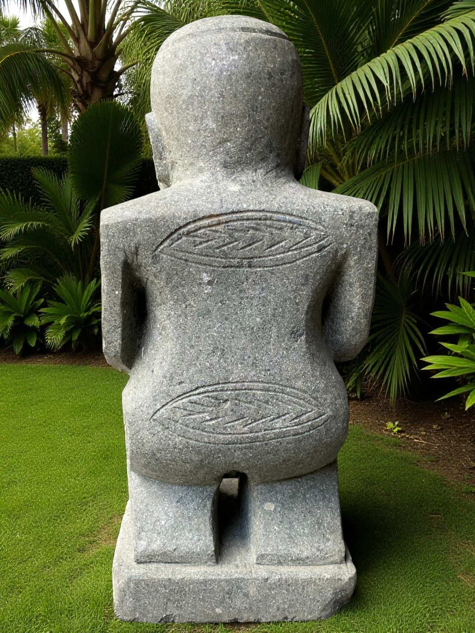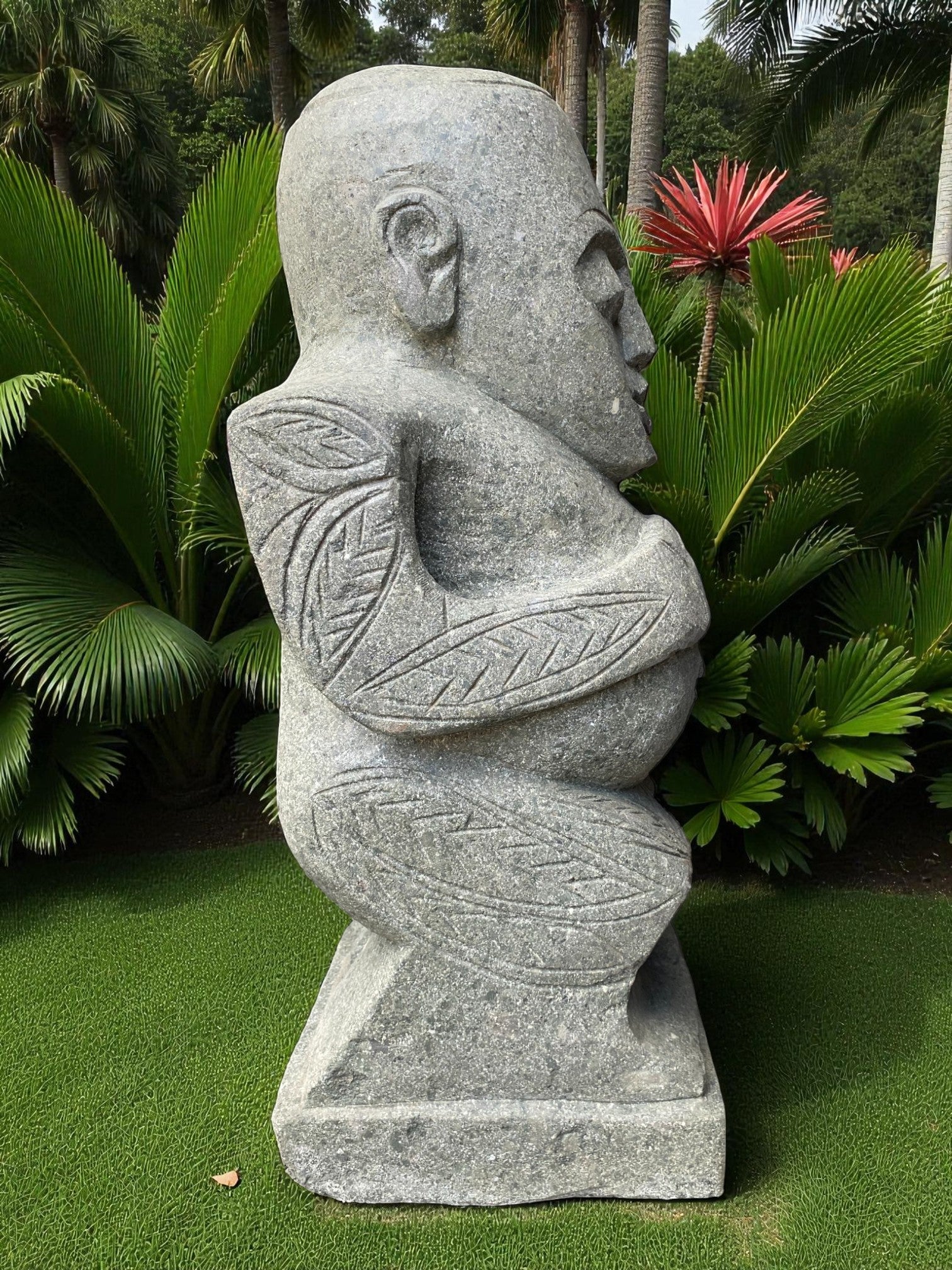 Our Outdoor Pacifica Primitive Sumba statue, Papua Statue, Flores Statues and Sumba garden sculptures are hand carved from 100% natural Indonesian greenstone. Compliment your outdoor garden furniture, garden or swimming pool pond or water feature with this 1 of a kind piece of garden landscaping art. Unlike other mass produced products made from harmful synthetics or reconstituted and engineered stone. One of our garden sculpture nz would suit to an entrance way, gate, garden landscaping, enhance to your Airbnb, Hotel or holiday home. Just add solar or powered up-lighting at the base to give an ambient feel in the evening. If you like NZ garden statues nz, then chances are you'll love this too, and will compliment other garden ornaments and metal garden art and will only age better with time.