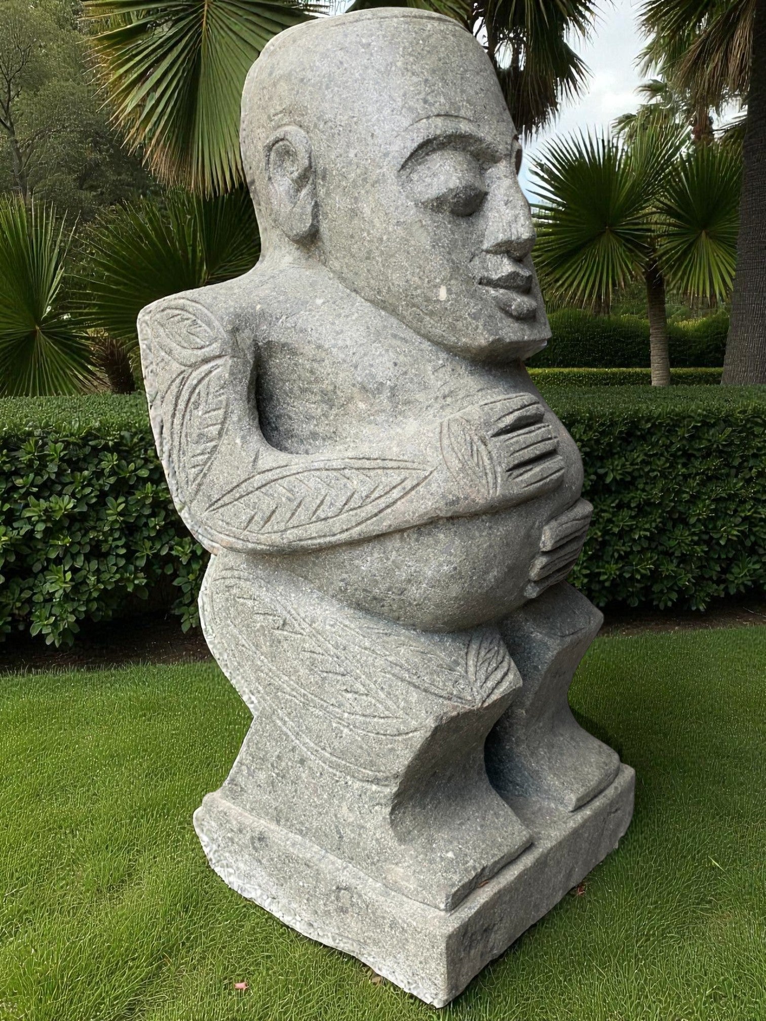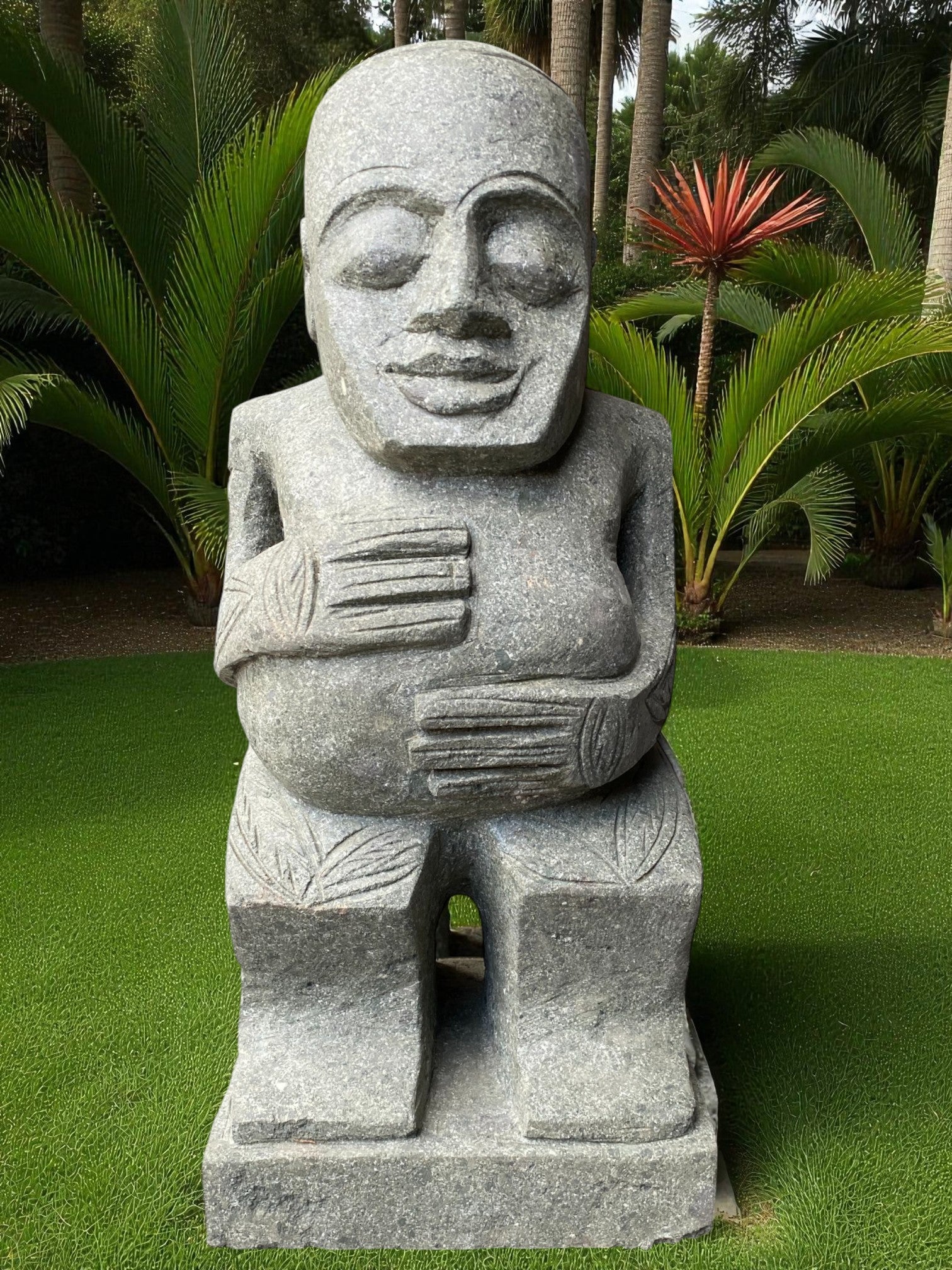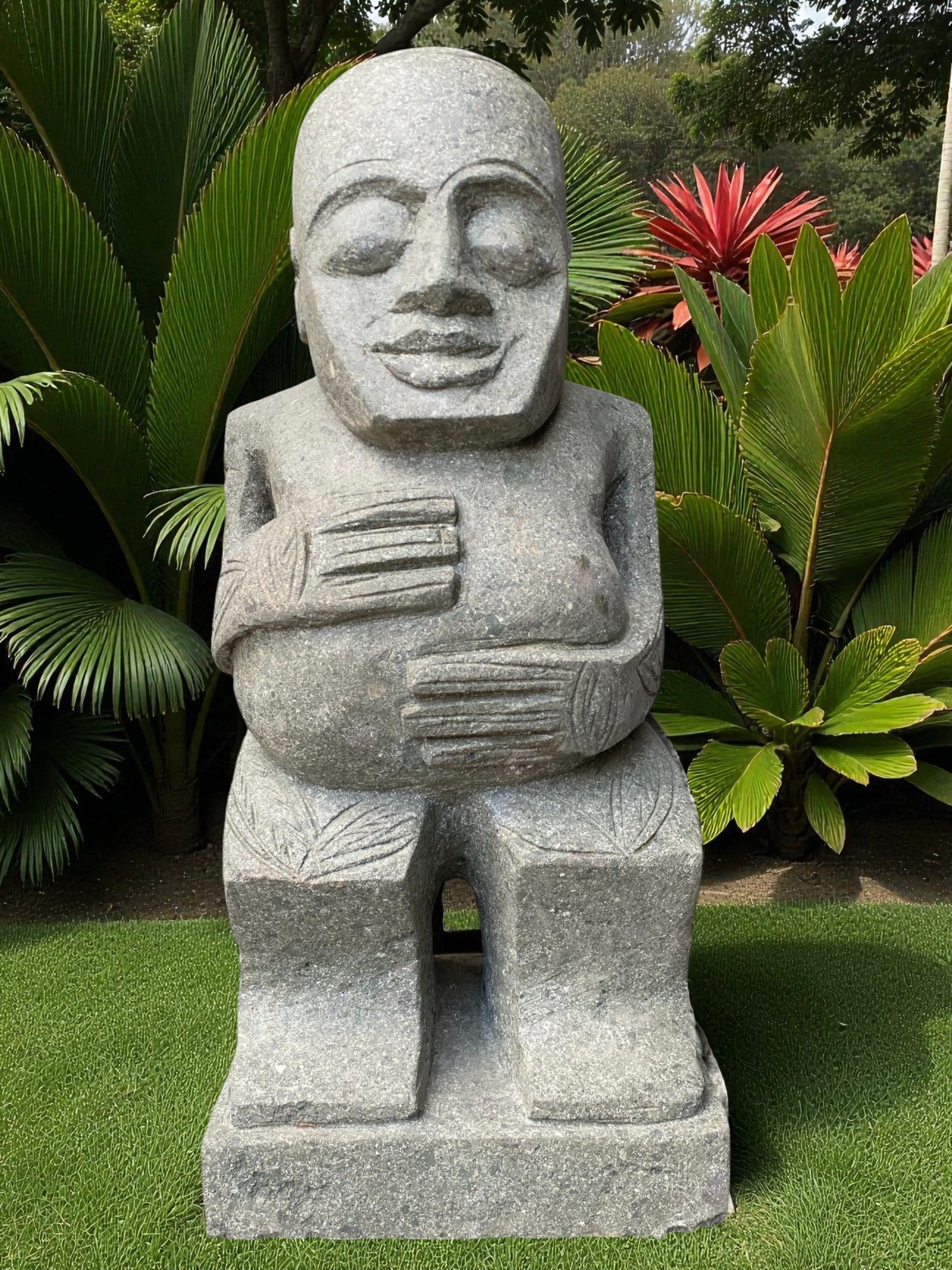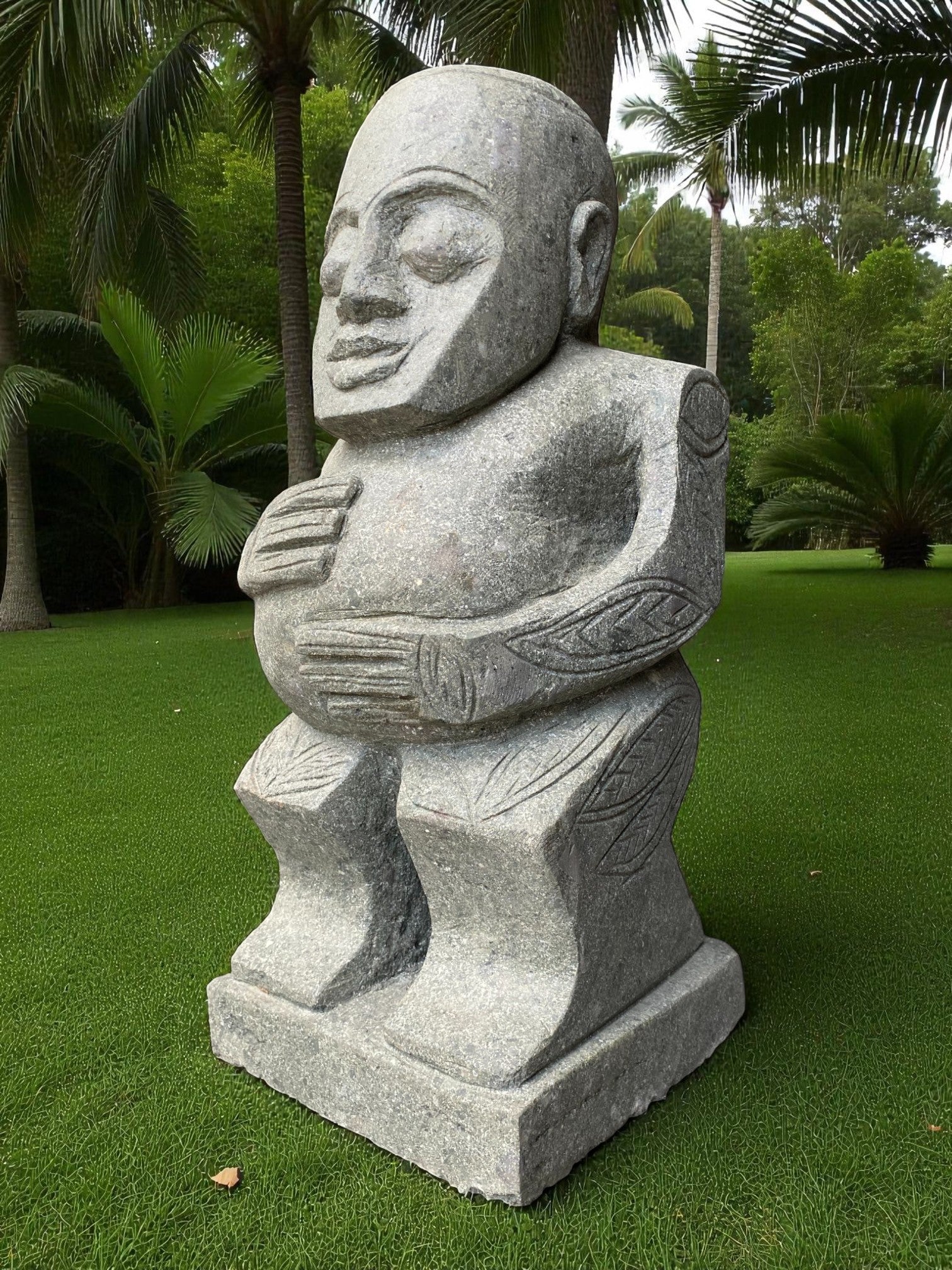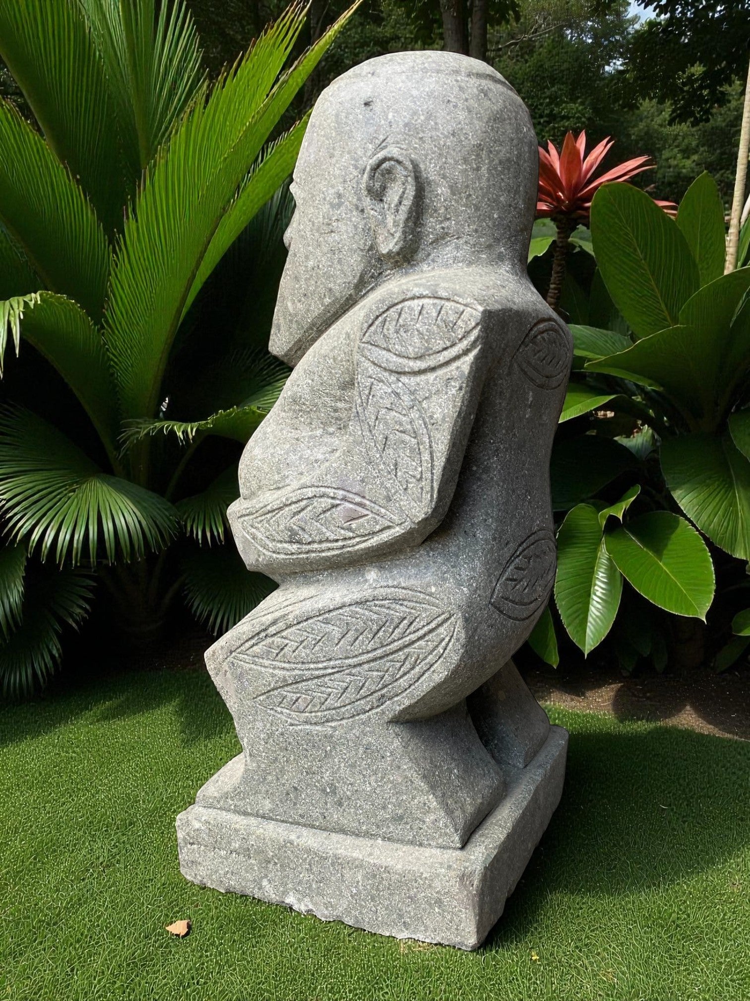 Our Outdoor Pacifica Primitive Sumba statue, Papua Statue, Flores Statues and Sumba garden sculptures are hand carved from 100% natural Indonesian greenstone. Compliment your outdoor garden furniture, garden or swimming pool pond or water feature with this 1 of a kind piece of garden landscaping art. Unlike other mass produced products made from harmful synthetics or reconstituted and engineered stone. One of our garden sculpture nz would suit to an entrance way, gate, garden landscaping, enhance to your Airbnb, Hotel or holiday home. Just add solar or powered up-lighting at the base to give an ambient feel in the evening. If you like NZ garden statues nz, then chances are you'll love this too, and will compliment other garden ornaments and metal garden art and will only age better with time.