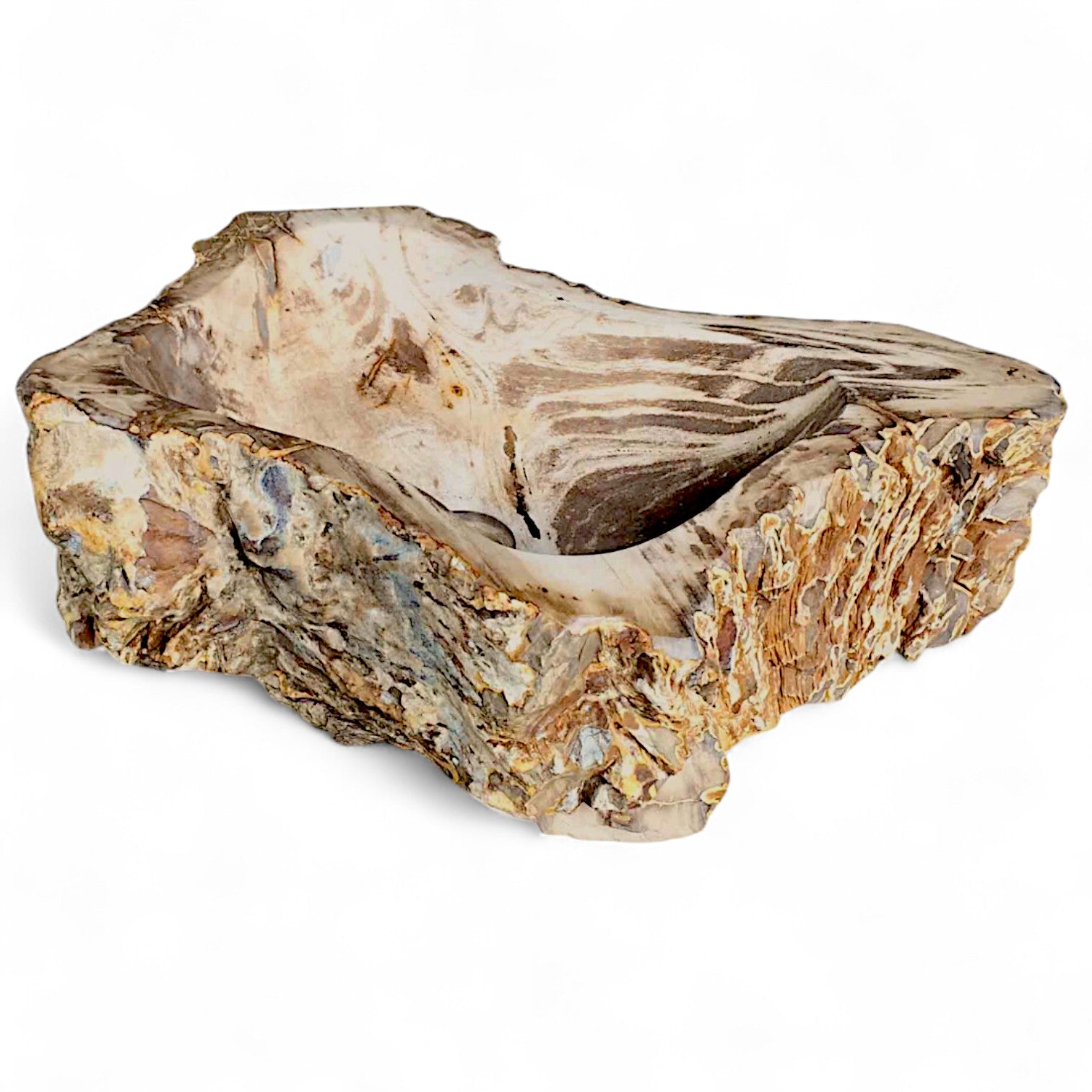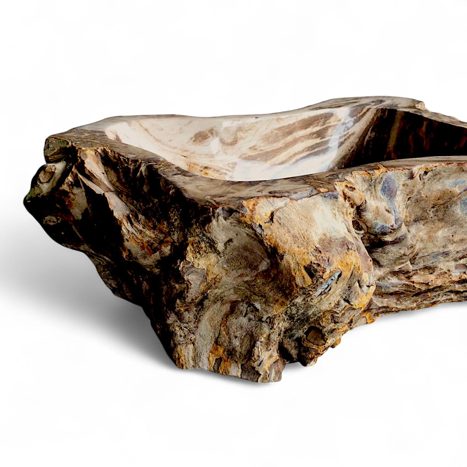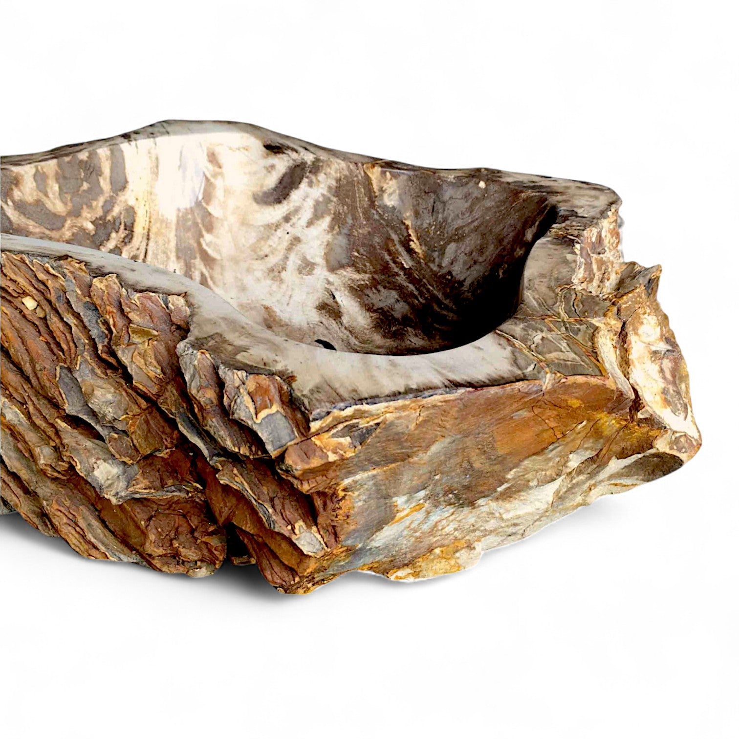 “As the trees internal structure gradually breaks down, its organic material (wood fibres) get replaced by silica and other minerals. Over a period of a few million years, those minerals will crystallise. The end result is a rock that appropriates the shape and structure of the original tree”