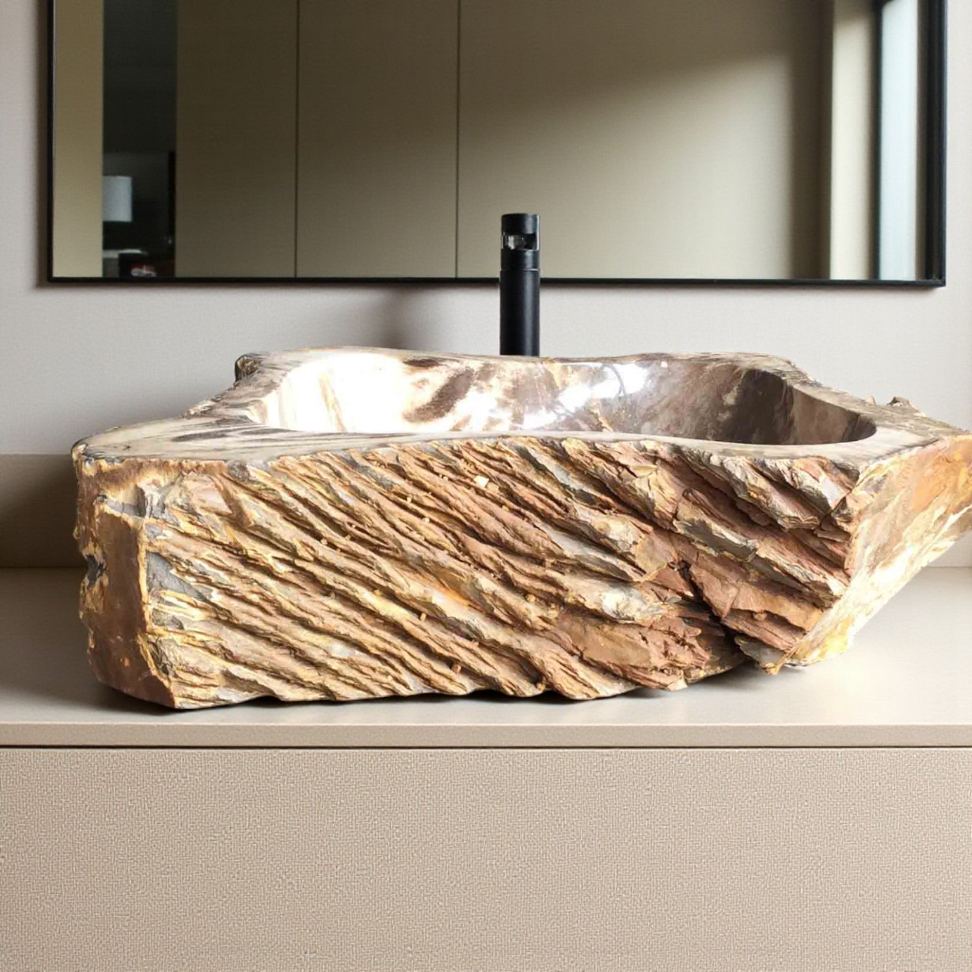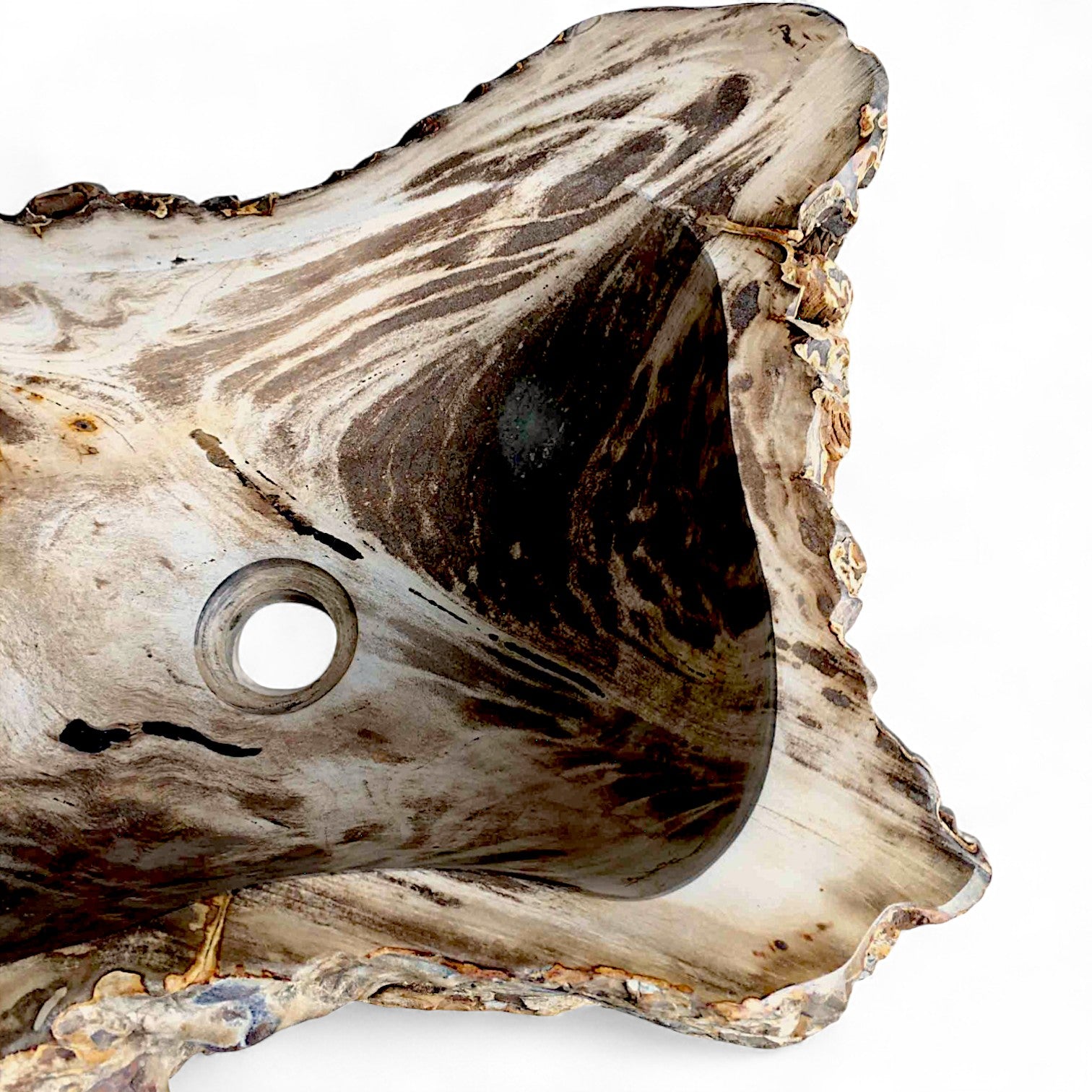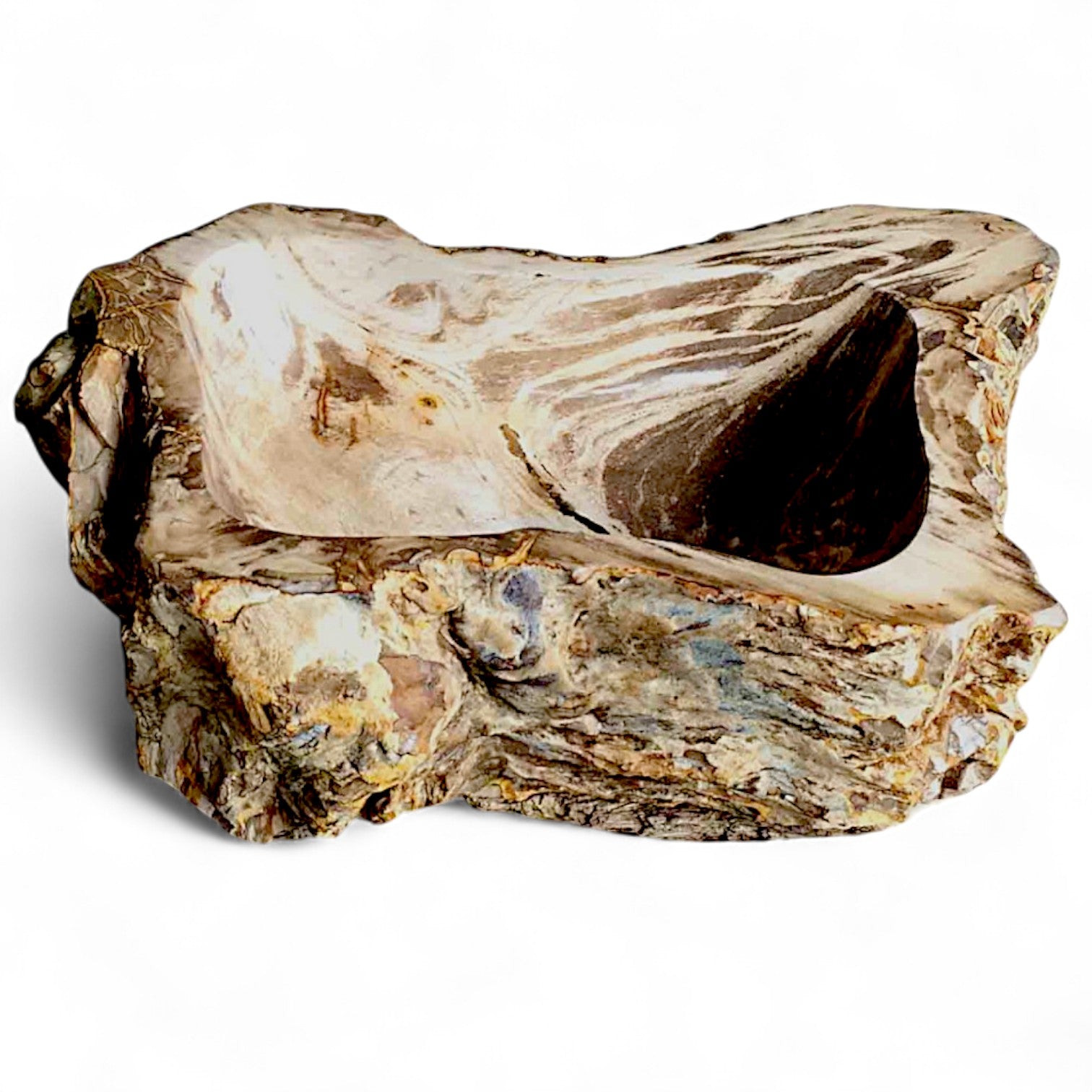 “As the trees internal structure gradually breaks down, its organic material (wood fibres) get replaced by silica and other minerals. Over a period of a few million years, those minerals will crystallise. The end result is a rock that appropriates the shape and structure of the original tree”