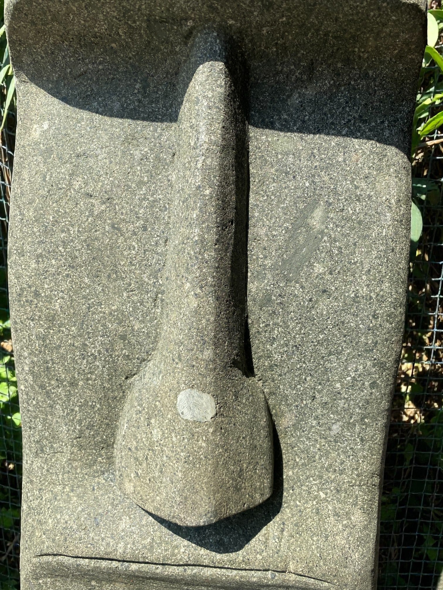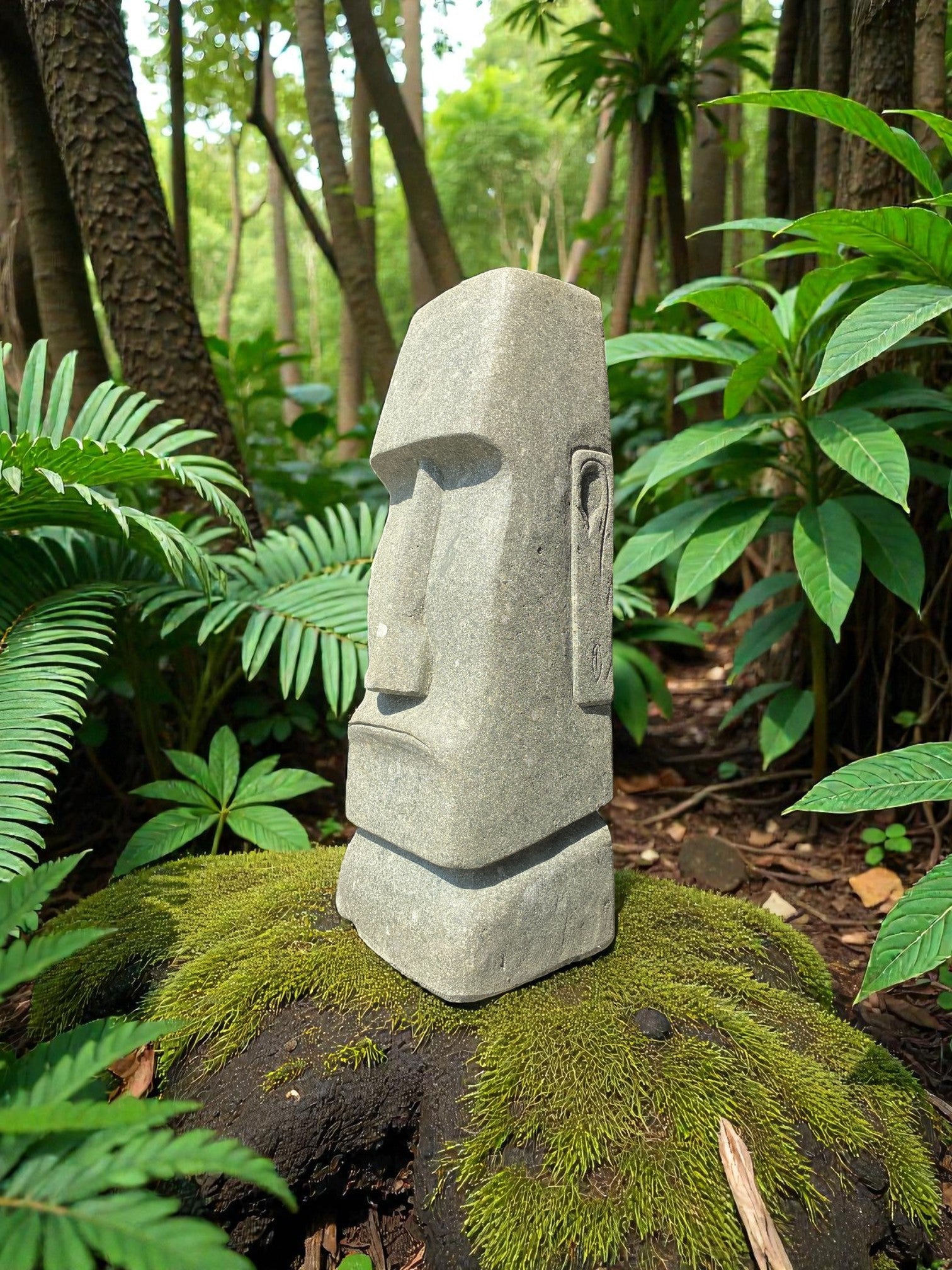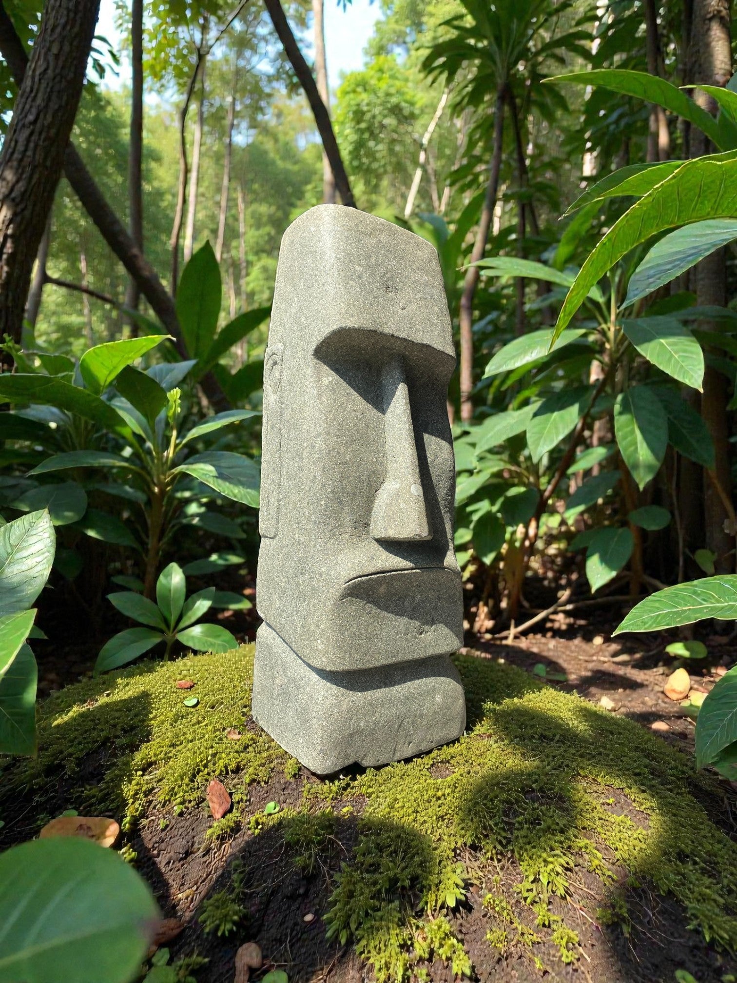 Hand carved Stone Easter Island Rapanui statue. Complement your garden with a hand carved Indonesian garden sculpture hand crafted from Indonesian greenstone. Easter Island is famous for its 887 extant monumental statues, called moai, created by the early Rapa Nui people. These look great with a night light mounted at the base of the statue facing upwards, creating shadows and ambience and compliments your outdoor furniture and garden landscaping.