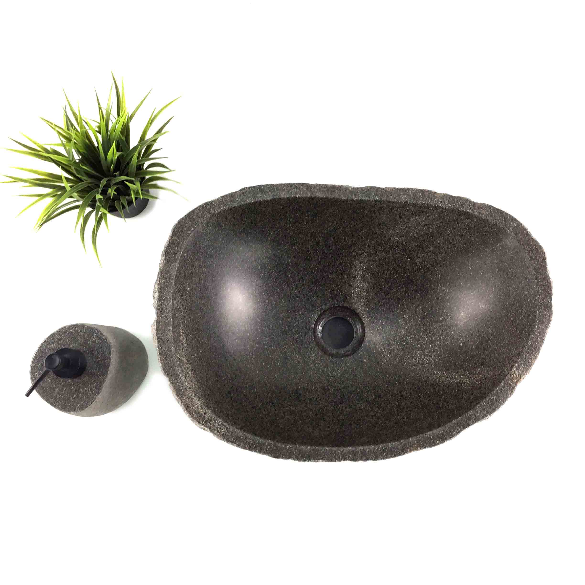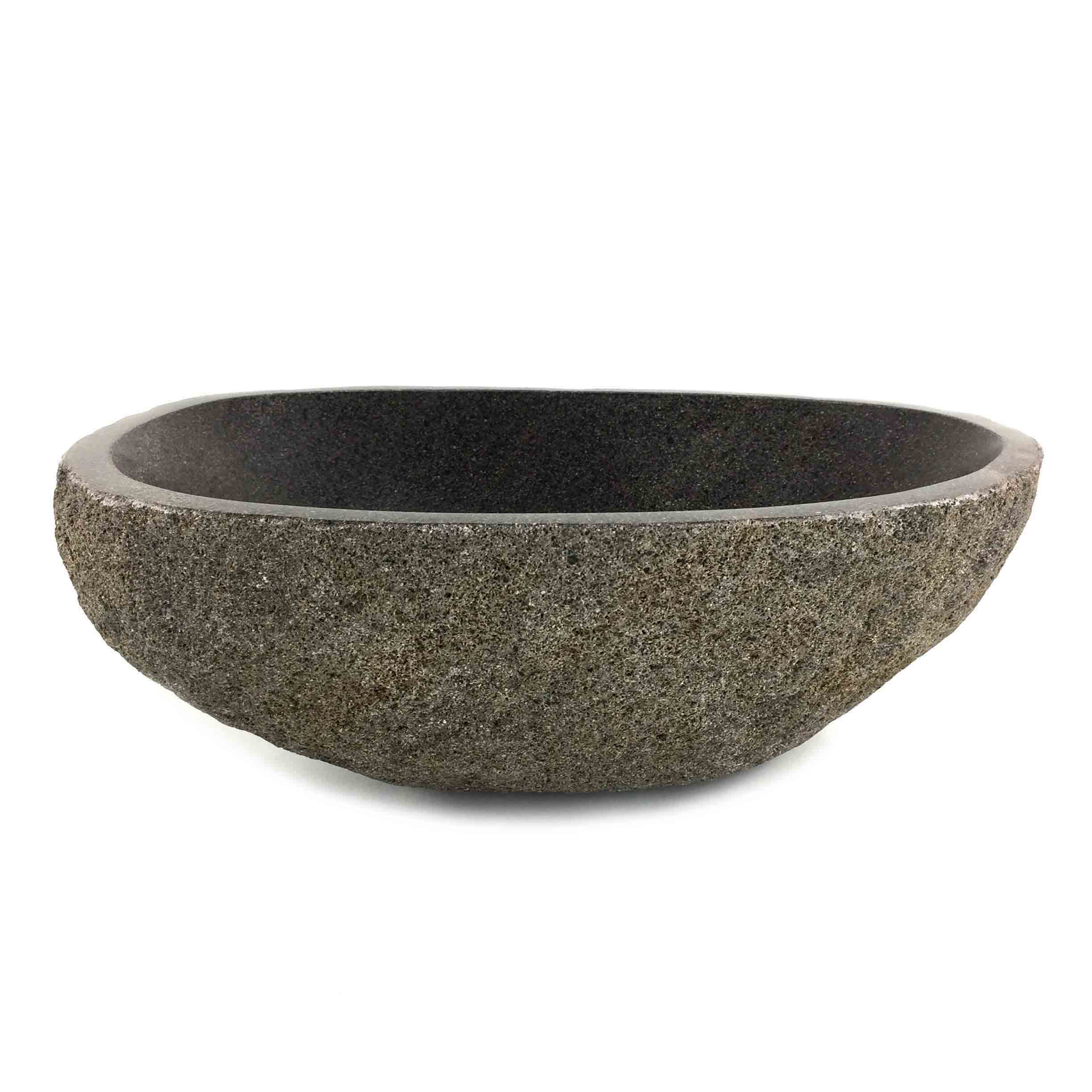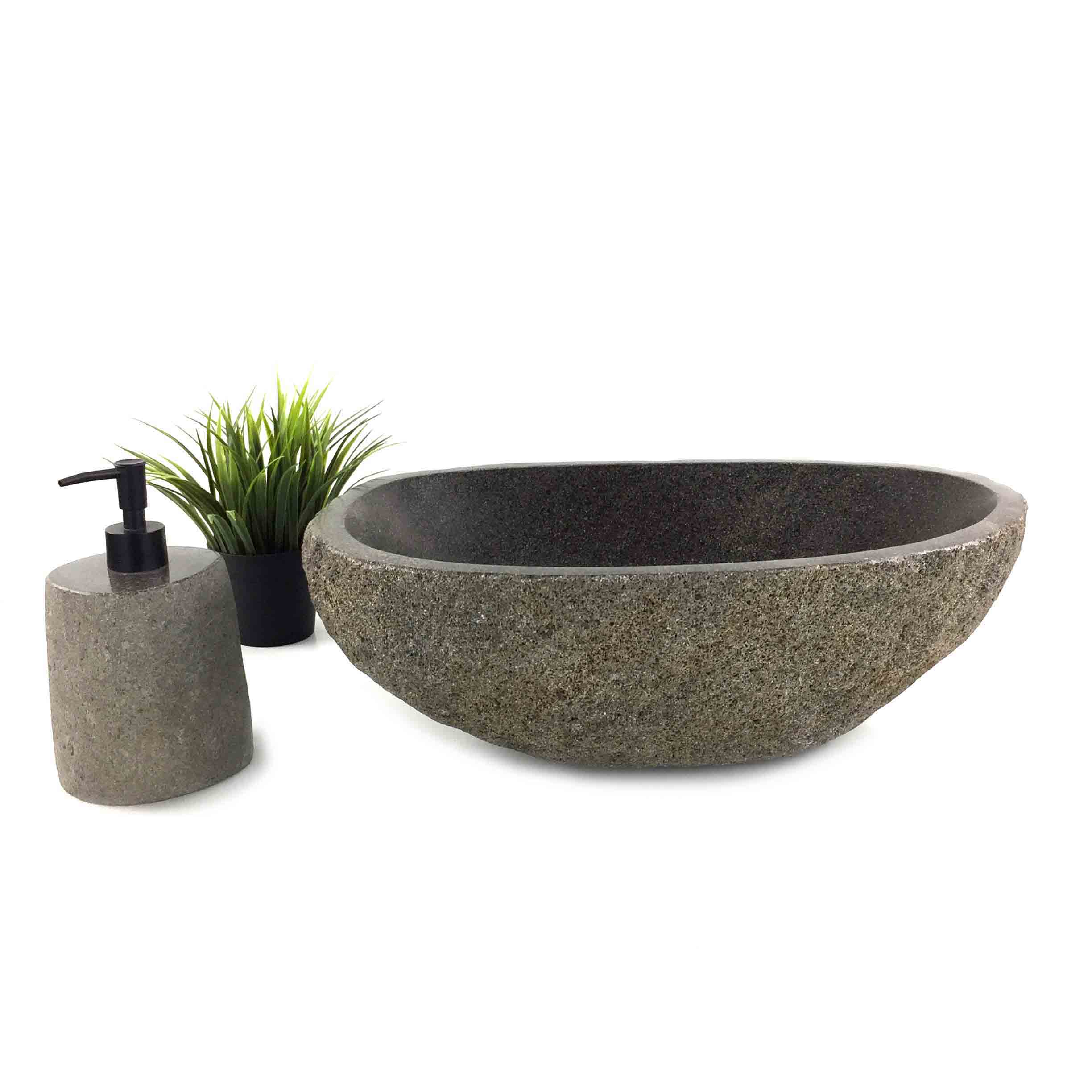 Vanity basin with beautiful natural exterior and matte finished interior. Medium size. All of our Stone basins require a 32mm Pop up waste without overflow. Complement your StoneBase bathroom sink with one of our stone bathroom accessories, such as Soap & lotion dispensers, soap dish or candle holder.