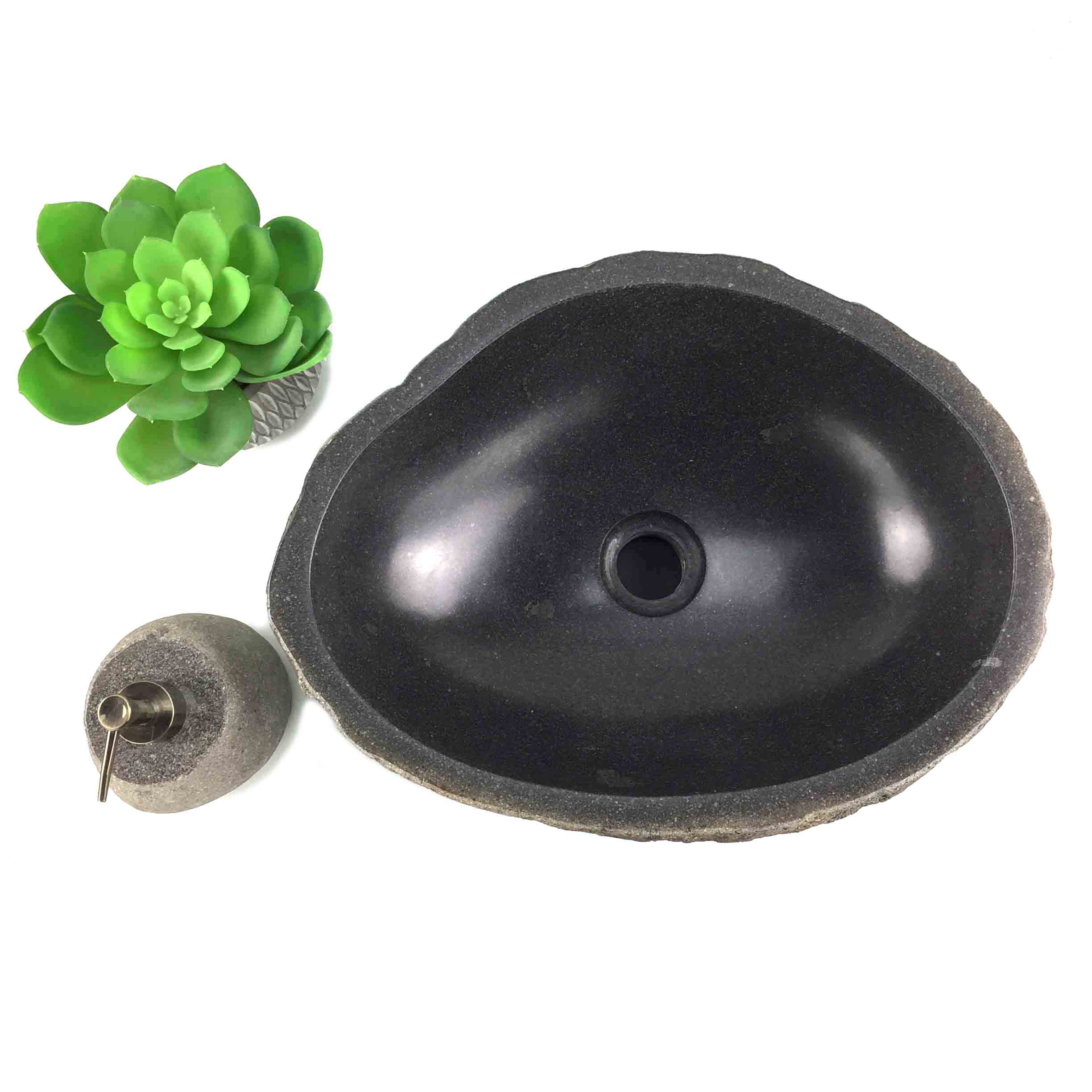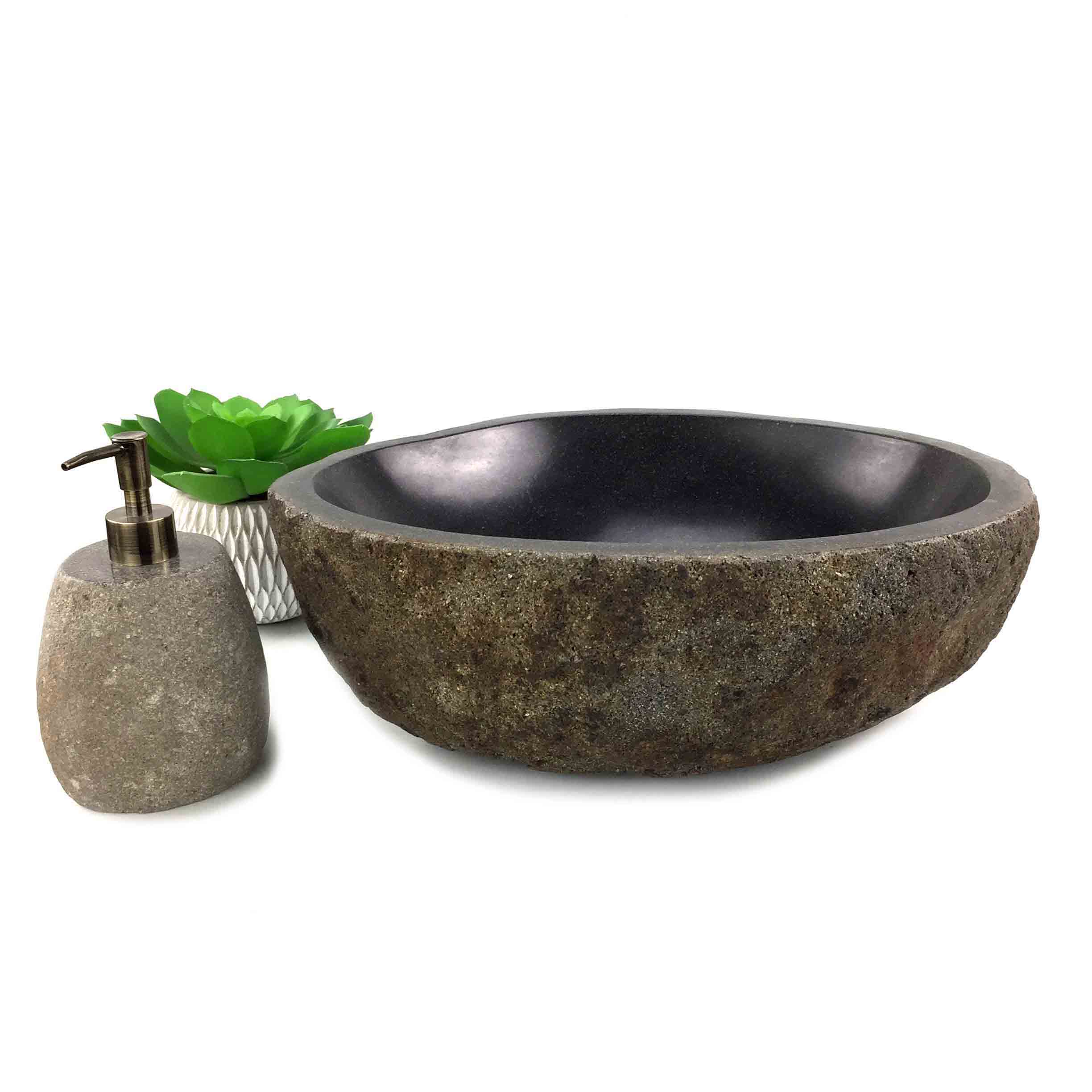 Vanity Stone basin with natural exterior and beautiful rustic character, A grade internal matte finishing. Medium Size, fits most New Zealand bathrooms. All of our Stone basins NZ require a 32mm Pop up waste without overflow. Complement the StoneBase Bathroom Sink with one of our stone bathroom accessories, like the Stone Soap & Lotion or Moisturiser dispenser with Chrome, Copper or Brass look pump, soap dish or Stone toothbrush / toothpaste holder to finish.