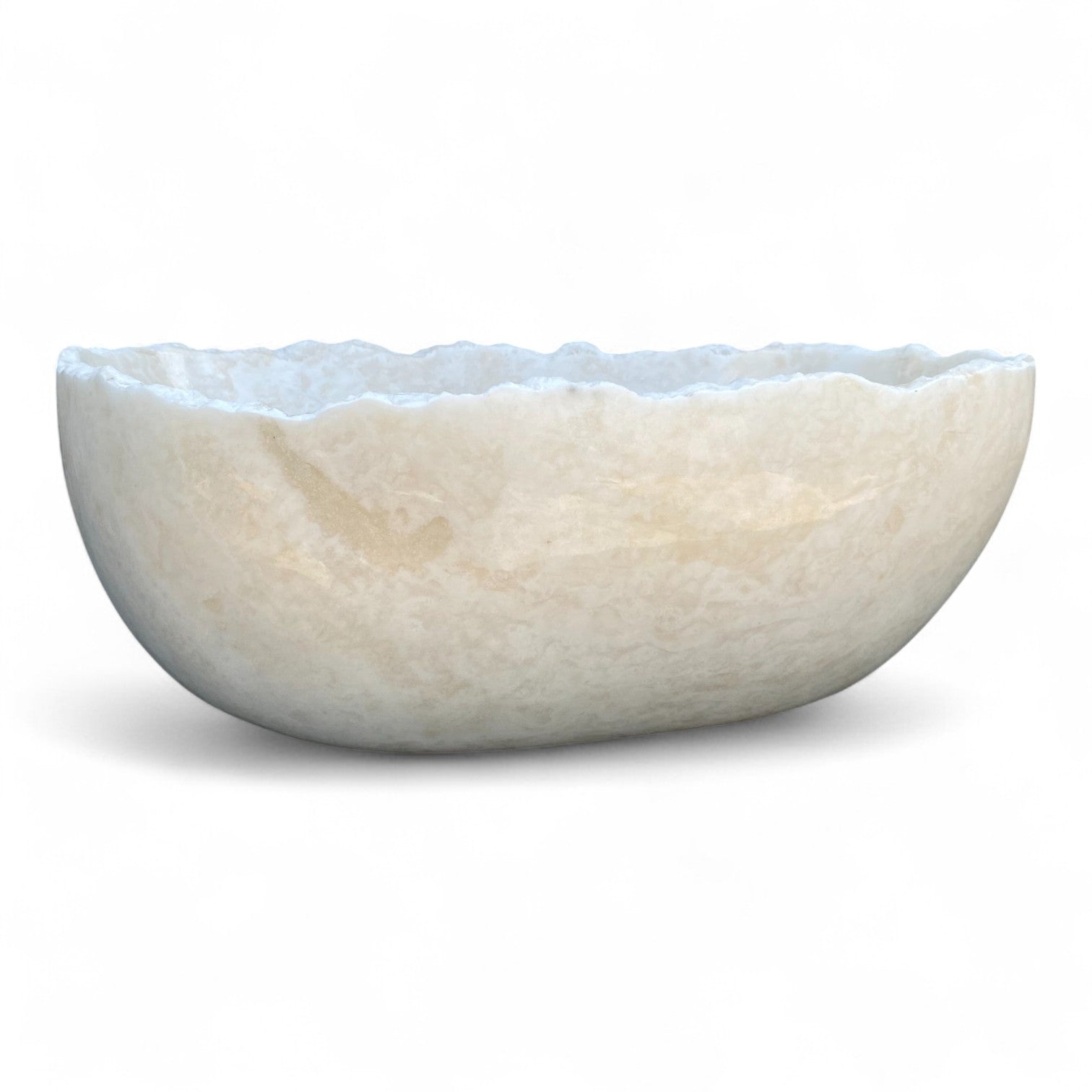 Rare Onyx colour and Irregular shape, with polished exterior & interior. Big enough for washing hands and brushing teeth. All of our Onyx Stone bathroom basins require a 32mm Pop up waste without overflow. Complement the StoneBase bathroom Onyx sink with one of our stone bathroom accessories like the Soap & Lotion dispenser or Moisturiser dispenser with Chrome, Copper, Black or Brass look pump, soap dish or toothbrush / toothpaste holder to finish. StoneBase vessel basins are perfect for standard size bathroom or toilet or powder room spaces, offering both practicality and aesthetic appeal. It's always best practice to check our measurements to see if these work with your space requirements