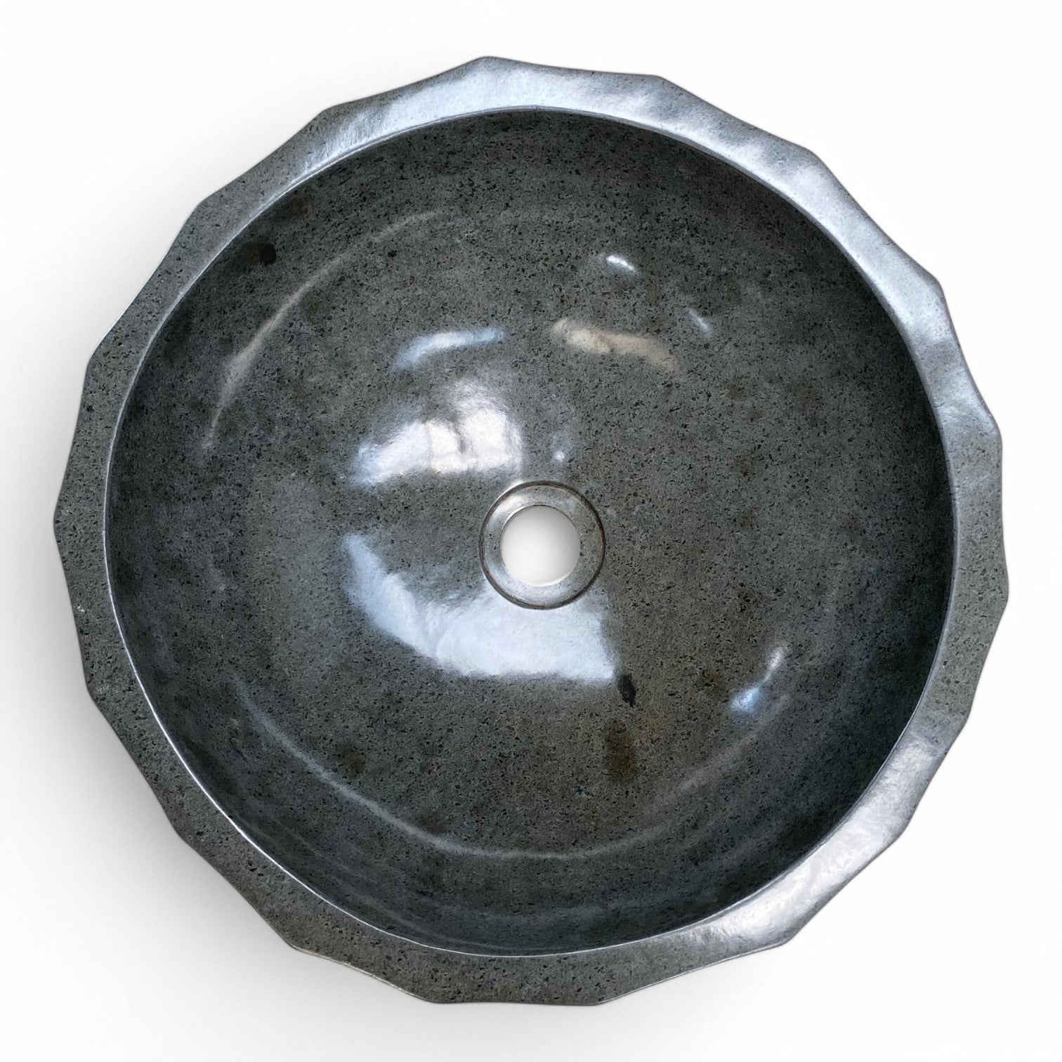 Natural stone basin with hand scalloped pattern. Sure to impress. Seen only in the best addresses and luxury homes in New York, Monaco, Aspen, Auckland & Sydney.