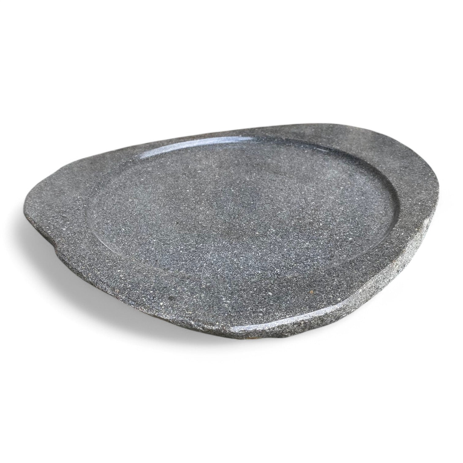 Natural stone platter plate made from 1 large slither of granite. Great for Cheese platters, Kitchen parties, weddings and corporate / special events. Can be used as a fruit platter or a plate for a flower vase and will compliment your home decor organically. Hand wash only