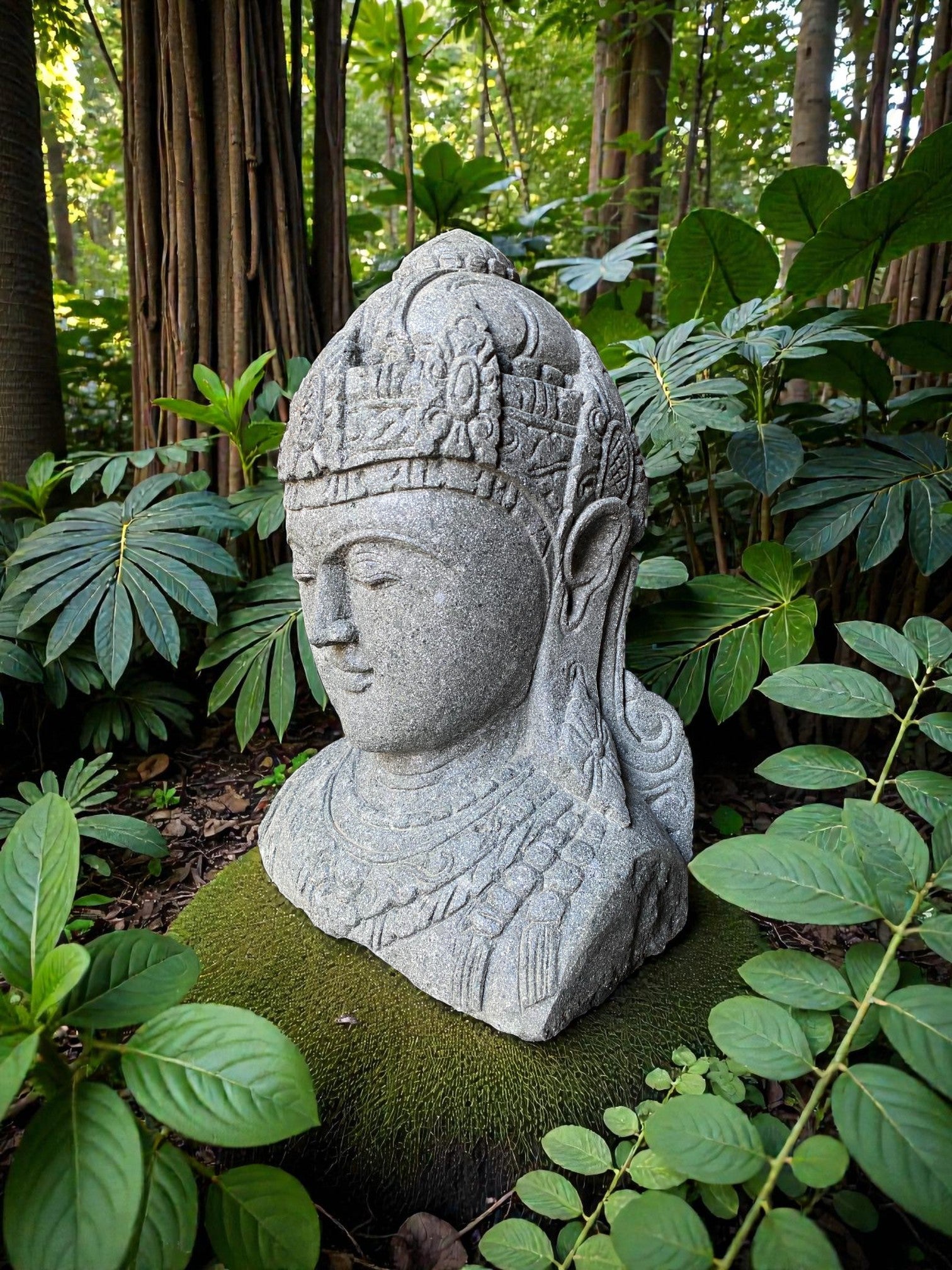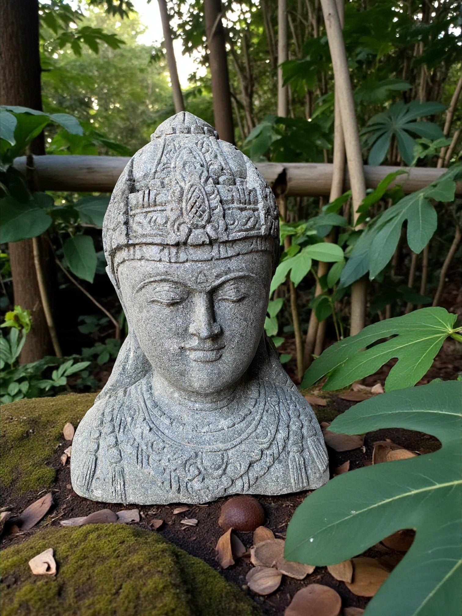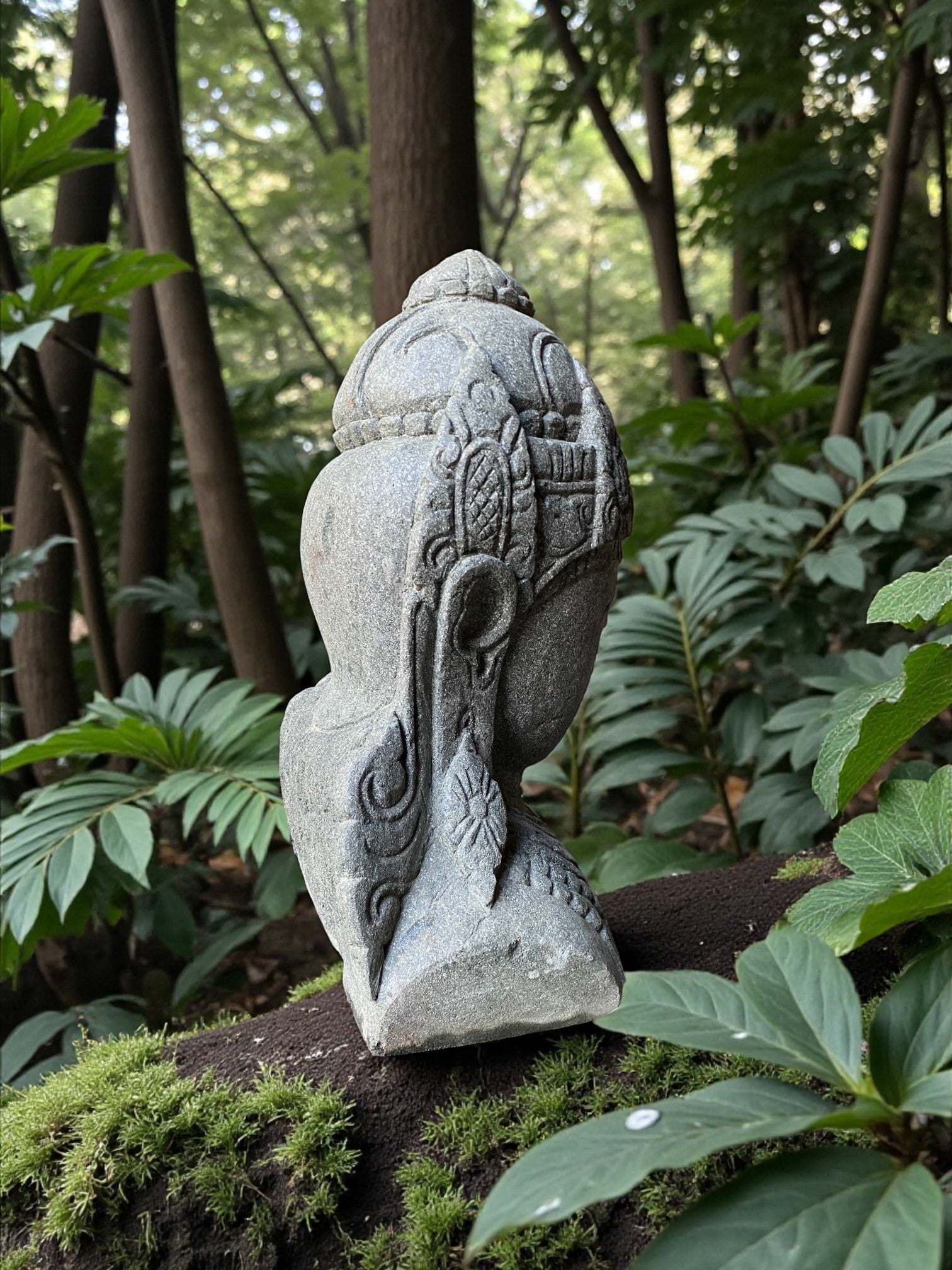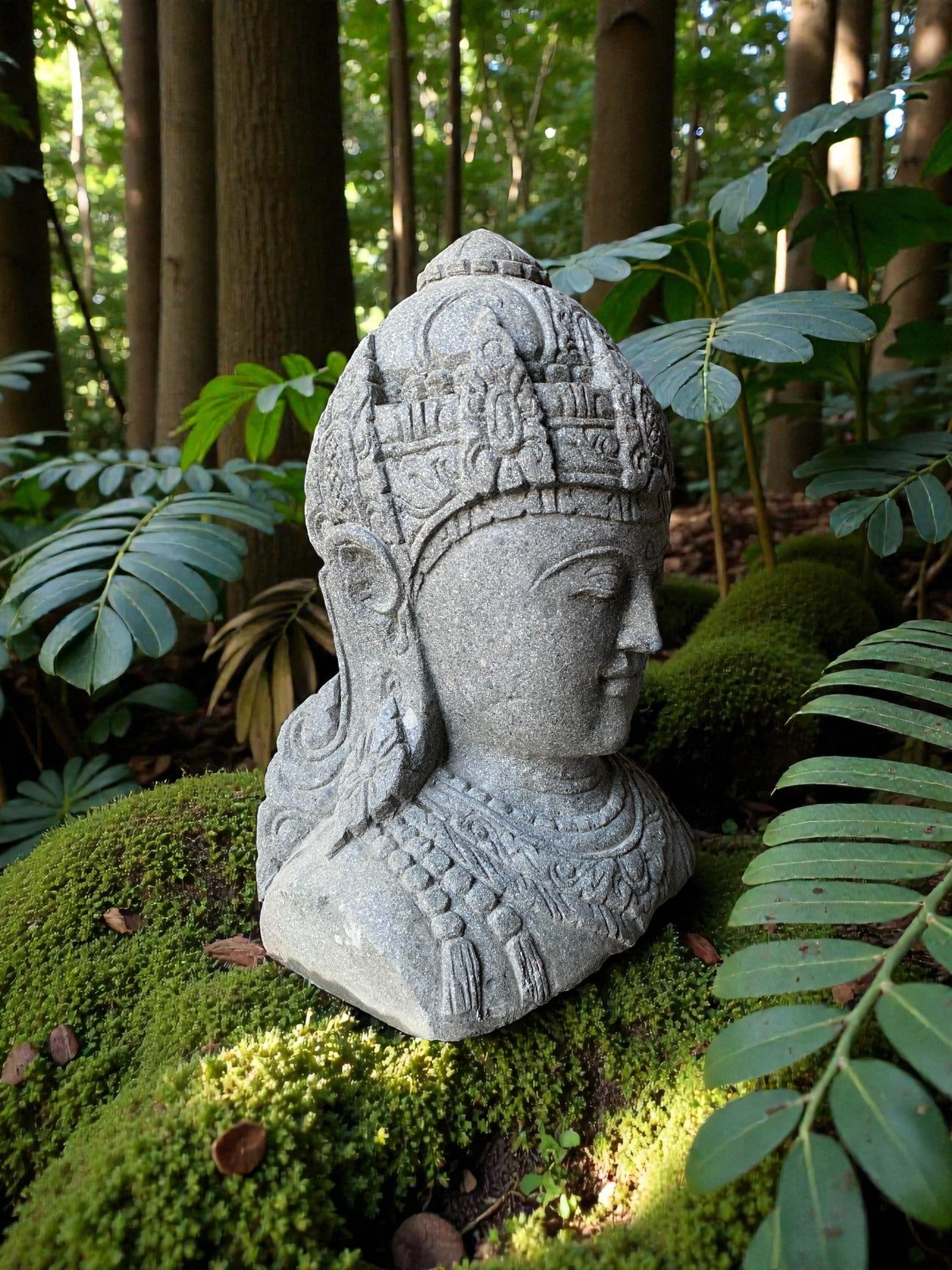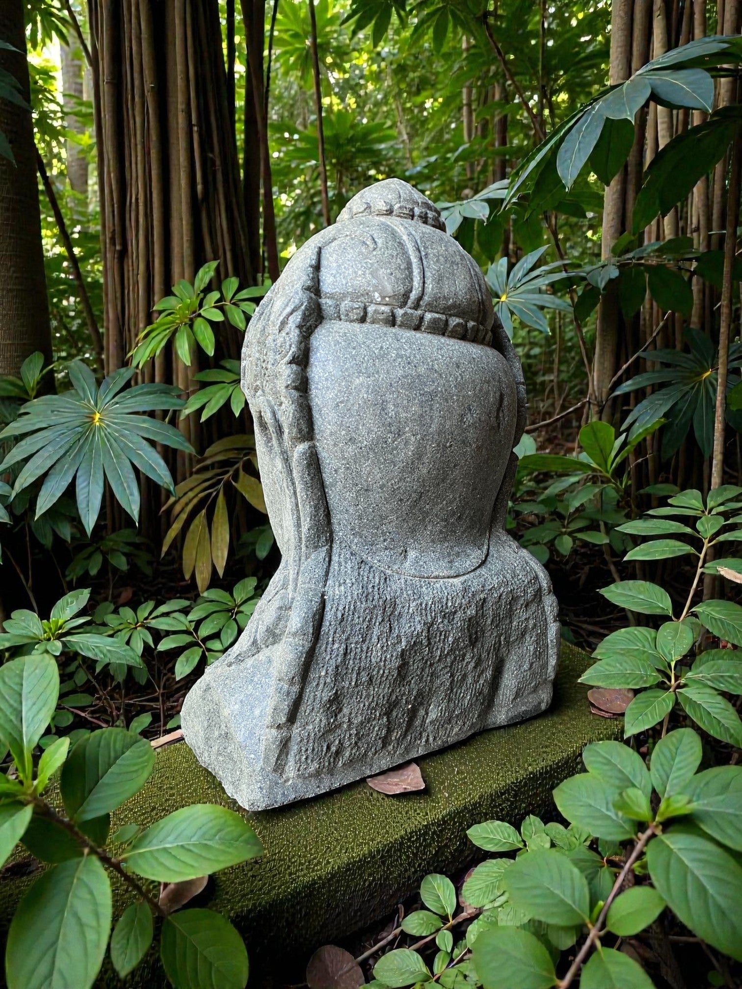 Hand carved Balinese Buddha statue. "Dewi Lakshmi" goddess of wealth, fortune & prosperity. Complement your garden landscaping and Outdoor Living with a fully carved from Indonesian Greenstone . Used by landscape architects for outdoor garden and landscaping projects. This is a hand carved Indonesian greenstone piece of art. These look great with a warm white night light mounted at the base of the statue facing upwards, creating shadows and ambience and compliments your outdoor furniture and garden landscaping. Upgrade your garden and landscaping and add value to your home and garden renovation.