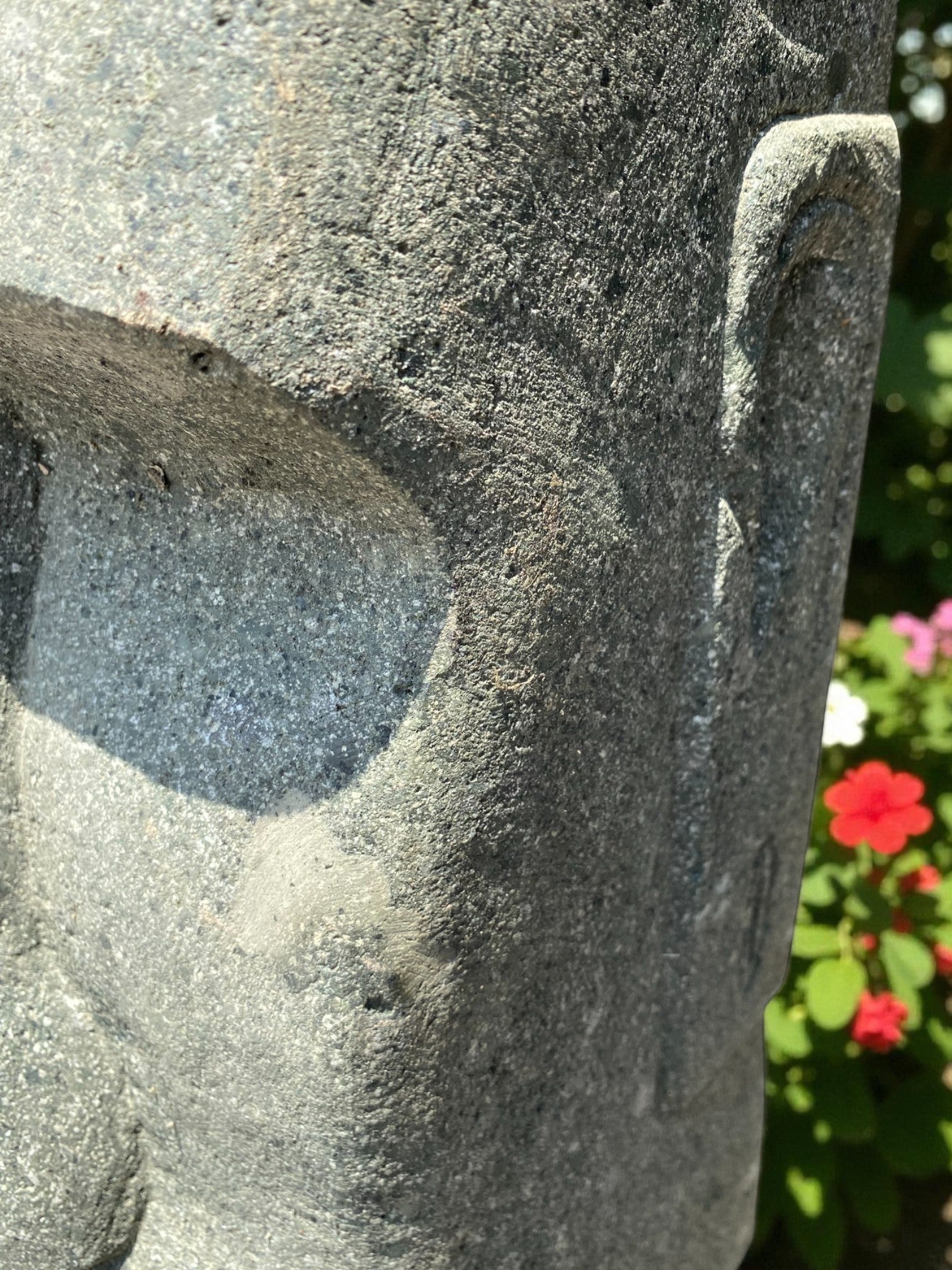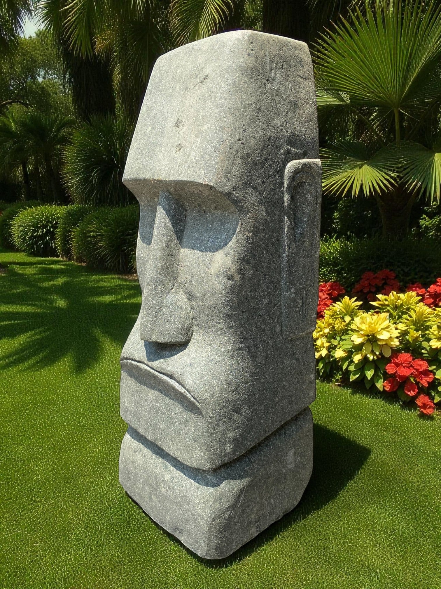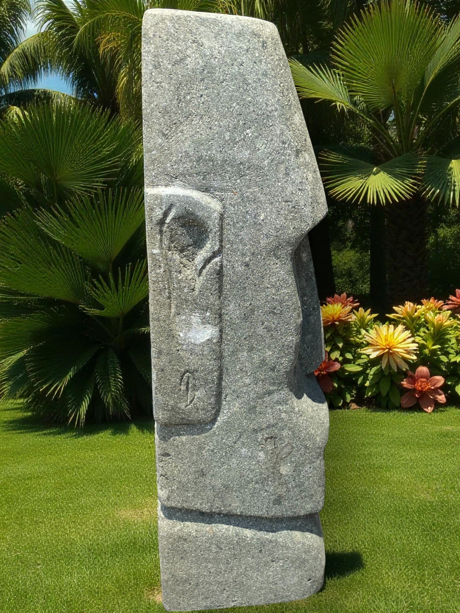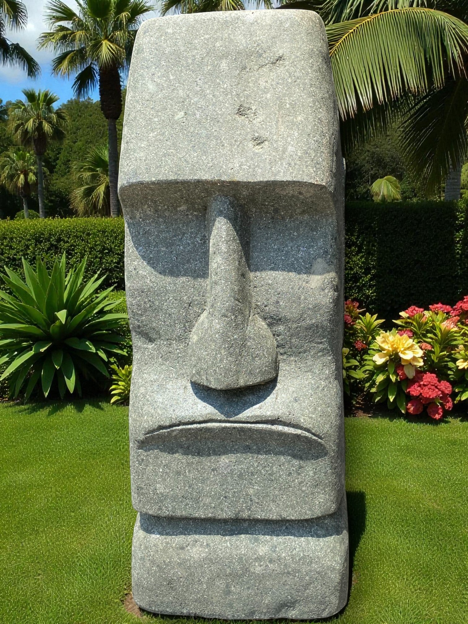 Hand carved Stone Easter Island Rapanui statue. Complement your garden with a hand carved Indonesian garden sculpture hand crafted from Indonesian greenstone. Easter Island is famous for its 887 extant monumental statues, called moai, created by the early Rapa Nui people. These look great with a night light mounted at the base of the statue facing upwards, creating shadows and ambience and compliments your outdoor furniture and garden landscaping.