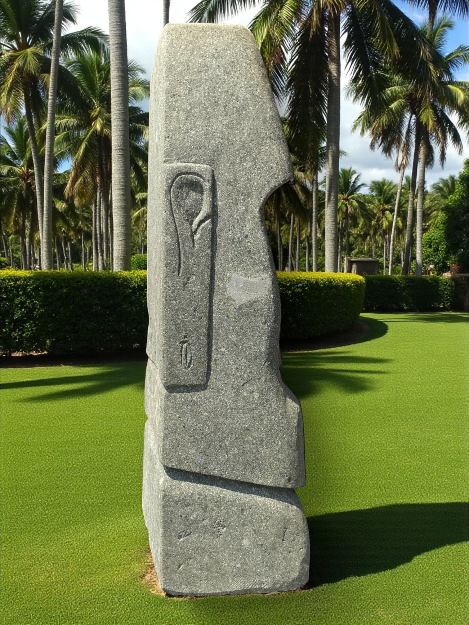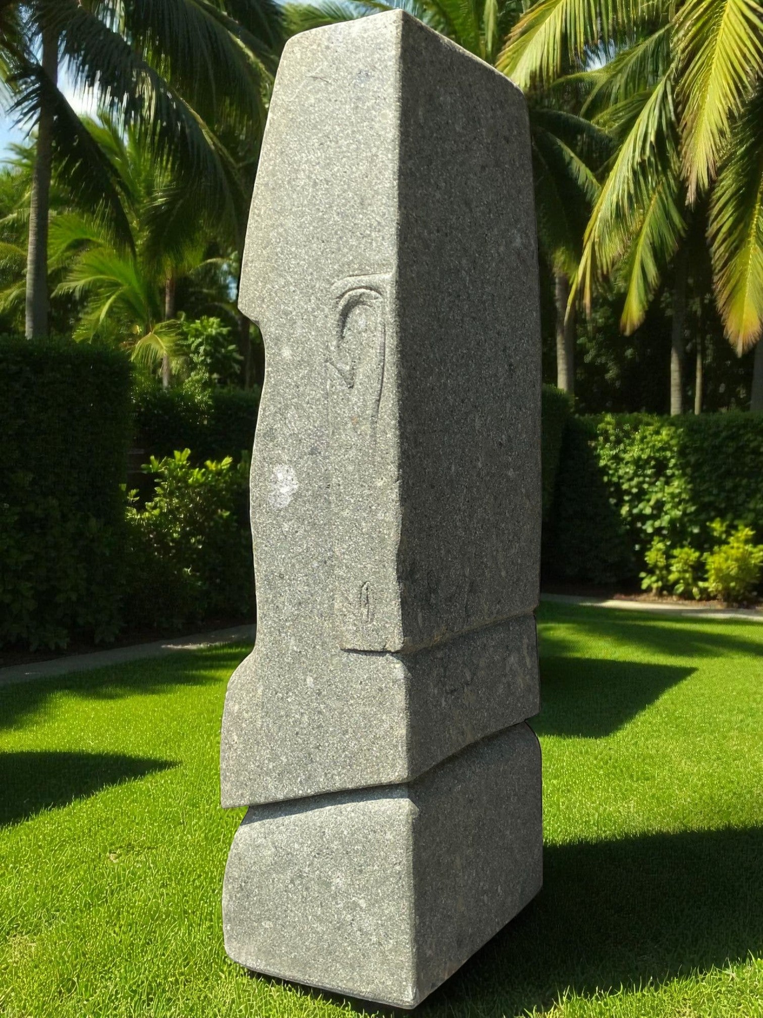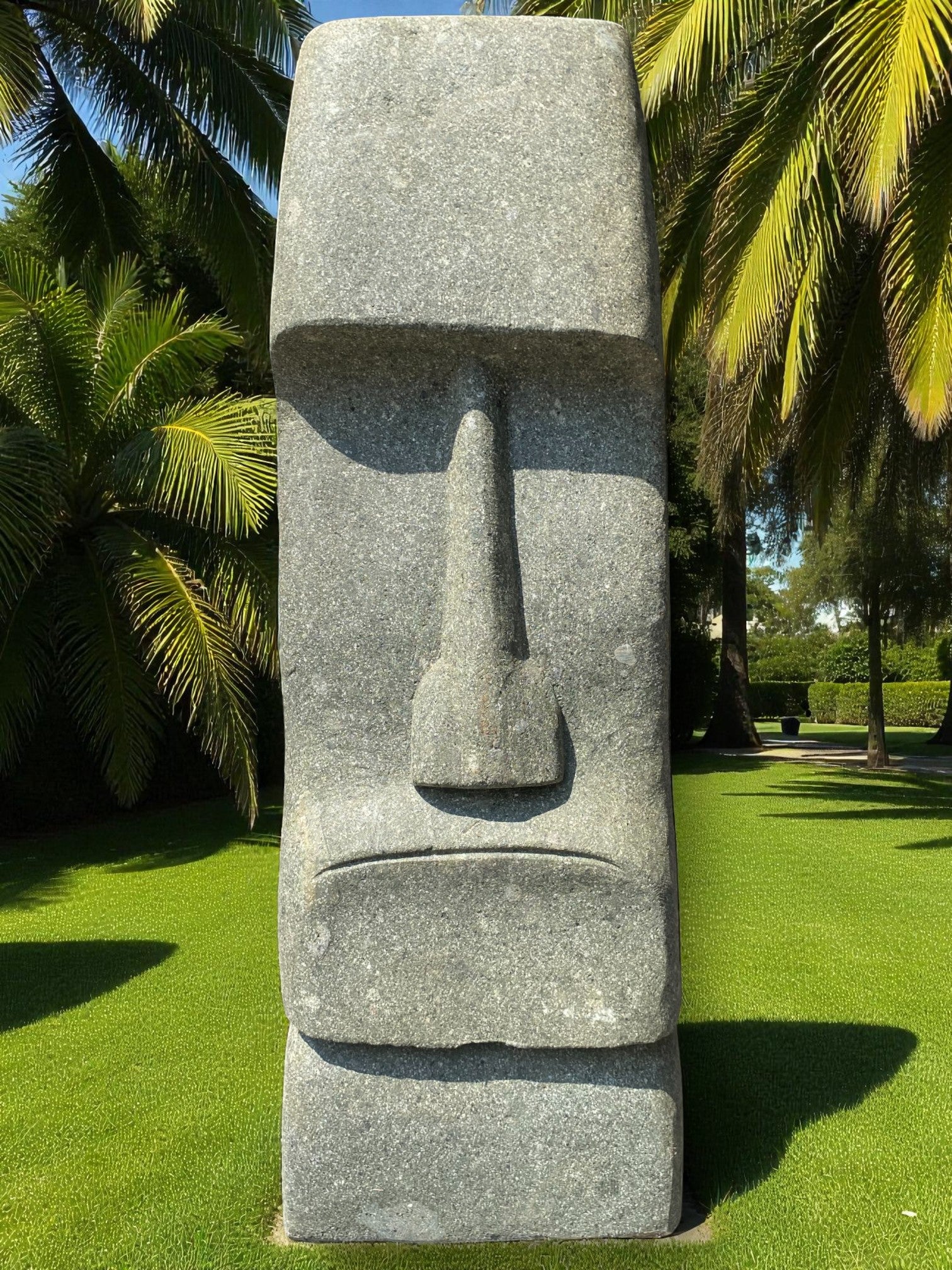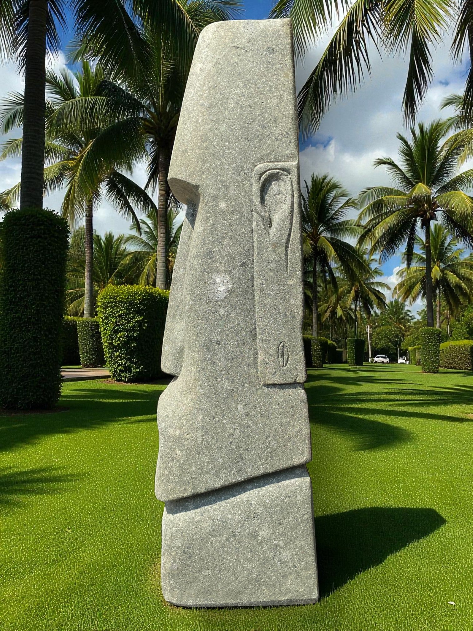 Hand carved Stone Easter Island Rapanui statue. Complement your garden with a hand carved Indonesian garden sculpture hand crafted from Indonesian greenstone. Easter Island is famous for its 887 extant monumental statues, called moai, created by the early Rapa Nui people. These look great with a night light mounted at the base of the statue facing upwards, creating shadows and ambience and compliments your outdoor furniture and garden landscaping.